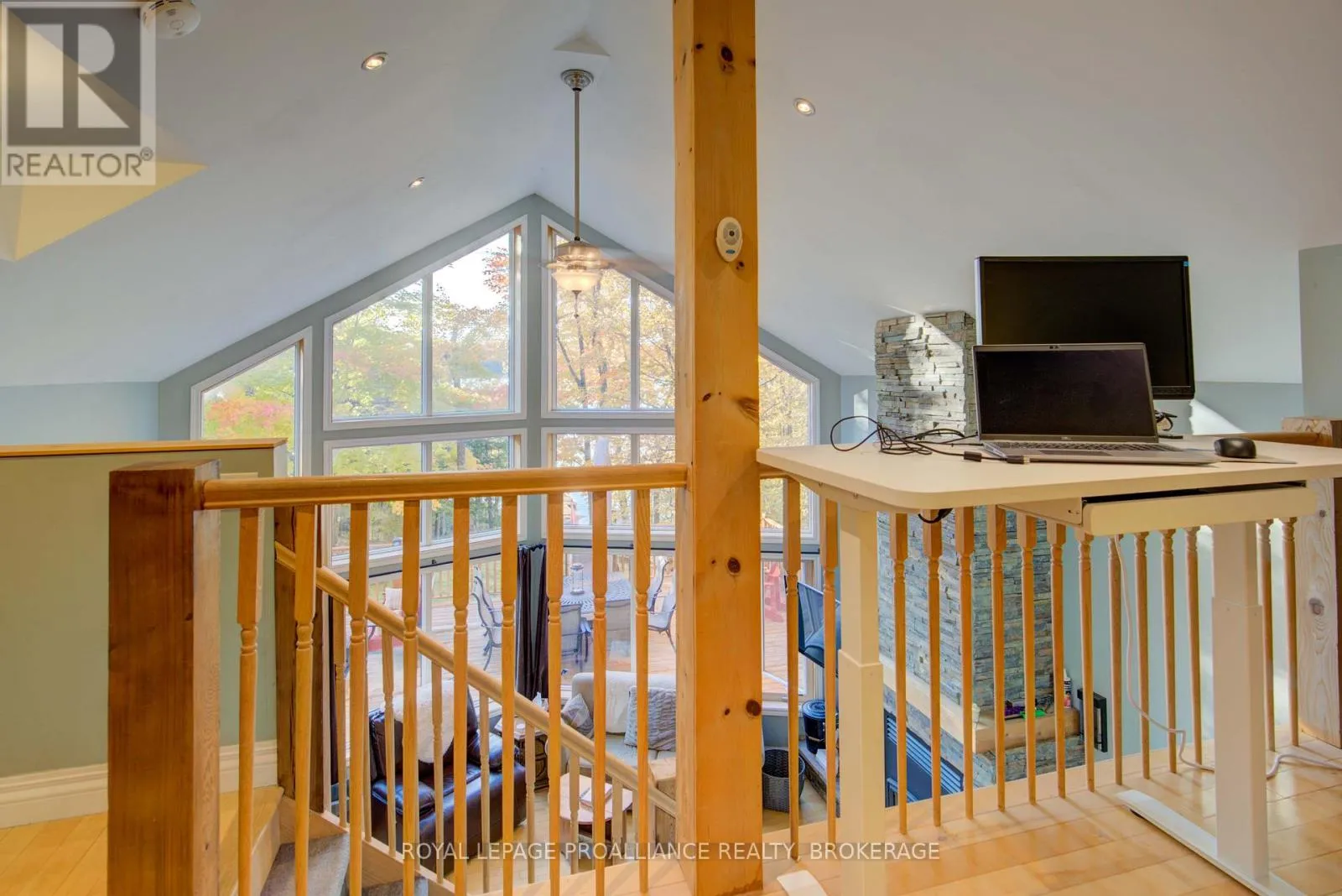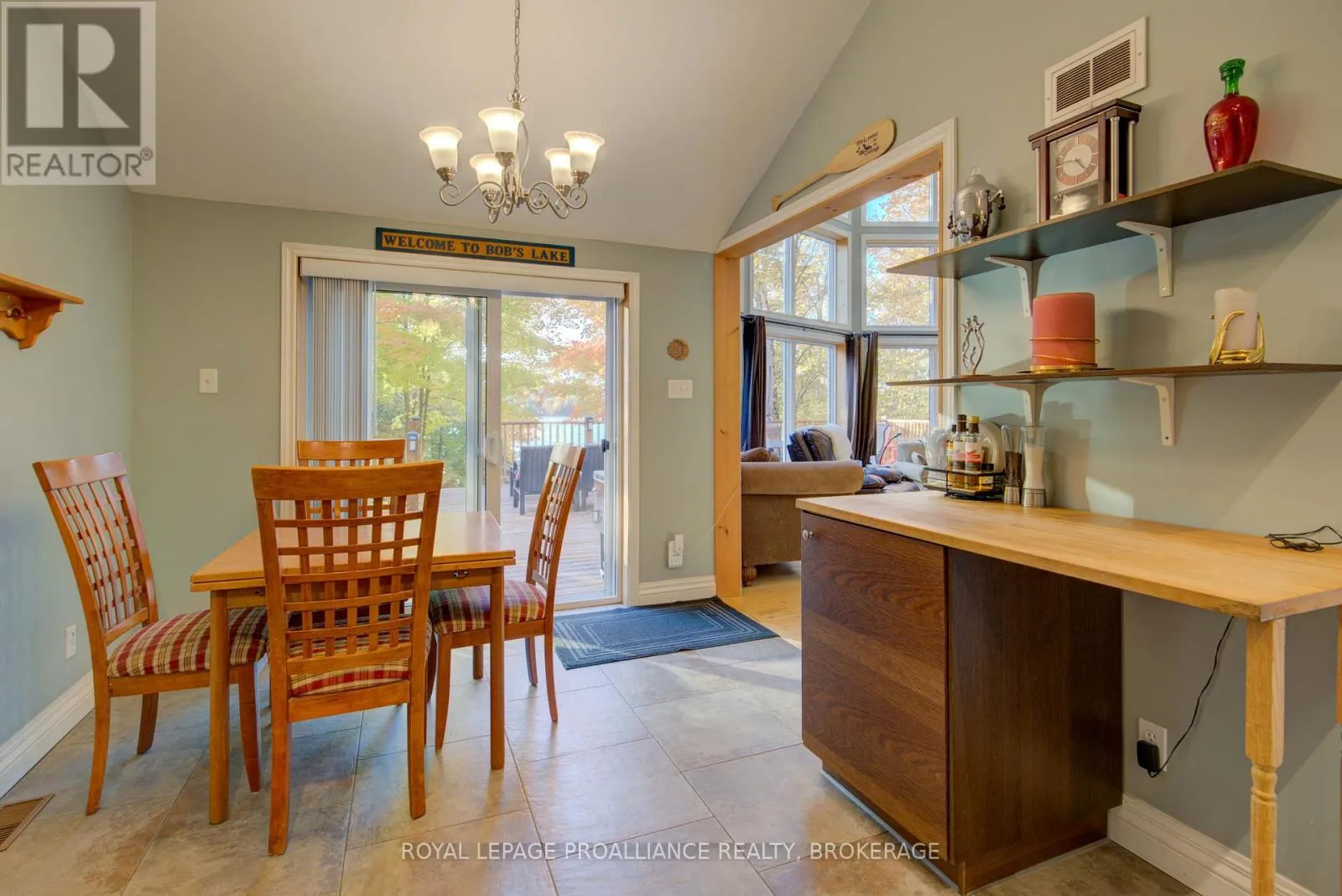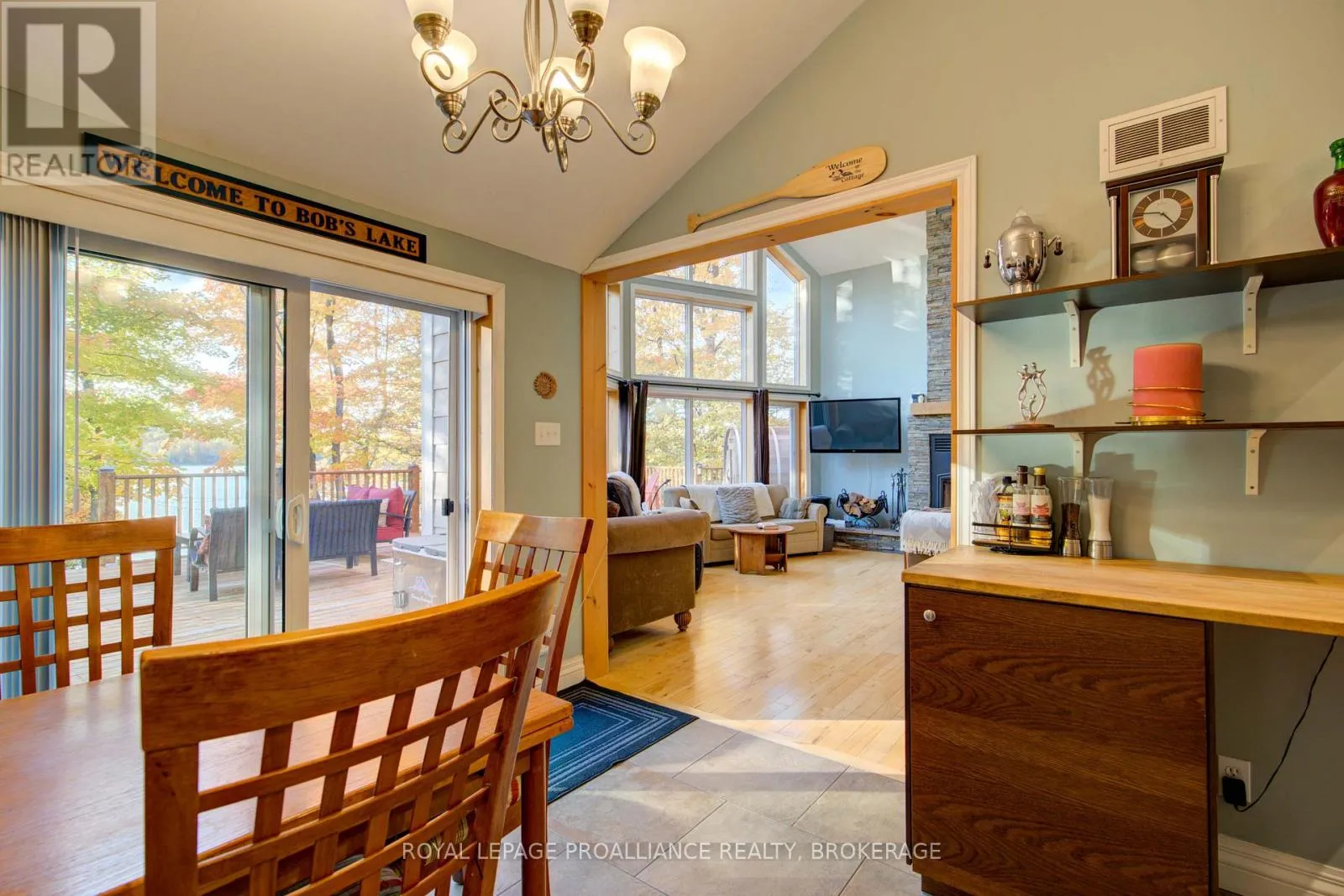 Cross Streets: Badour Road and Mica Point. ** Directions: Badour Road and mica Point. Follow signs. Beautiful and stunning 2 bedroom Viceroy home located on one of the most desirable lakes in our region. This home is located in Bayside Woods Cooperative, a lakeside property that has just under 5 acres of common land and 1100 feet of beautiful southwest facing shoreline. This home sits on an ICF poured concrete foundation and has access to the side yard through a double door that also allows for storage of yard equipment and perhaps some water toys. There is a finished recreation room with an electric fireplace, workshop and utility area. The main level of this home has an eat-in style kitchen, a laundry room, an inviting living room with cathedral ceilings, wood burning fireplace and floor to ceiling windows looking out over the lake. There are two bedrooms, 3pc. ensuite bathroom, another full 4pc. bathroom and stairs to the loft area. This area is currently set up as a sleeping area for extra family but could also be an amazing home office. The large cedar deck overlooks the land that has a slight slope down to the clear, inviting waters of Bobs Lake with a beach area that gradually gets into deeper water. There is a large storage shed and plenty of space for outdoor activities. The house is serviced by a septic system and drilled well and has fibre optic internet. The coop offers a convenient boat ramp and a storage building as well as a common dock. There are 14 owners of this cooperative property, who all take pride in their homes/cottages and the land that surrounds them. Bobs Lake is one of the largest lakes in our area stretching 19 kms long with many islands, bays and inlets to explore, fish and enjoy. Discover what this hidden gem has to offer and dive into cottage life on this stunning Canadian Shield setting. Annual fees (approx. $3522 for 2024) include common area hydro, docks, all maintenance and taxes. Hydro and road fees are in addition to these fees. (id:27476)
