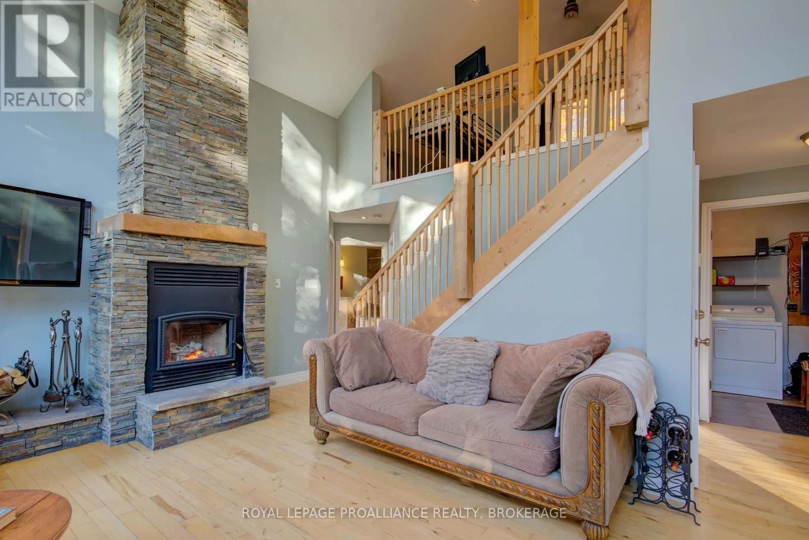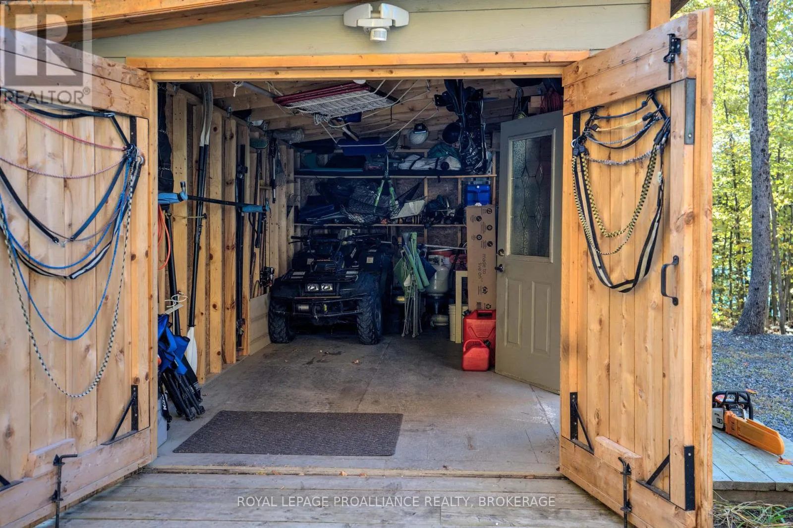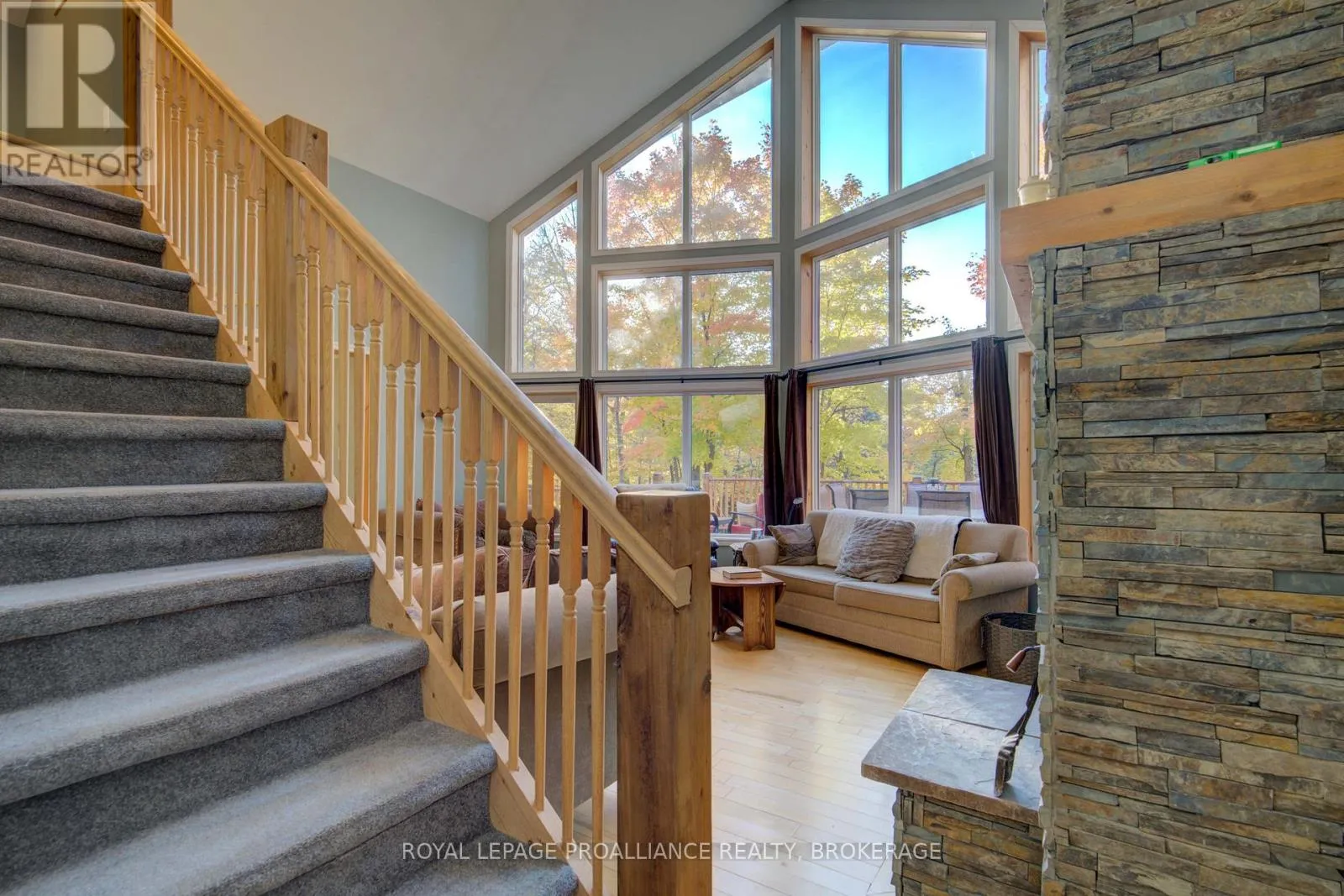 Cross Streets: Badour Road and Mica Point. ** Directions: Badour Road and mica Point. Follow signs. Beautiful and stunning 2 bedroom Viceroy home located on one of the most desirable lakes in our region. This home is located in Bayside Woods Cooperative, a lakeside property that has just under 5 acres of common land and 1100 feet of beautiful southwest facing shoreline. This home sits on an ICF poured concrete foundation and has access to the side yard through a double door that also allows for storage of yard equipment and perhaps some water toys. There is a finished recreation room with an electric fireplace, workshop and utility area. The main level of this home has an eat-in style kitchen, a laundry room, an inviting living room with cathedral ceilings, wood burning fireplace and floor to ceiling windows looking out over the lake. There are two bedrooms, 3pc. ensuite bathroom, another full 4pc. bathroom and stairs to the loft area. This area is currently set up as a sleeping area for extra family but could also be an amazing home office. The large cedar deck overlooks the land that has a slight slope down to the clear, inviting waters of Bobs Lake with a beach area that gradually gets into deeper water. There is a large storage shed and plenty of space for outdoor activities. The house is serviced by a septic system and drilled well and has fibre optic internet. The coop offers a convenient boat ramp and a storage building as well as a common dock. There are 14 owners of this cooperative property, who all take pride in their homes/cottages and the land that surrounds them. Bobs Lake is one of the largest lakes in our area stretching 19 kms long with many islands, bays and inlets to explore, fish and enjoy. Discover what this hidden gem has to offer and dive into cottage life on this stunning Canadian Shield setting. Annual fees (approx. $3522 for 2024) include common area hydro, docks, all maintenance and taxes. Hydro and road fees are in addition to these fees. (id:27476)
