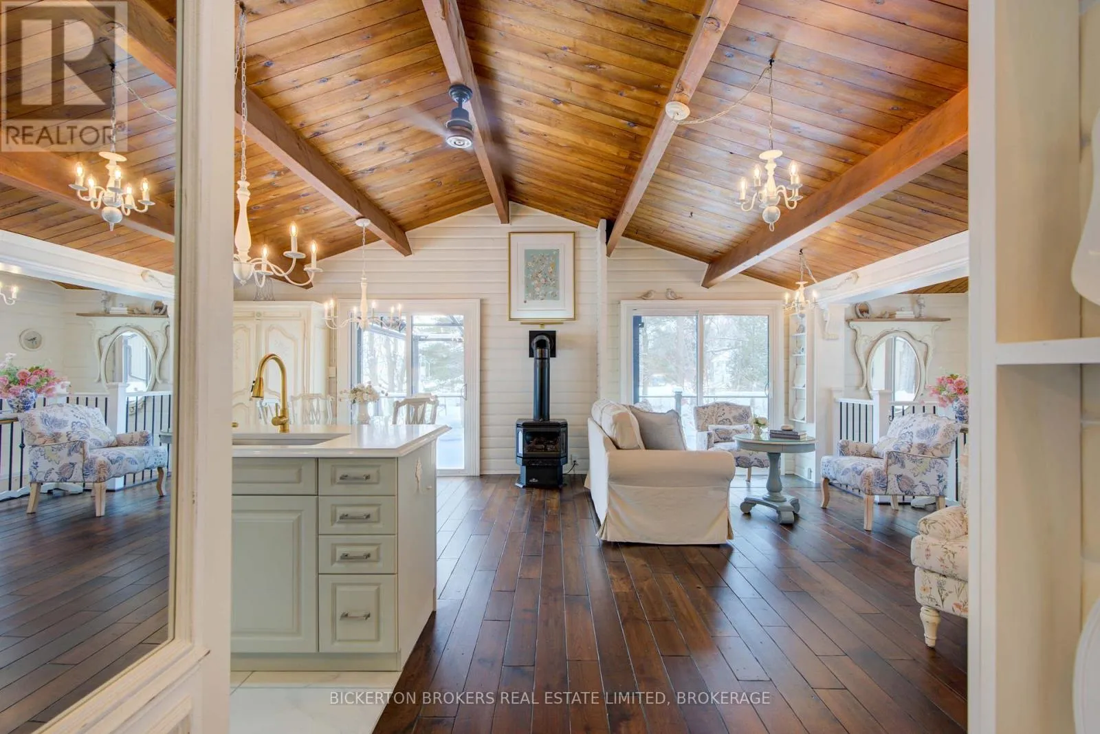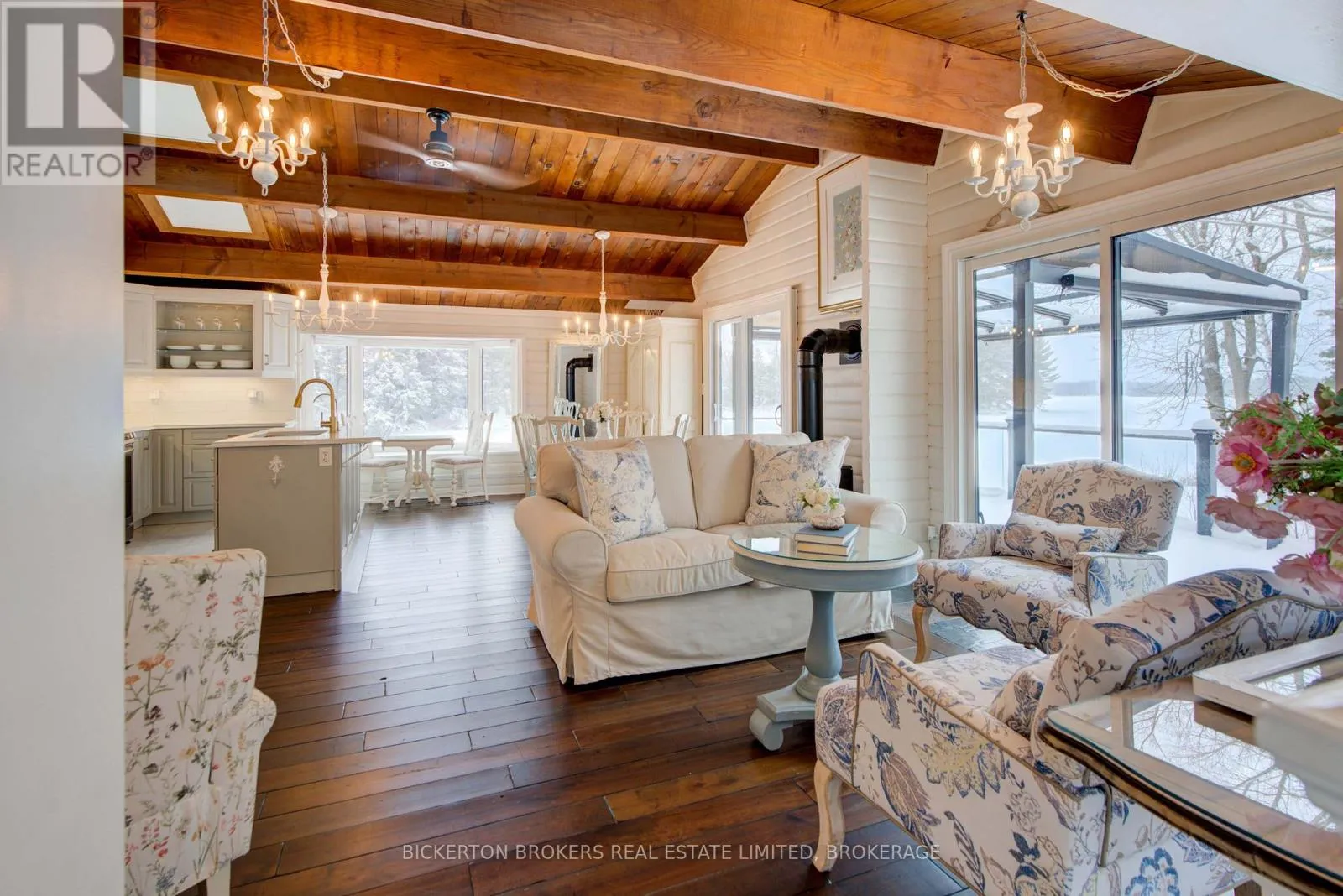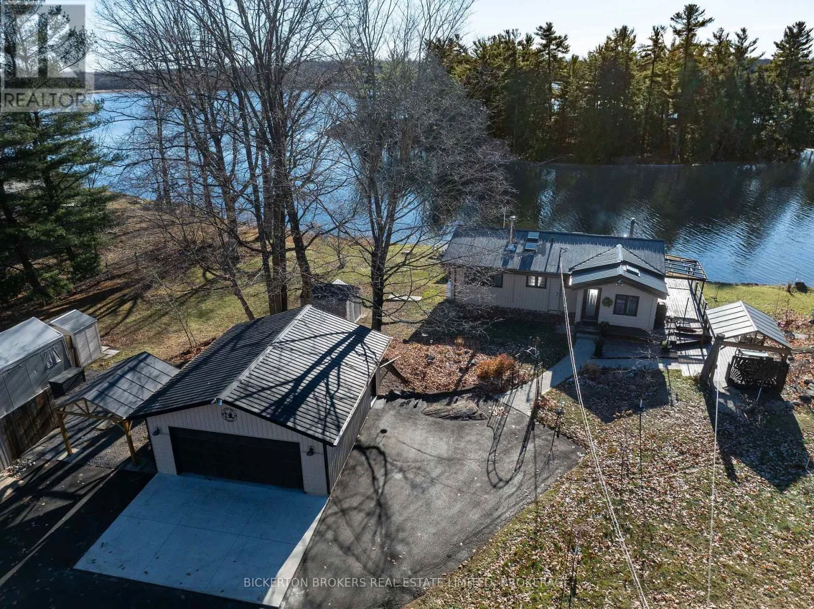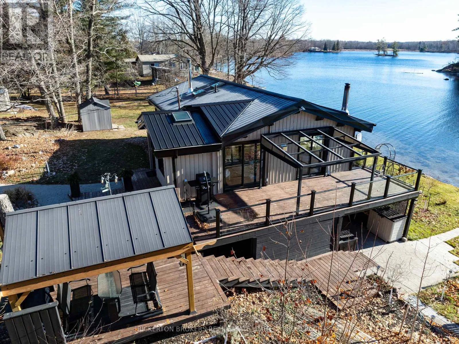 Cross Streets: Wilmer Road. ** Directions: From Hwy 401, take exit for Perth Road(county Rd 10), go north on Perth Road and Turn left onto Hogan Road, Continue to 1927 Hogan Road. Welcome to 1927 Hogan Road, a stunning Sydenham Lake waterfront 4 season home that combines modern elegance with effortless lakeside living. This beautifully renovated bungalow features a desirable walk-out basement and high-end finishings throughout and provides sunrises and sunsets on private acre lot with wildlife galore, great fishing and fun lake activities, beautiful perennial gardens and so many extras. The main level offers two comfortable bedrooms, a stylish 4-piece bathroom, and convenient main-floor laundry-all designed for easy, everyday living. The interior flows seamlessly with bright, open spaces that capture views and natural light and lower level is mostly finished with covered walkout to waterfront and amazing views from windows along with cozy woodstove and 3 pc bath. The new 3 pc bath will be finished at Seller's expense prior to closing. Step outside to your professionally landscaped grounds complete with a spacious patio and deck, ideal for entertaining or relaxing while enjoying panoramic lake vistas. A paved driveway leads to a large two-car garage and an additional drive-in single carport, providing exceptional parking and storage options. This property also boasts a private, aluminum dock and lovely and easy waterfront access-perfect for swimming, boating, or simply soaking in the serene beauty of Sydenham Lake. Only 10 minutes to Sydenham and 20 minutes to Kingston, 1927 Hogan Road is the ultimate blend of luxury, comfort, and waterfront lifestyle-a gorgeous place to call home. (id:27476)