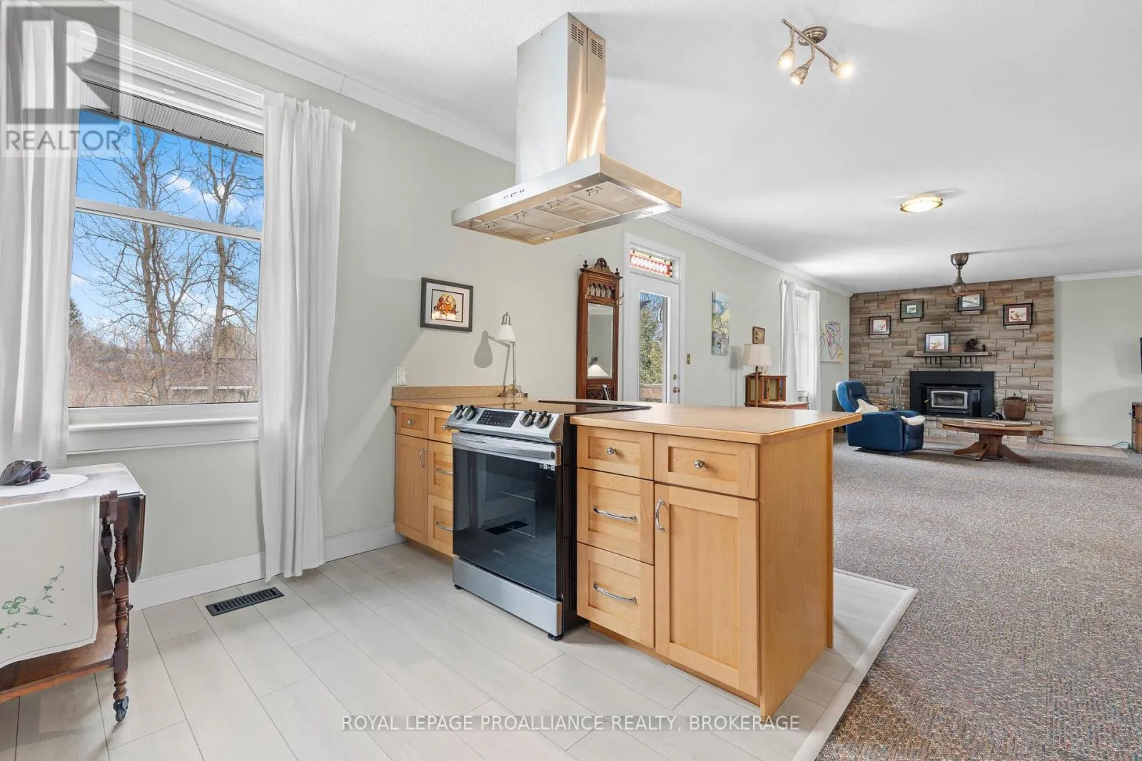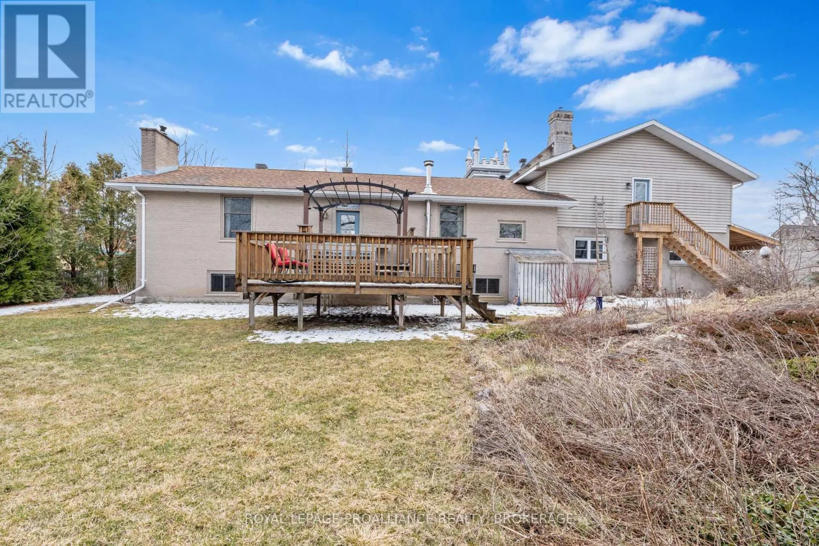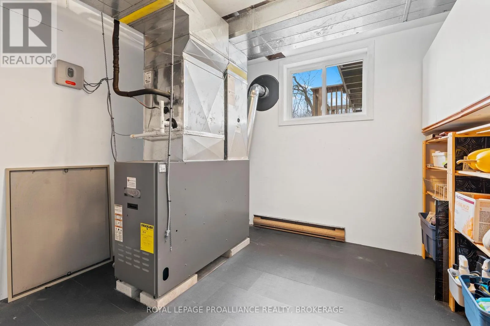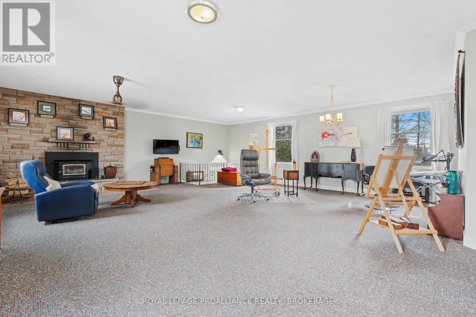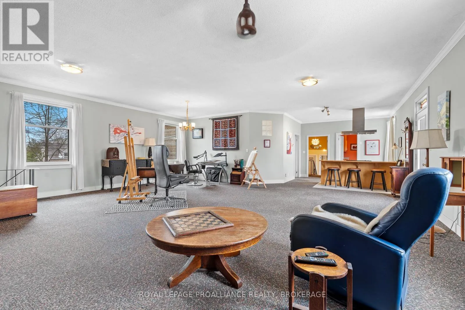 Highway 38 to Harrowsmith Road Welcome to 3958 Harrowsmith Road -- a truly unique property in the heart of the charming village of Harrowsmith. This former church with a spacious residential addition presents a rare opportunity for personal living, business potential, or both. Zoned UC-1 (commercial), its perfect for a home office or other venture! The original church showcases stunning limestone architecture, with a bright, open "Nave" featuring soaring ceilings and vibrant stained glass windows. The bell tower remains intact with stairs to the top offering potential to finish and a bathroom rough-in adds future flexibility. The upper balcony/gallery is in excellent condition and provides ample space for creative use. The rear addition offers a generous amount of living space, beginning with a large foyer and flowing into the main living area with a cozy wood-burning fireplace and walkout to a spacious deck. The kitchen features a unique split layout with ample cabinetry. Two bedrooms are on the main level, including a primary suite with a 4-piece ensuite, plus a large 2-piece bath. The lower level includes two more bedrooms, an office/den, a 4-piece bath, and a laundry area, perfect for families or in-law suite potential. Upstairs, a 600 sq. ft. loft is currently used as a workshop. The back section has a block foundation and is independently serviced by air, a furnace, a heat pump, and its own eco septic system. The front section of the home is on a stone foundation with a holding tank and is serviced by a hot water tank, a furnace, and a heat pump. Electric baseboards are also a source of heat. The property has ample parking for residential and commercial needs, an EV charger, and fibre-optic high-speed internet is available and is just a short walk from the K&P and Cataraqui Trails. Come see it for yourself! (id:27476)