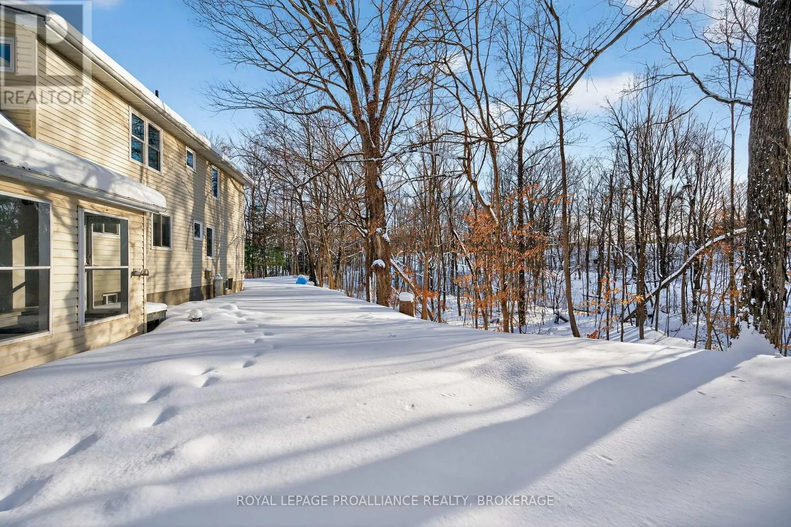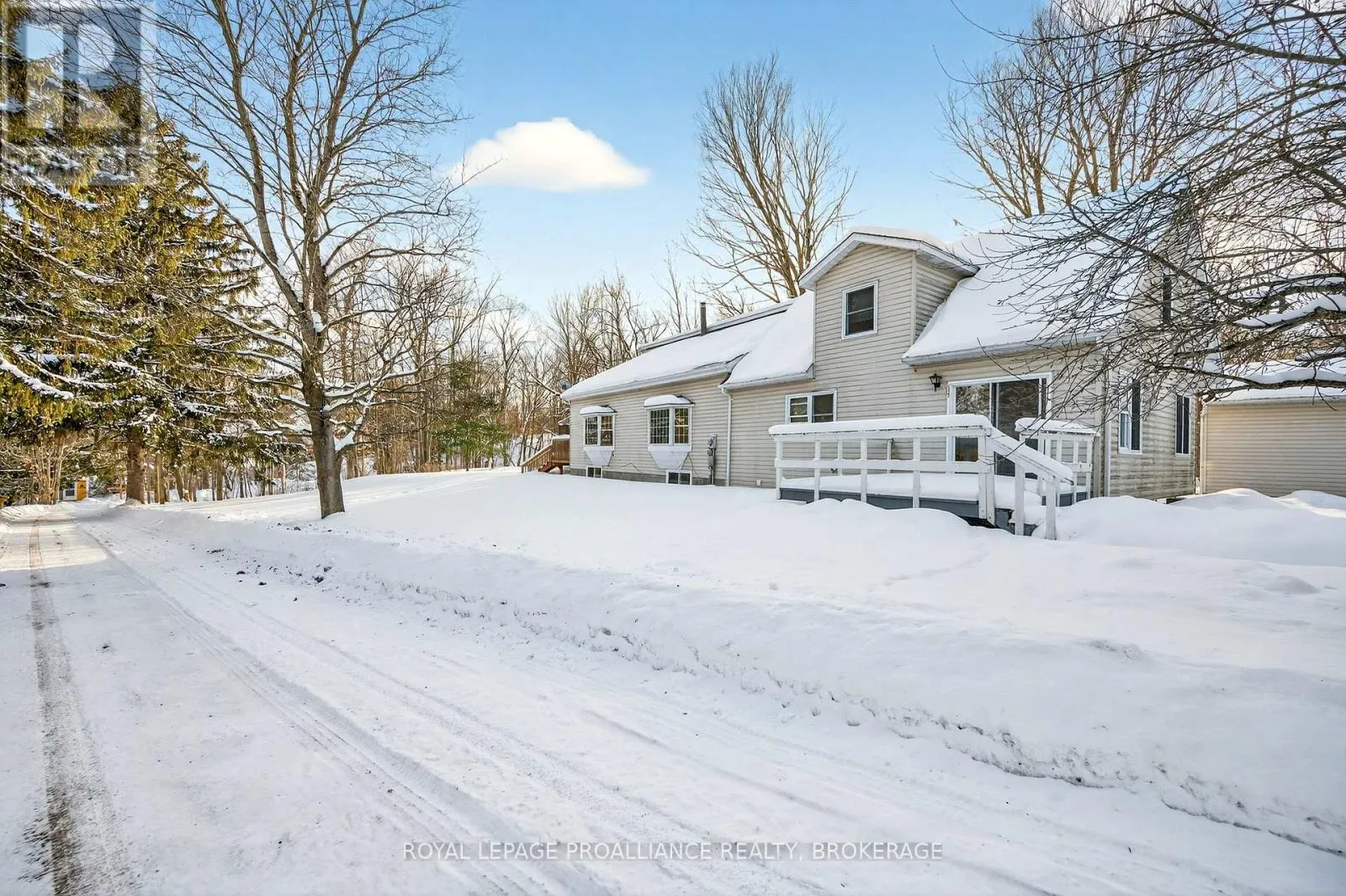 Cross Streets: Moreland Dixon Rd to Waterfall Lane. ** Directions: Perth Road right onto S Frontenac Road 12 right onto Waterfall Lane #3961 Waterfall Lane. Discover exceptional lakeside living on Collins Lake with this rare property offering 149 ft of waterfront and just over 4.5 acres of privacy. Set on a quiet cul de sac, the home captures stunning views in every season and provides flexible living options with two separate units that can function as one spacious residence or independent spaces. The first unit features 2 bedrooms (one loft style), 1 full bath, and a newly updated kitchen, creating a bright and inviting retreat for guests or extended family. A window-mounted A/C unit ensures year-round comfort in the main living area. The second unit offers 3 bedrooms, 2 full baths, a main floor primary ensuite, a large main kitchen, and a full basement with a rec room and generous storage. Multiple wall-mounted A/C units provide efficient cooling throughout the home, enhancing comfort during warmer months. Enjoy outdoor living on the screened-in porch, perfect for relaxing while taking in the natural surroundings. A large detached 3-car garage provides ample room for vehicles, tools, and recreational equipment. Collins Lake is known for its clear waters, peaceful atmosphere, and excellent recreation. Residents enjoy canoeing, kayaking, fishing, swimming, and year-round wildlife viewing. With minimal boat traffic and a serene natural setting, it's an ideal escape for those seeking quiet waterfront living with convenient access to nearby amenities. (id:27476)