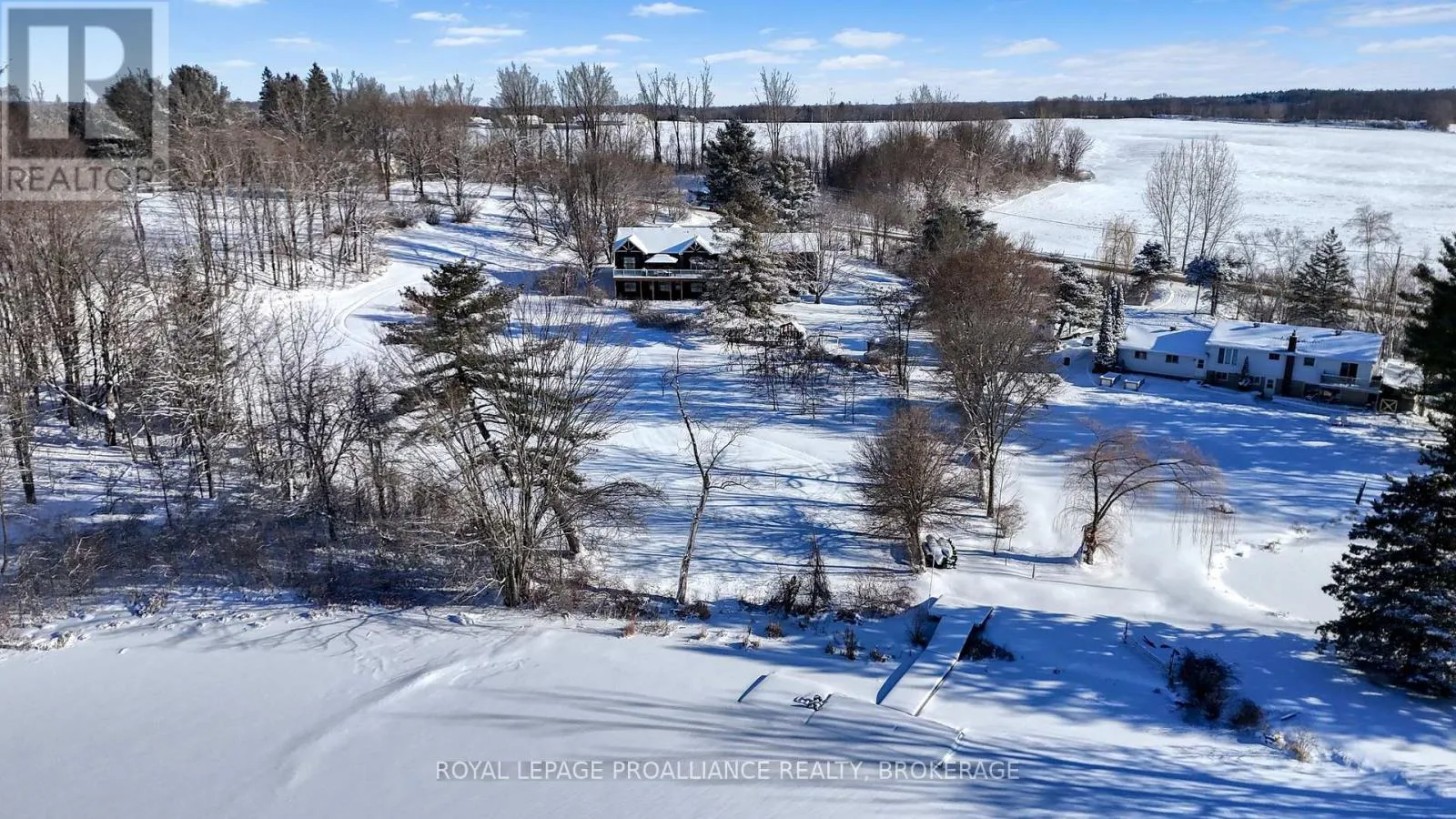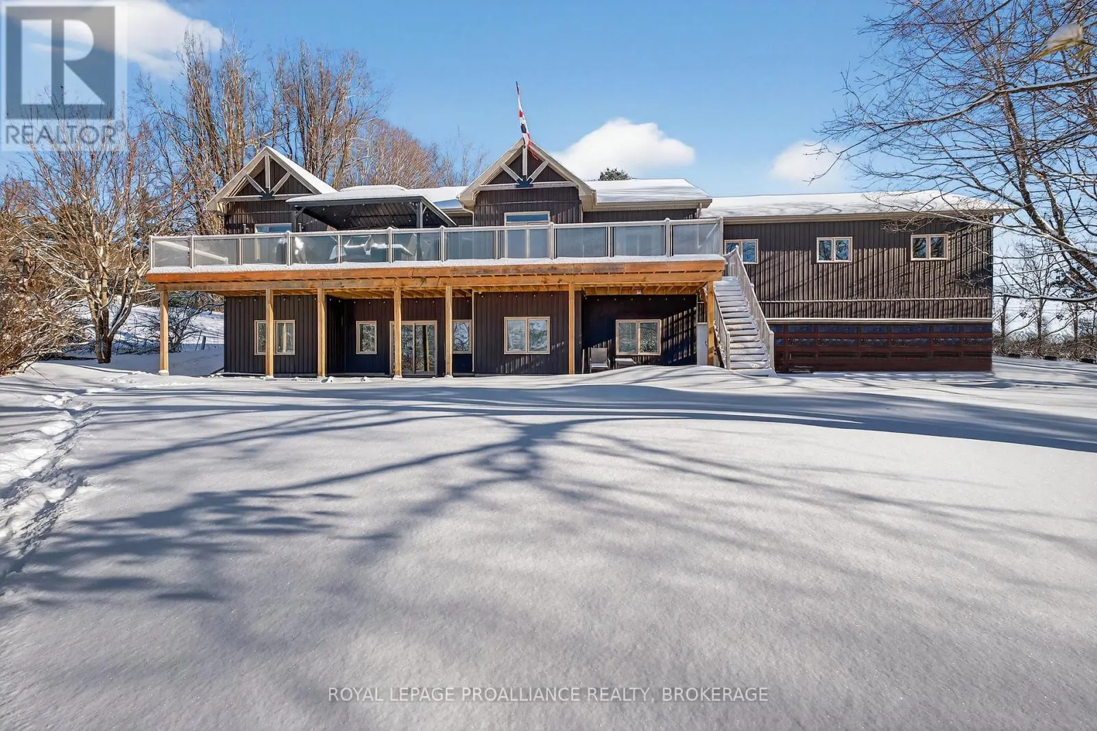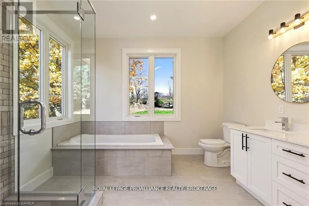 Cross Streets: Highway 15/Sunbury Rd. ** Directions: Highway 15 to Sunbury Road. Discover lakeside living at its best with this stunning custom-built bungalow, offering over 2,000 sq. ft. of main floor living space and nearly 60' of shoreline on Dog Lake. Crafted with both quality and comfort in mind, this home features an ICF foundation, soaring 10' ceilings, a vast partially finished walk-out lower level, and engineered hardwood & tile flooring throughout. The open concept impresses, with the bright kitchen featuring quartz countertops, premium cabinetry and large separate dining area open to the spacious living room - highlighted by a gas fireplace and 12-foot patio doors leading to a 650 sq. ft. deck with glass and aluminum railings providing breathtaking panoramic views of the area. The primary suite is tucked away at one end of the home offering privacy, and finished with cove ceilings and a spa inspired 5-piece ensuite with glass-enclosed shower and soaker tub. Two other bedrooms and a full bath are also here on the main level. The walk-out lower level provides extra flex space and finds in-floor heating roughed-in, and the attached SIX-car garage with epoxy flooring is incredible. This one is a beauty - with wonderful curb appeal from the stamped concrete front porch all the way around the yard space right to the waterfront with a new floating dock. Packed with upgrades and with high end finishes throughout, this one should not be missed. Survey, floor plans and supporting documents are available upon request. (id:27476)