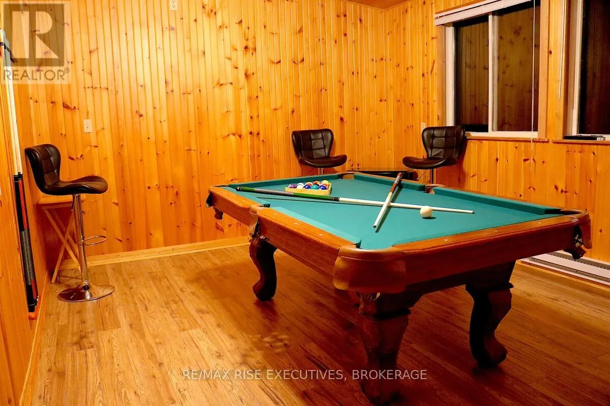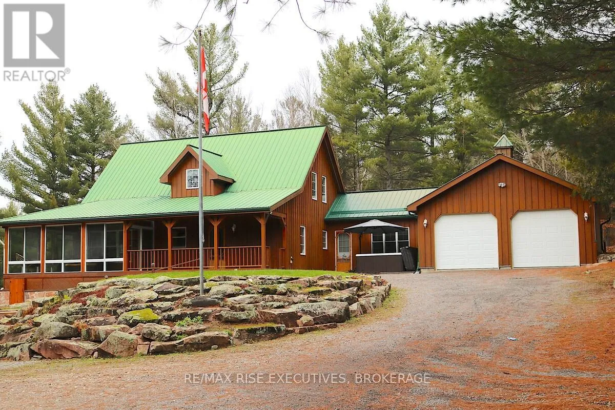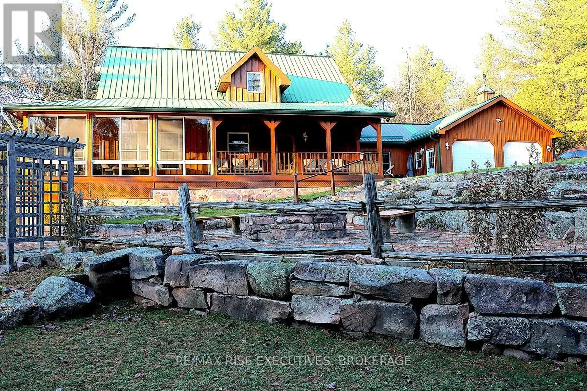 Cross Streets: Hwy 38 and Tryon Road. ** Directions: Hwy 38 to Tryon Road. Follow to 2 Loon Lane.Watch for 1093 Sign (B). 1093B Two Loon Lane - O'Reilly Lake. Welcome to pure paradise. Tucked away on a quiet, well-maintained year-round road, this custom-built 4-bedroom lakefront home offers unmatched privacy with 9 acres of seclusion and an incredible 528 feet of pristine shoreline on peaceful O'Reilly Lake-where gas motors are prohibited, ensuring calm waters and a true escape. Warmth and character fill the home, highlighted by pine beams, ash hardwood floors, and a thoughtfully designed layout. The main floor features a convenient bedroom with direct access to the attached garage and hot tub, along with a 3-piece bathroom-ideal for main-level living or guests. Upstairs, you'll find three additional bedrooms, including a spacious primary bedroom, and a beautiful main bath complete with soaker tub and separate shower. The heart of the home is a welcoming kitchen with granite island, flowing seamlessly into an enclosed, year-round wraparound porch that's both heated and cooled-perfect for enjoying the lake views in every season. A massive 25' x 23' attached garage provides plenty of room for vehicles, toys, and storage. Outside, the property truly shines with a finished, heated bunkie ideal for guests or a games room, multiple outbuildings, and your own private boat launch. Whether you're swimming, paddling, or simply soaking in the quiet, this is lakefront living at its finest. Currently operated as a successful and lucrative Airbnb, this property offers the next owner the option to continue generating strong rental income, or simply enjoy it as a private family retreat. Offered fully furnished, including all furniture, dishware, canoe, kayak, hot tub, and more, this is a true turn-key waterfront opportunity. A rare combination of privacy, lifestyle, and income potential-once you arrive, you may never want to leave. (id:27476)