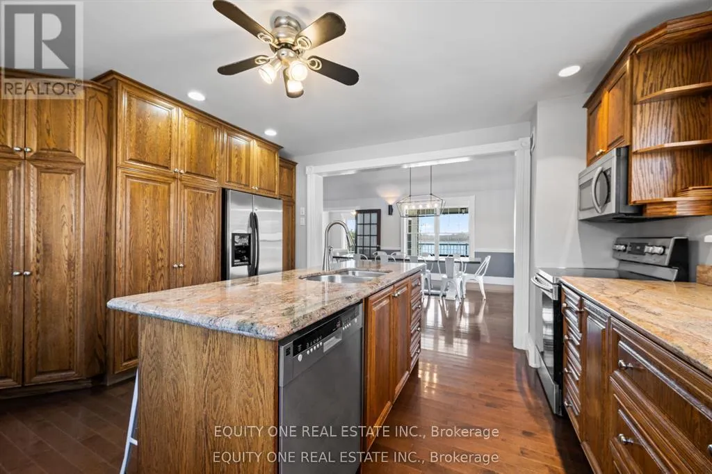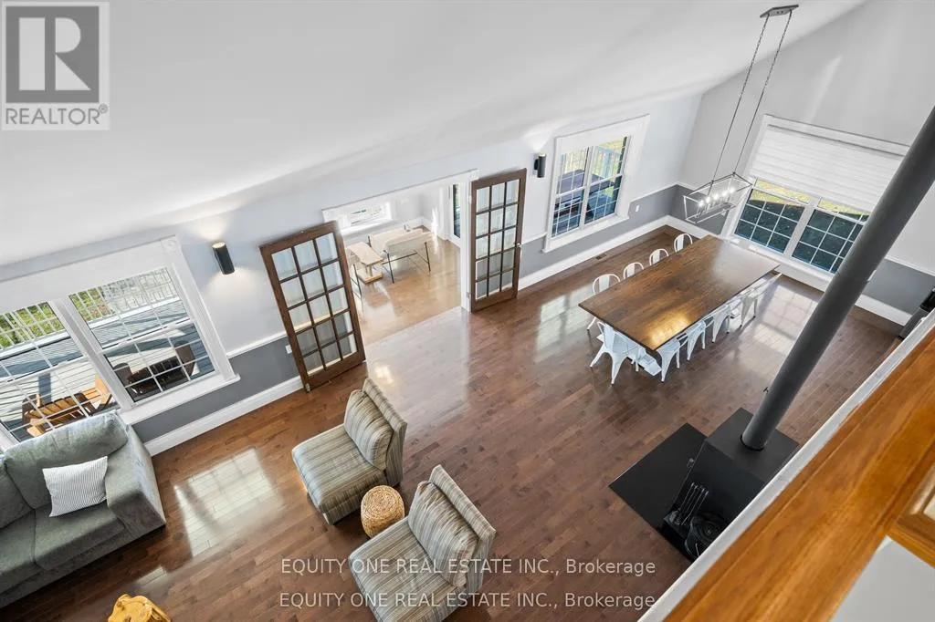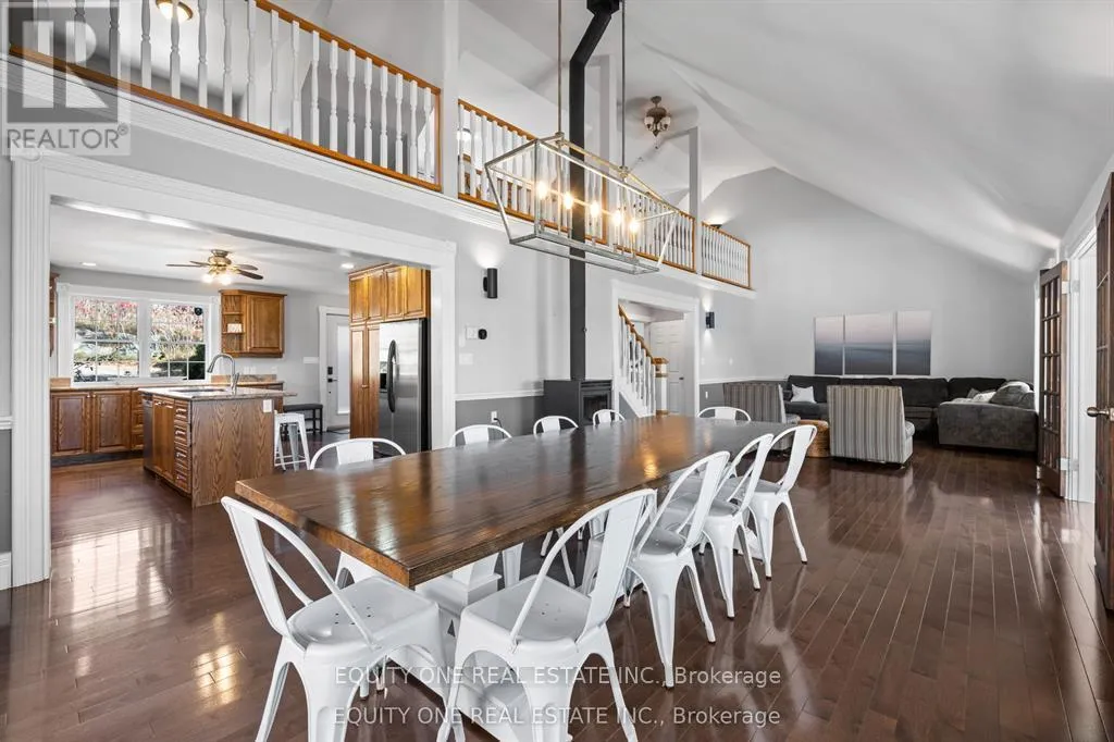 Cross Streets: Shibley & Polar Bear Lane. ** Directions: Hwy 417W to Hwy 7 and follow past Maberly. At Sharbot Lake, left on Road 38. Left on Shibley Road. Left Polar Bear Lane. Waterfront retreat with full walk out basement on beautiful Sharbot Lake! Nestled on a 2.9-acre lot, this gorgeous 1 1/2 storey detached home offers the perfect blend of cottage comfort and modern living-with breathtaking panoramic lake views from the back of the house. The main floor features a large kitchen with island, plenty of counter space, and ample cabinetry. The kitchen opens to the dining and living area with soaring ceilings and a high-efficiency wood-burning stove, perfect for cozy winter nights. A main floor primary bedroom and full bathroom provide convenience, while the sunroom overlooking the lake offers the perfect spot to unwind and enjoy the view. Upstairs, the loft includes three semi-private sleeping areas separated by partition walls and overlooking the living area-ideal for guests or family stays.The walk-out lower level features a second kitchen, full bathroom, two bright bedrooms, a family room with gas fireplace, and ample storage. Step outside to the heated inground saltwater pool or head down to the shoreline to swim, paddle, or simply relax by the water. Located just 1 1/2 hours from Ottawa, this property is the perfect year-round retreat-ideal for family gatherings, peaceful getaways, or earning supplemental rental income when you're not there. Working from the lake is also a breeze with high speed fibre Internet. Experience lakeside living at its finest on sought-after Sharbot Lake! Private road fee of $250 per year. (id:27476)
