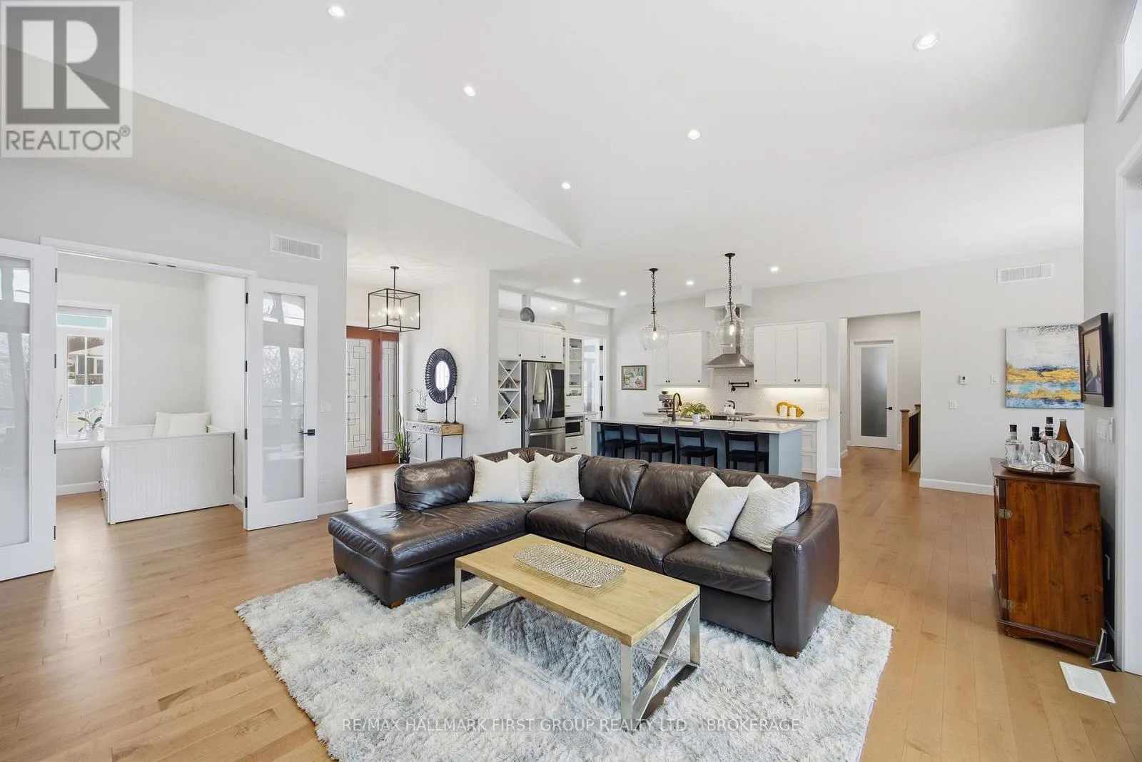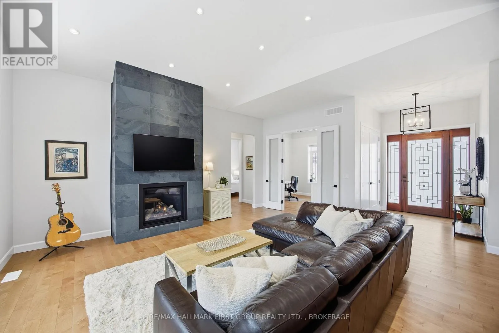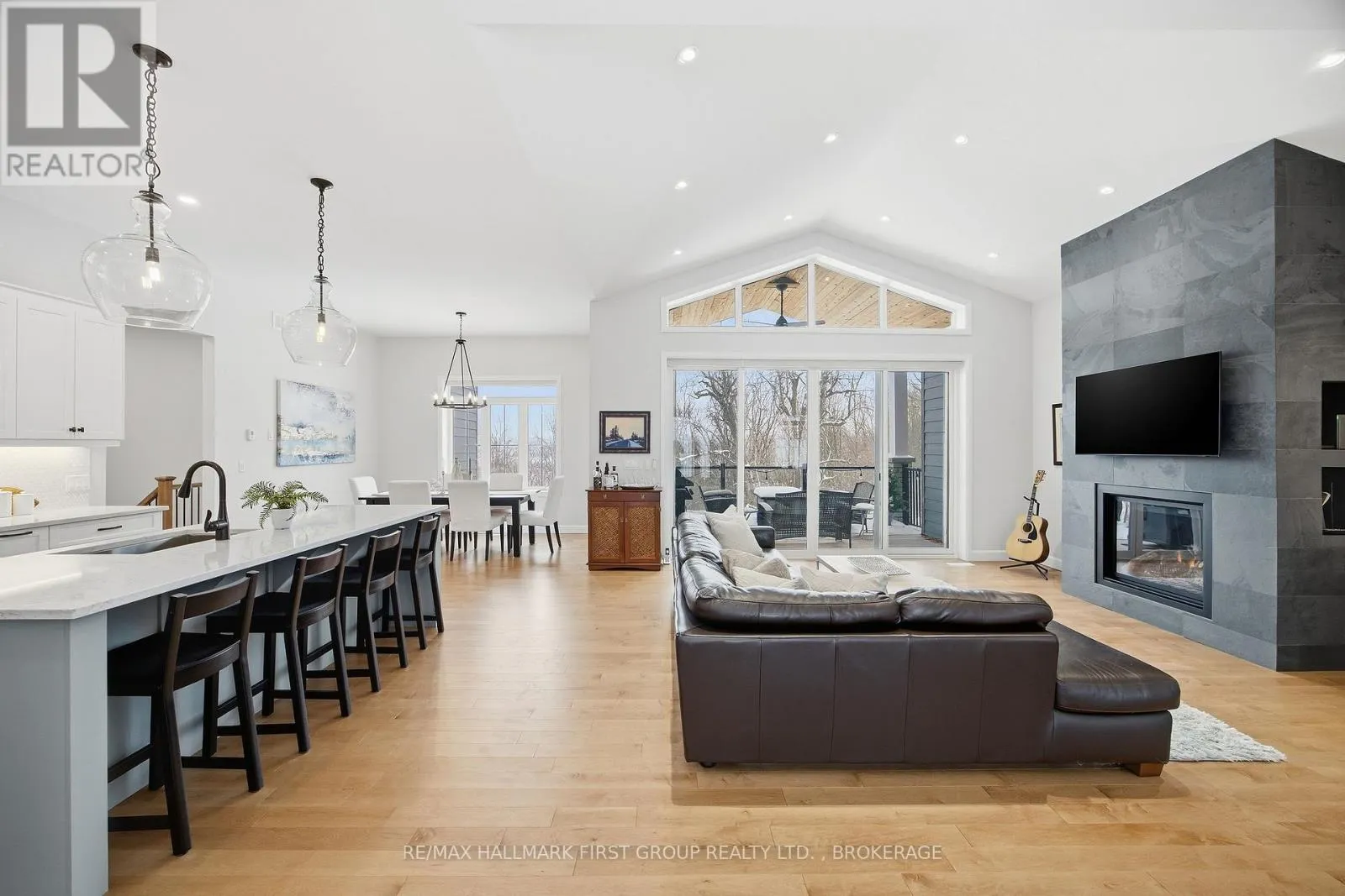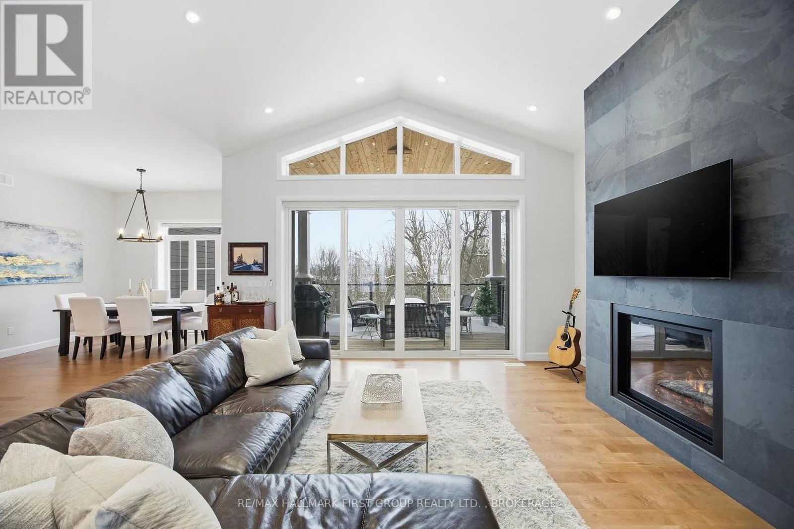 Cross Streets: Kam Avenue & Kona Crescent. ** Directions: Perth Rd. to Holmes Rd. to Lakefield Dr., to Kam Ave., to Kona Crescent. Nestled within a desirable lakefront community, this custom-built executive home offers refined living surrounded by natural beauty. Thoughtfully designed and impeccably maintained, the property blends elegance, comfort, and opportunity. The inviting living room showcases soaring vaulted ceilings and a stunning floor-to-ceiling propane fireplace, creating a dramatic focal point and warm gathering space. Expansive windows bring in natural light while framing peaceful wooded views with seasonal glimpses of the lake. Step outside to two levels of decking that overlook mature trees, providing the perfect setting for entertaining or relaxing in privacy. The front and rear grounds are beautifully landscaped, enhancing both curb appeal and outdoor enjoyment. The three-car garage offers ample space for vehicles, recreational equipment, and all the extras that come with an active lifestyle. The expansive unfinished walkout basement presents incredible potential. Already roughed in with a large bathroom, the space is ready to be transformed into whatever you envision - an indoor gym, music studio, in-law suite, recreation or party room, or additional living quarters. The possibilities are truly endless. This exceptional home offers luxury, flexibility, and room to grow - all within a serene lake community setting. (id:27476)