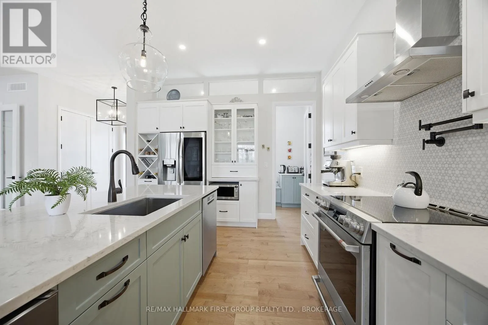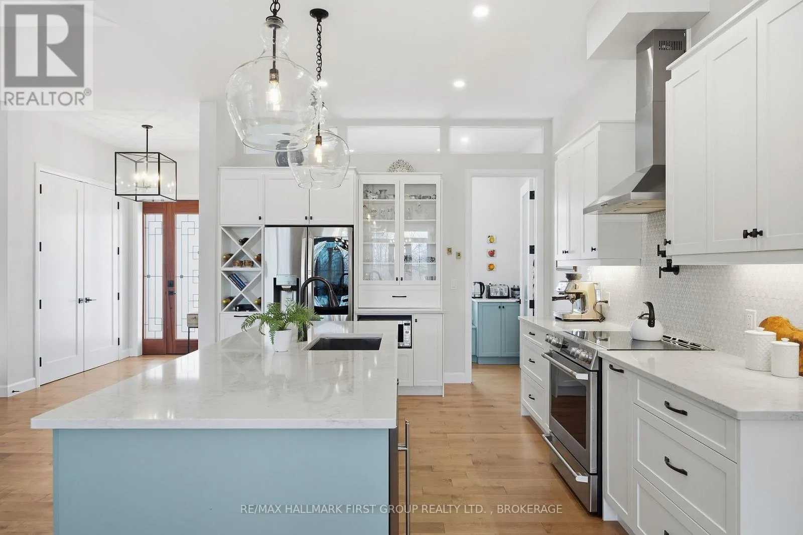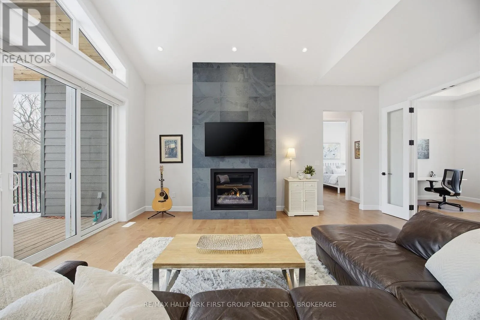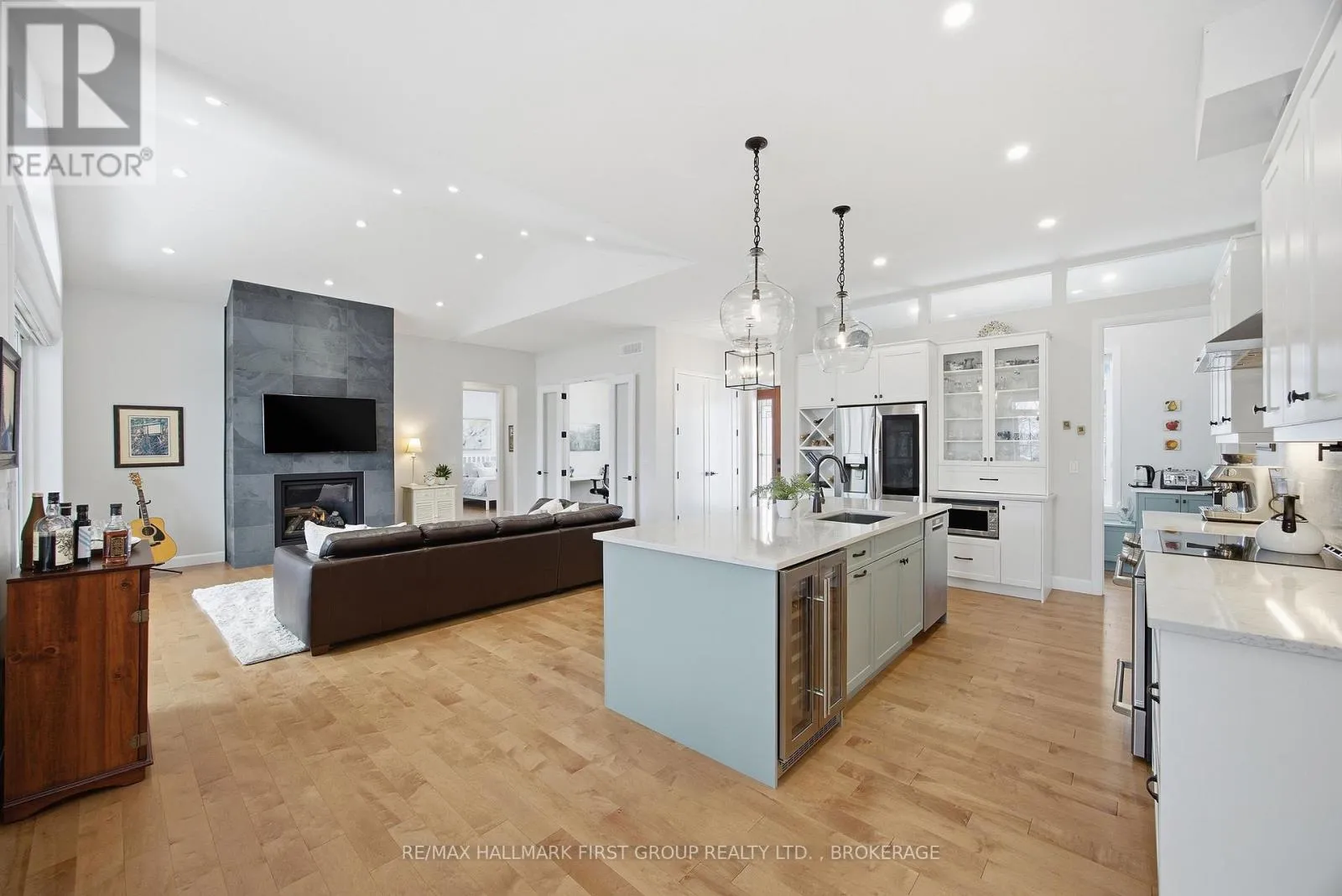Cross Streets: Kam Avenue & Kona Crescent. ** Directions: Perth Rd. to Holmes Rd. to Lakefield Dr., to Kam Ave., to Kona Crescent. Nestled within a desirable lakefront community, this custom-built executive home offers refined living surrounded by natural beauty. Thoughtfully designed and impeccably maintained, the property blends elegance, comfort, and opportunity. The inviting living room showcases soaring vaulted ceilings and a stunning floor-to-ceiling propane fireplace, creating a dramatic focal point and warm gathering space. Expansive windows bring in natural light while framing peaceful wooded views with seasonal glimpses of the lake. Step outside to two levels of decking that overlook mature trees, providing the perfect setting for entertaining or relaxing in privacy. The front and rear grounds are beautifully landscaped, enhancing both curb appeal and outdoor enjoyment. The three-car garage offers ample space for vehicles, recreational equipment, and all the extras that come with an active lifestyle. The expansive unfinished walkout basement presents incredible potential. Already roughed in with a large bathroom, the space is ready to be transformed into whatever you envision - an indoor gym, music studio, in-law suite, recreation or party room, or additional living quarters. The possibilities are truly endless. This exceptional home offers luxury, flexibility, and room to grow - all within a serene lake community setting. (id:27476)