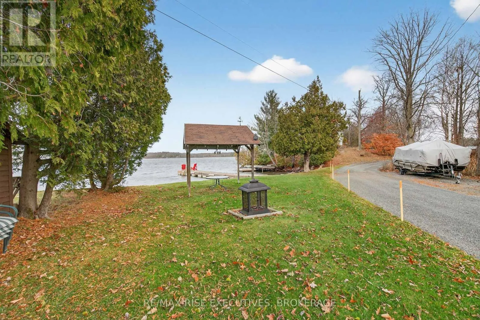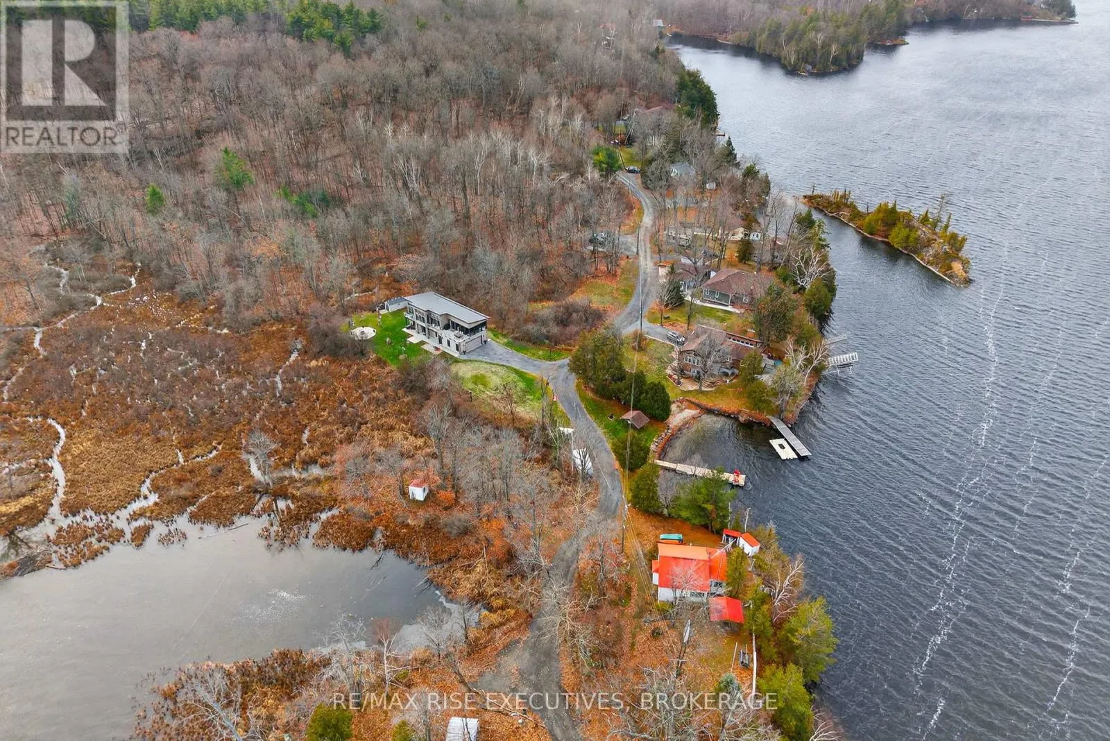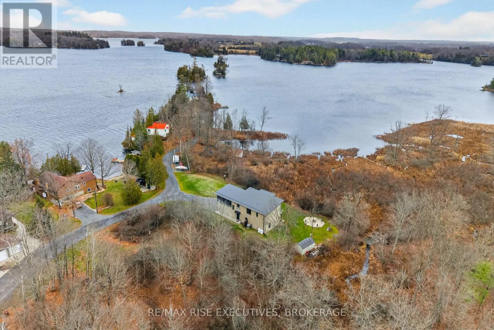 Cross Streets: Battersea and Millburn. ** Directions: Battersea Rd to Millburn to Ormsbee. Impeccably built with architectural sophistication, this contemporary lakefront residence showcases dramatic window walls, rich stone columns, and a sprawling upper balcony perfect for soaking in the surrounding beauty. With soaring13-foot ceilings on the main level, a metal roof with leaf guards, and a design that blends modern lines with warm natural textures, the home offers an elevated living experience from the moment you arrive. Set on 85 ft. of Dog Lake waterfront, on just under an acre and part of the renowned Rideau System, the property offers exceptional water views, a 55 ft. permanent dock, and recreational opportunities with great fishing and impressive water depth - up to70 feet directly out front. The home also sits on a well-maintained private road with year-round plowing and maintenance for only $500 annually, and features a drilled well providing an abundance of good water. Built on a slab just 10 years ago, the home has been thoughtfully engineered with six inches of underside insulation for comfort, and longevity. Inside, the layout is both functional and luxurious, featuring two bedrooms on the lower level and a private master retreat upstairs complete with its own balcony and walk-in closet. The home is hot-tub ready with a Muskoka room designed for year-round enjoyment, and also includes a propane gas feed for your barbecue -ideal for lakeside entertaining. The 200-amp electrical panel comes equipped with a pigtail for easy generator hookup. All appliances, including the washer and dryer, are included with the sale, making this a turnkey opportunity for those seeking a high-quality, low-maintenance lifestyle. Further, the 160 sq. ft. shed offers excellent storage, and practical conveniences such as door-side garbage and recycling pickup and even Amazon delivery, ensure effortless day-to-day living. (id:27476)