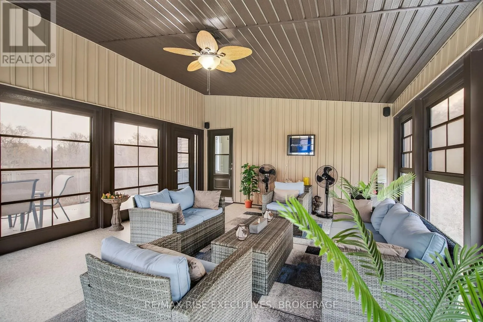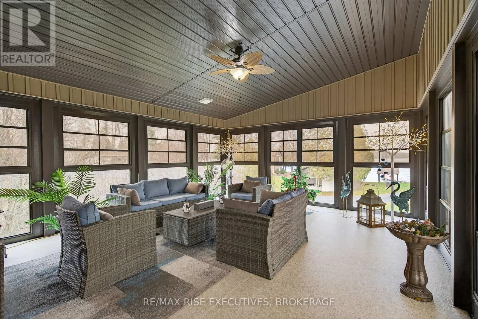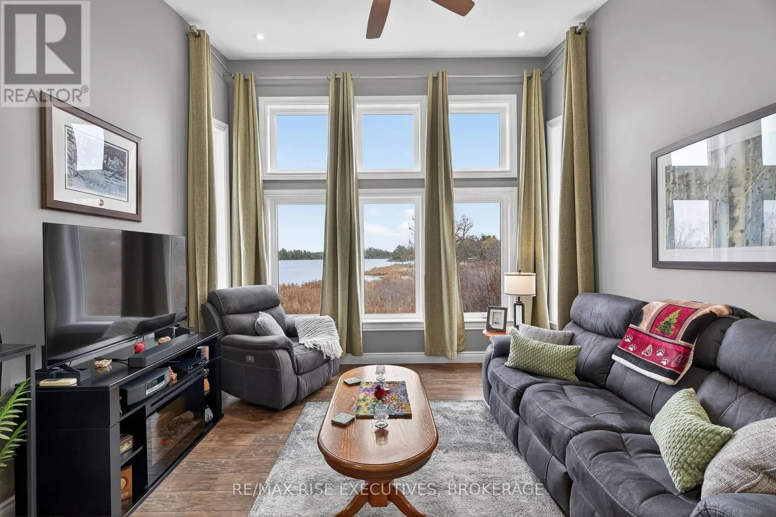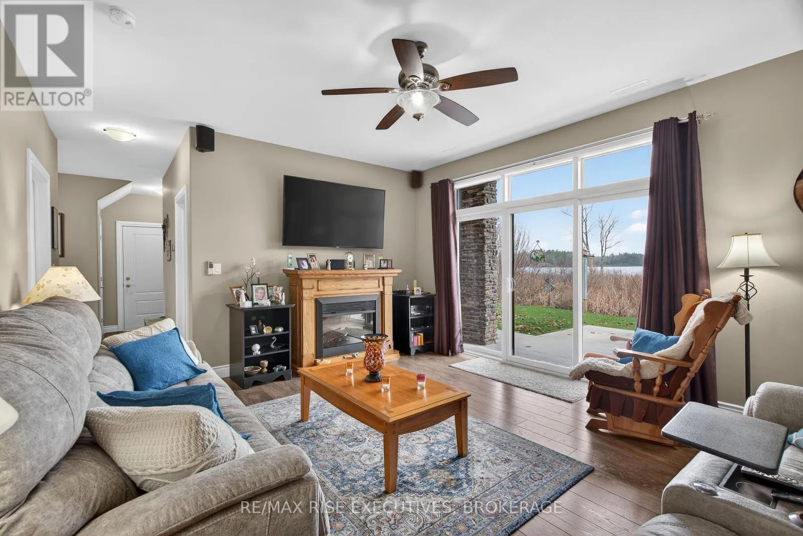 Cross Streets: Battersea and Millburn. ** Directions: Battersea Rd to Millburn to Ormsbee. Impeccably built with architectural sophistication, this contemporary lakefront residence showcases dramatic window walls, rich stone columns, and a sprawling upper balcony perfect for soaking in the surrounding beauty. With soaring13-foot ceilings on the main level, a metal roof with leaf guards, and a design that blends modern lines with warm natural textures, the home offers an elevated living experience from the moment you arrive. Set on 85 ft. of Dog Lake waterfront, on just under an acre and part of the renowned Rideau System, the property offers exceptional water views, a 55 ft. permanent dock, and recreational opportunities with great fishing and impressive water depth - up to70 feet directly out front. The home also sits on a well-maintained private road with year-round plowing and maintenance for only $500 annually, and features a drilled well providing an abundance of good water. Built on a slab just 10 years ago, the home has been thoughtfully engineered with six inches of underside insulation for comfort, and longevity. Inside, the layout is both functional and luxurious, featuring two bedrooms on the lower level and a private master retreat upstairs complete with its own balcony and walk-in closet. The home is hot-tub ready with a Muskoka room designed for year-round enjoyment, and also includes a propane gas feed for your barbecue -ideal for lakeside entertaining. The 200-amp electrical panel comes equipped with a pigtail for easy generator hookup. All appliances, including the washer and dryer, are included with the sale, making this a turnkey opportunity for those seeking a high-quality, low-maintenance lifestyle. Further, the 160 sq. ft. shed offers excellent storage, and practical conveniences such as door-side garbage and recycling pickup and even Amazon delivery, ensure effortless day-to-day living. (id:27476)