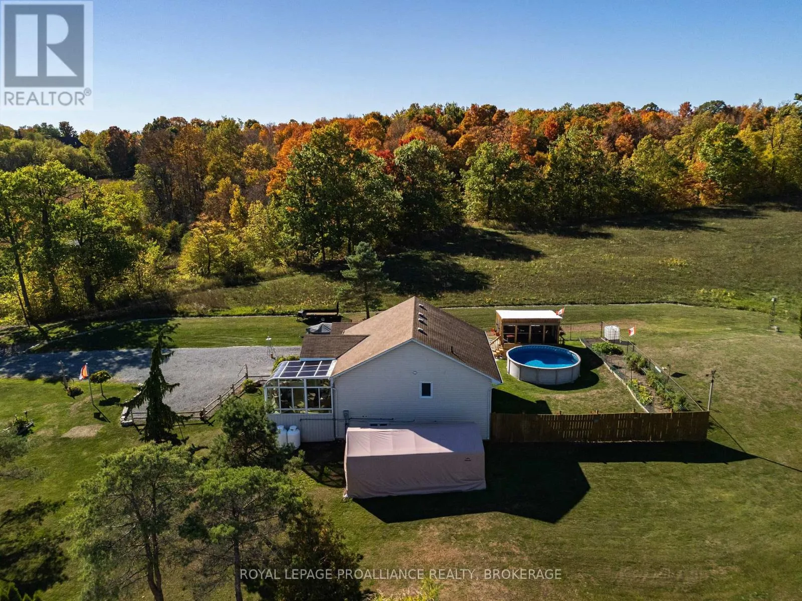 Cross Streets: Patterson Road and Mount Chesney Road. ** Directions: Battersea Road to Mount Chesney Road. Beautifully updated and meticulously maintained raised bungalow, set on a private and manicured one-acre lot just five minutes north of the 401. Offering 2,000 square feet of finished living space, this wonderful family home features 2+2 bedrooms, 2 full bathrooms, formal dining room, a main floor family room, a bright solarium and a lower level rec/media room warmed by a cozy propane stove. Recent updates include refinished kitchen and bathroom cabinetry, new countertops, updated flooring, a new above-ground pool and a custom screened-in sun-room designed for extended summer enjoyment. Positioned high above the road, the property offers sweeping views of rolling farmland and a peek of the Rideau waterway. Immaculately maintained with every detail thoughtfully cared for, this home is truly move-in ready. (id:27476)