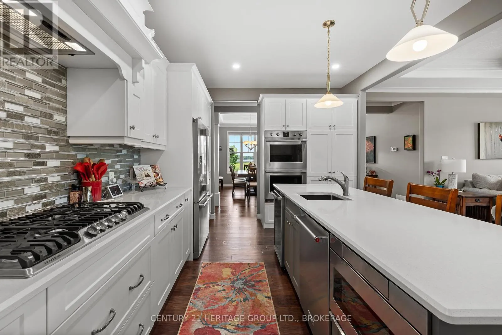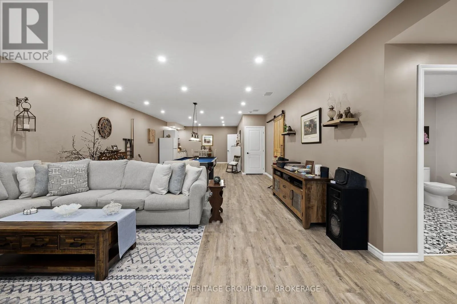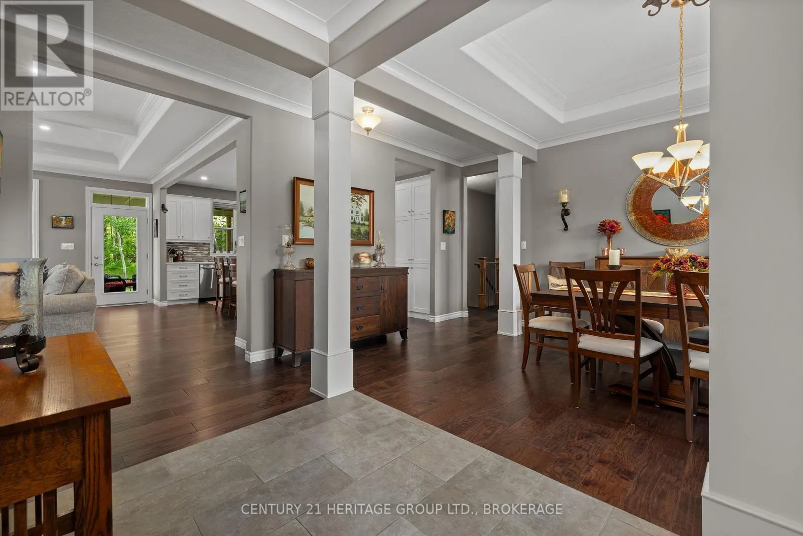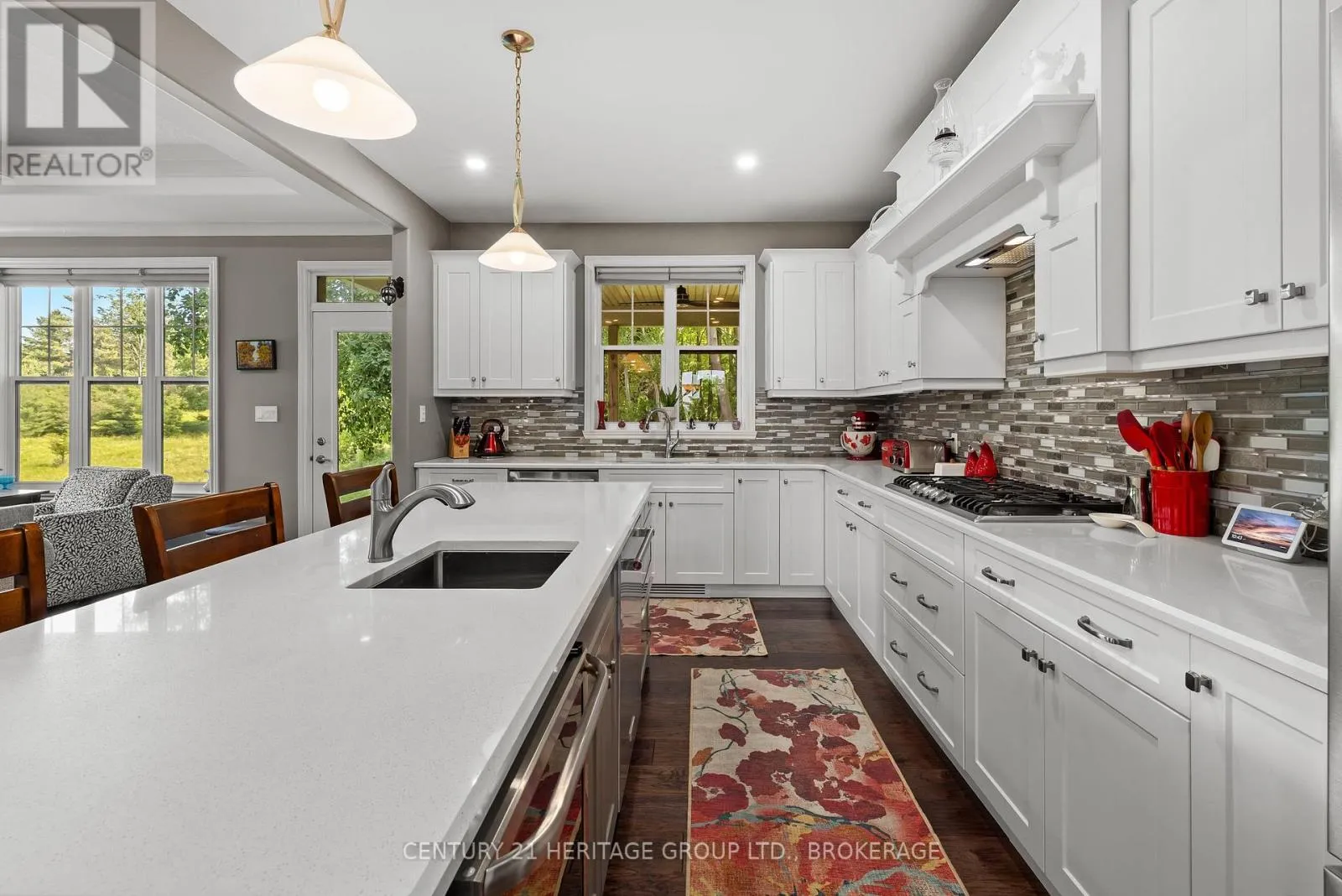 Cross Streets: Cranberry Cove Lane and Carrying Place. ** Directions: Burnt Hills Rd to Carrying Place to Cranberry Cove Lane. Welcome to this custom-built bungalow set on 4.52 private acres in the desirable Cranberry Cove Estates. With views of Cranberry Lake, your own pond, and a wooded backdrop, this home offers peace, privacy, and space to enjoy every season. The main level features 3 bedrooms, including a beautiful primary suite with walk-in closet and a 5-piece ensuite with soaker tub and glass shower. Tall ceilings, 8' doorways and large windows bring in natural light throughout. The great room and dining area are accented by 10 coffered ceilings, crown molding, wide-plank hickory hardwood, and a gas fireplace with stone surround. At the heart of the home, the chefs kitchen is both functional and high-end quartz countertops, shaker cabinets, tiled backsplash, and a massive 8' island with prep sink. Premium appliances include a 36 gas cooktop, double wall ovens, wine fridge, French-door refrigerator, micro drawer, and two dishwashers. Two car garage with entrance through the mud room. Downstairs, the fully finished basement nearly doubles your living space with 2 additional bedrooms, a full bathroom, a family room, games area, dry bar, home gym, and plenty of storage. Shouldice stone and board and batten exterior. Step outside and enjoy the surroundings: a covered front porch with lake views and rock gardens, and a large covered back deck overlooking your own pond and the forest. There's even a fire pit area perfect for relaxing to the sound of frogs at dusk. With over 3,400 sq. ft. of finished living space, custom finishes throughout, and only 35 minutes to Kingston, this is the rare rural retreat that truly has it all. (id:27476)
