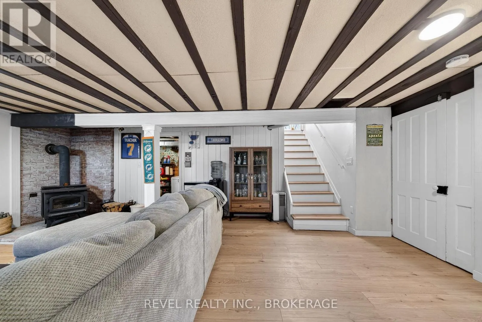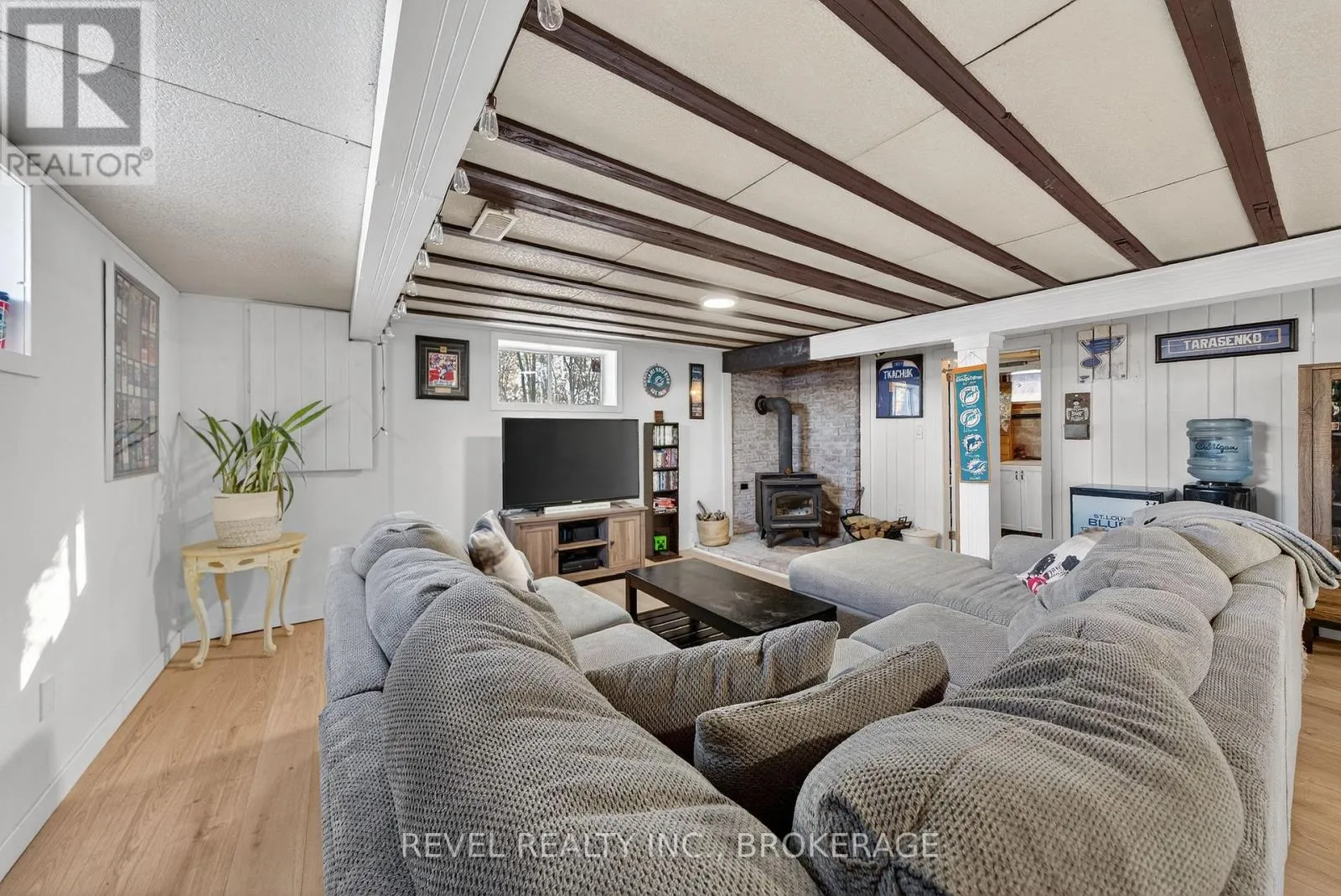 Cross Streets: Gorr Road and Road 38. ** Directions: From 401 - North on Hwy 38 past Gorr Road, property on the left. Welcome to 4131 Highway 38! This cozy move-in-ready 3-bedroom, 1-bath bungalow offers comfort and space. The bright eat-in kitchen features sliding doors that open onto a spacious deck-perfect for entertaining or outdoor music concerts. Recent updates include laminate/vinyl flooring, a newer furnace and central air system (October 2022), and the roof was replaced in 2018.Situated on an impressive 80 x 187 ft lot, the property offers ample parking and plenty of outdoor space to enjoy. Inside, the finished basement adds a living area with a cozy recreation room complete with a woodstove, plus a finished kid's area that could be a fourth bedroom. A spacious utility room with a separate walk-up entrance to the driveway side yard provides excellent potential for an in-law suite, with ample space to add a second bathroom. Perfect for a first time home buyer that is looking for country living at an affordable price. (id:27476)