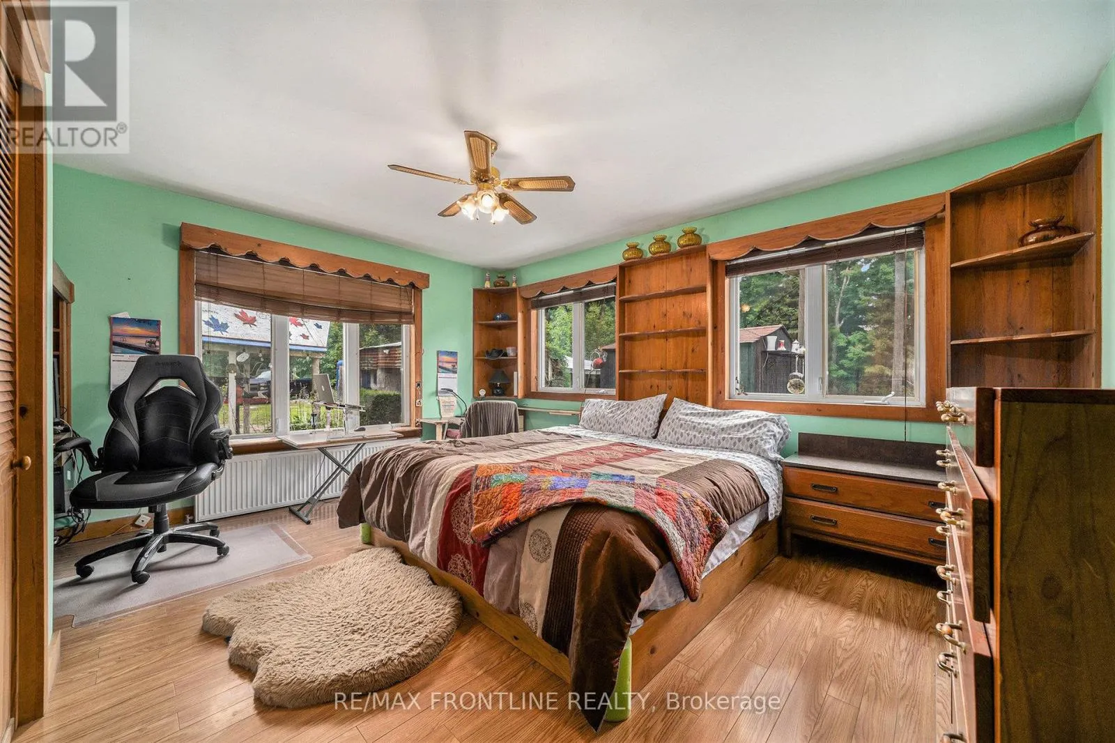 Cross Streets: 509 Road & Bell Line Rd, Mountain Grove. ** Directions: From Ottawa take Hwy 7 west to past Maberly, RT on to 509 Rd, LT onto Bell Line Rd, watch for PIN 3644. Enjoy a quality lifestyle in the country on this peaceful 6 acre property located about 10 minutes east of Sharbot Lake where you will find a full range of amenities and conveniences. Also, a short distance to Round Lake. This 1 bedroom; 1 bathroom bungalow with board / batten exterior was constructed in a manner that allows for a second storey to be added. The open concept living space with larger windows throughout provides for breath-taking panoramic views of the gardens in summer as well as picturesque 'winter wonderland' scenes in winter. At the heart of the home is the efficient galley kitchen, equipped with a gas stove, skylight, bar-style counter running along the work area and adjacent to the living space. The comfortable primary bedroom includes a convenient office nook for taking care of business. Then stepping outside from the main living area, onto a large deck, enjoy the perfect place for barbequing, gatherings with family and friends or morning coffee where you are surrounded by trees and flowers that provide the perfect haven for wildlife, many bird species and butterflies. Other noteworthy features include front door (2024), a 4-bay outbuilding accommodating 3 parking spaces for vehicles and a tool shed; storage shed; she shed / garden shed; well pump (2024); hot water on demand; water filtration system (est 2020); and dry wood storage area. Annual utilities costs for current owners: propane $600; pellets $800 and hydro $1500. WELCOME HOME TO WHERE NATURE SURROUNDS YOU! (id:27476)