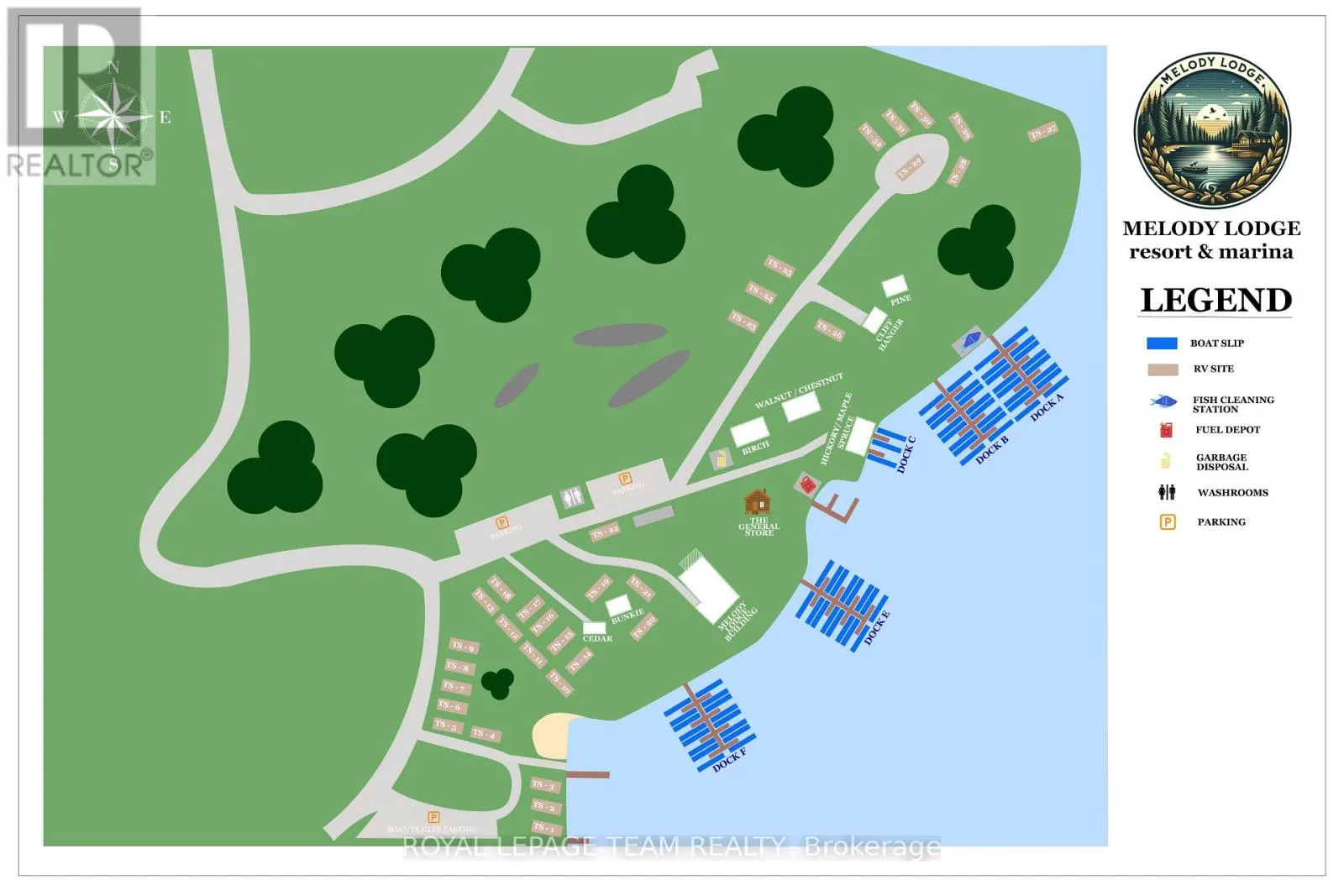 Cross Streets: Carrying Place & Pine Point. ** Directions: From Ottawa, take highway 7 and then highway 15 south to Burnt Hills rd. turn right on Burnt Hills rd. slight right and turn left on Carrying Place and then turn left on Melody Lodge. Melody Lodge is situated on Cranberry Lake which is attached to the beautiful Rideau Lakes system, It presents a rare and compelling waterfront investment opportunity, combining natural beauty with strong revenue potential. A few locks away, you will find yourself in the 1000 Islands waterway. The Lodge can offer year round rentals business. This is a multi-generational family compound offering seasonal or full time living. Great fishing and great winter activities. This exceptional property features 14 well-maintained rental cabins, perfectly positioned with water views and some along the water's edge, offering guests a tranquil and scenic retreat.The marina component is equally impressive, with over 50 boat slips accommodating a vibrant boating community, complemented by premium on-site marine fuel services conveniently located directly on the waterway. Enhancing the guest experience further, the property includes a fully equipped convenience store with an LCBO license, as well as a popular ice cream offering, creating multiple income streams and added appeal for both visitors and locals alike. Boasting approximately 1,800 linear feet of pristine waterfront, the setting is both expansive and picturesque, ideal for recreational enjoyment and future development possibilities. The property spans three separately titled parcels, providing flexibility and long-term value, and includes approximately 4 acres of residential land, 5.3 acres of commercially zoned land, plus an additional connected 2-acre residential lot. Currently generating gross revenues of approximately $400,000 over a six-month operating season, Experience fishing at it's best. With it's unique combination of accommodations, marina services, retail offerings, and significant land holdings, this property is exceptionally well-positioned for further growth and expansion. For additional information and pictures, please see the resort's web address at www.melodylodge.ca (id:27476)