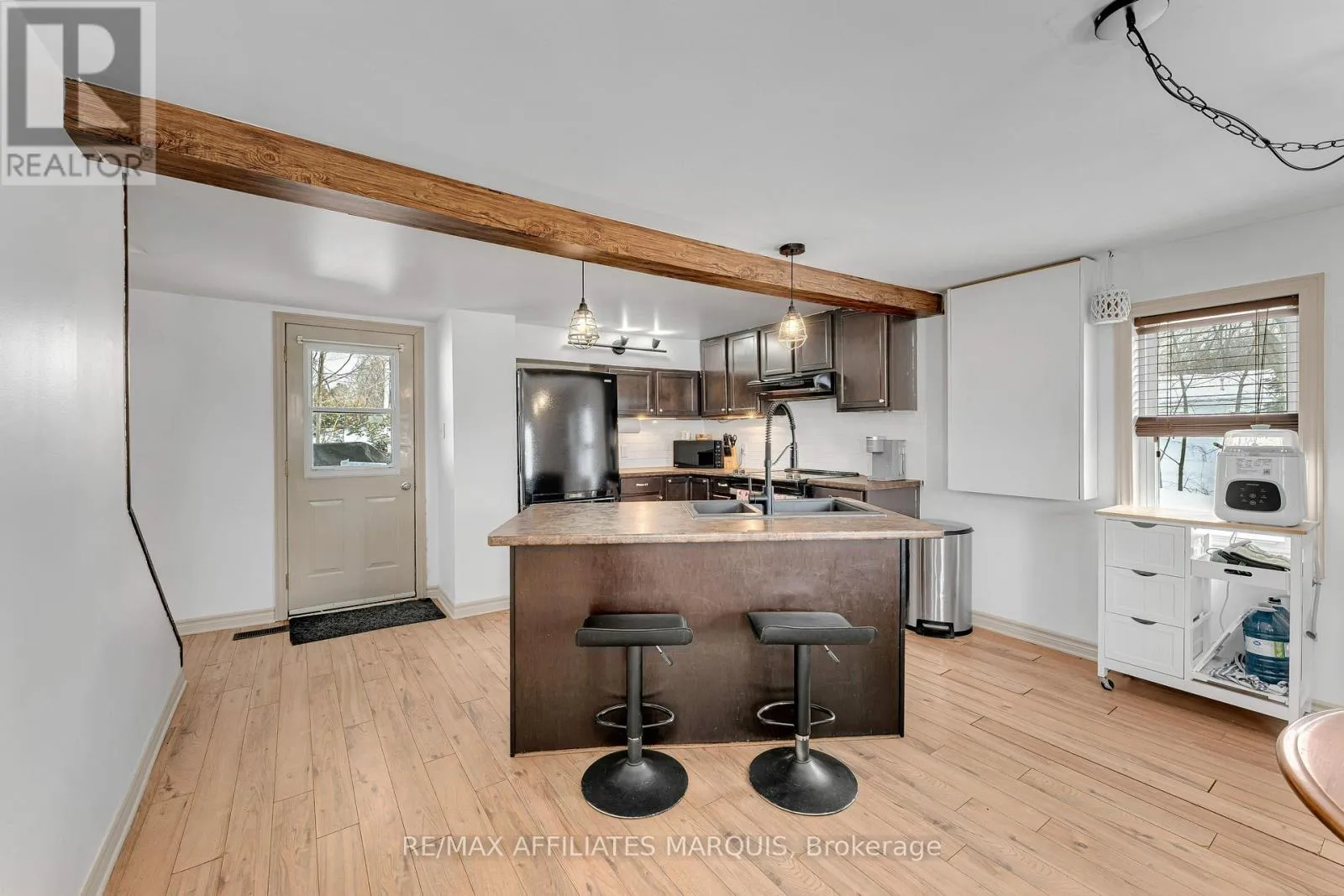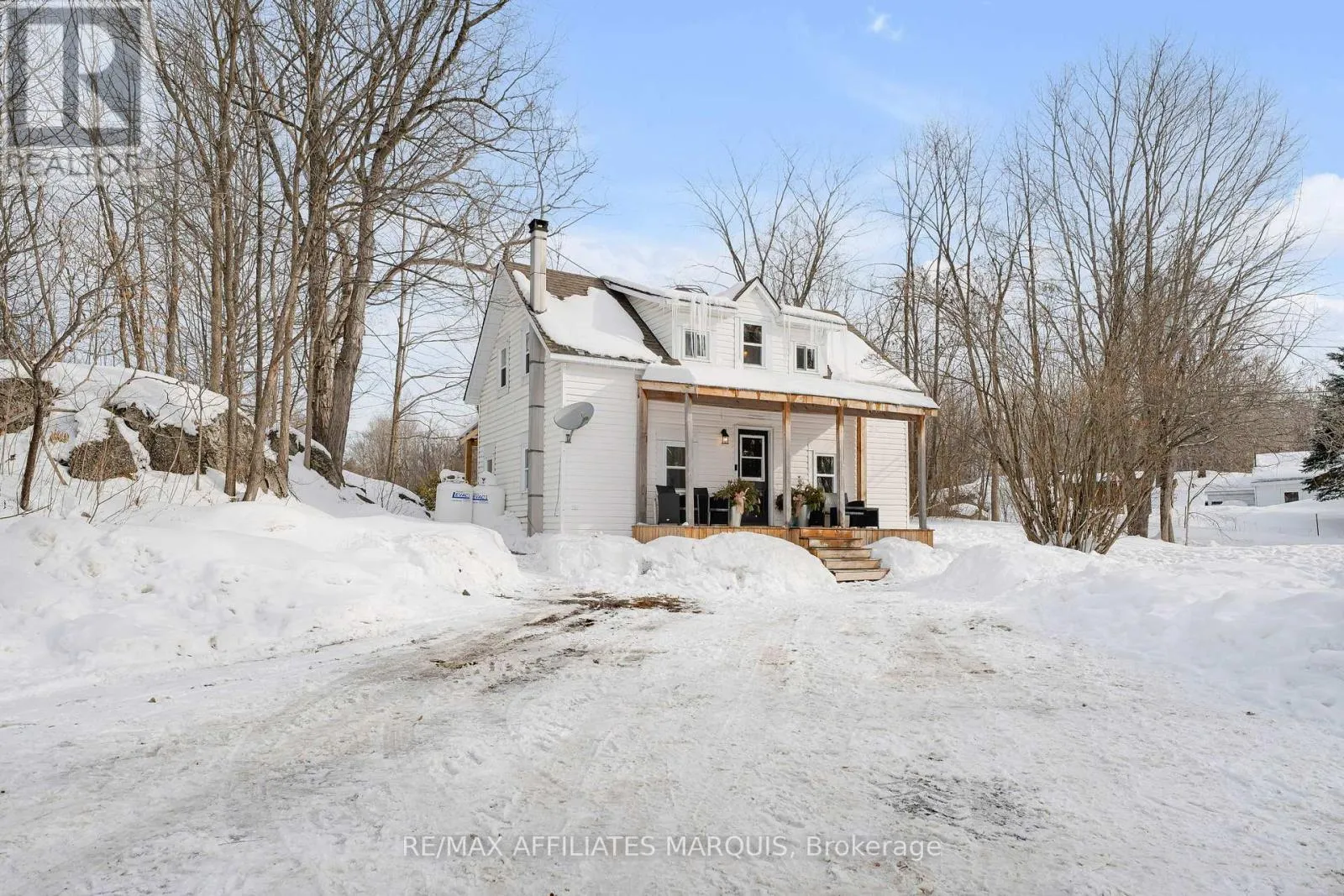 Cross Streets: 38. ** Directions: Heading North on Highway 7 turn right onto Highway 38, the property will be on the left. This charming 1 1/2 story home is nestled on just over an acre in the heart of Sharbot Lake. Ideal for first time buyers, retirees, or anyone seeking a quieter pace of life, this property delivers exceptional value. The main level features a bright open concept living and dining area that feels both welcoming and functional. The kitchen is complete with a central island, ample cabinetry and convenient access to the backyard perfect for everyday living and entertaining. The covered front and rear porches extend your living space outdoors creating inviting spaces to relax. Upstairs you'll find two comfortable bedrooms and a full bathroom with conveniently located laundry. The 26'10" x 19'5" detached garage provides excellent space for vehicles, storage, hobbies or a workshop. The expansive yard offers plenty of room for gardening, outdoor activities or simply enjoying the privacy and tranquility of country living. This property is located just minutes from the vibrant community of Sharbot Lake offering a local skating rink, various sports fields, a daycare, and public beach. The K&P Trail passes through the community, perfect for hiking, snowmobiling, and year-round outdoor recreation. This home is equipped with a new furnace and central air conditioning (2024) offering added peace of mind for its new owners. A wonderful opportunity to own a warm inviting home in a vibrant lakeside community surrounded by recreation and natural beauty. (id:27476)