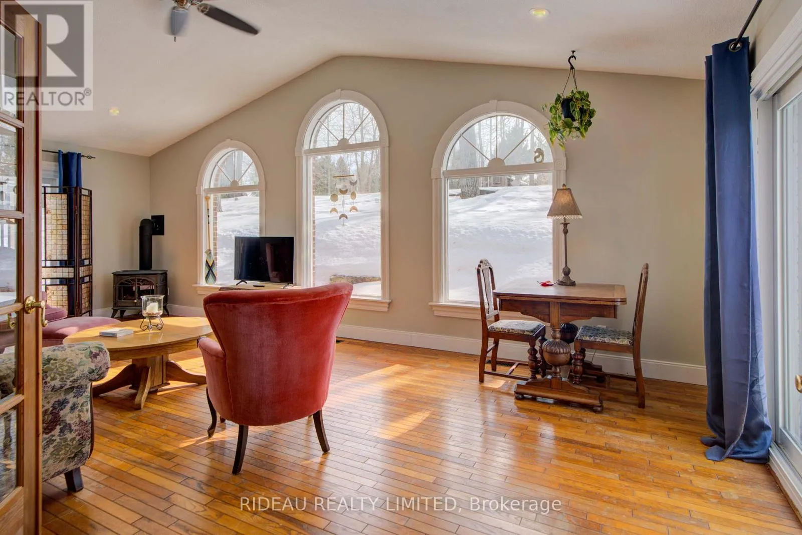 Cross Streets: Perth Rd and Rutledge. ** Directions: From Perth Road, turn on Rutledge Rd, follow for 1.7 km. Turn on to Rickards rd and follow for 250 meters and the property is on the left. Welcome to 1445 Rickards Road. Homes like this don't come around often. Set on just under an acre of beautifully treed land, this rambling ranch-style bungalow offers approximately 1924 sq ft of main-floor living space, plus a bright finished basement, delivering the perfect blend of comfort, space, and functionality. Thoughtfully designed, the home features three spacious bedrooms and two full bathrooms. The inviting living room is filled with natural light from a beautiful bay window and anchored by a cozy wood-burning fireplace, creating a warm and welcoming space to unwind. It flows seamlessly into the kitchen and dining area, offering an effortless layout for everyday living and entertaining.The kitchen showcases refinished oak cabinetry (2023) and stainless steel appliances. At the back of the home, the family room truly stands out. Vaulted ceilings and floor-to-ceiling windows flood the space with natural light, while a propane fireplace adds warmth and character... a space designed for quiet mornings, relaxed evenings, and everything in between. The finished basement provides approximately 1747ft of additional bright and versatile space, ideal for a family room, home office, gym, or guest retreat. Outside, the two-car attached garage and garden shed provide practical storage and convenience. Surrounded by mature maple trees, the property offers privacy, shade, and a peaceful country setting that feels like a true escape. Ideally located between Inverary and Sydenham on a quiet dead-end road, it delivers the serenity of rural living while remaining just 15 minutes to Kingston and Highway 401. With key updates already taken care of, including a new propane furnace installed in 2023, this home offers added comfort and peace of mind. If you've been dreaming of leaving the hustle behind without sacrificing convenience and a home with space, warmth, and a peaceful setting... This is a property that feels right from the moment you arrive. (id:27476)