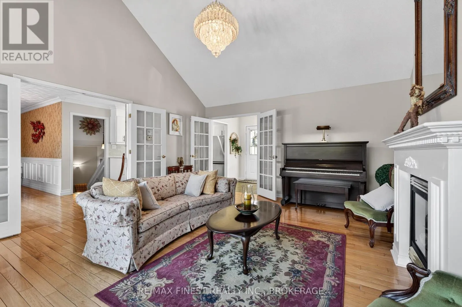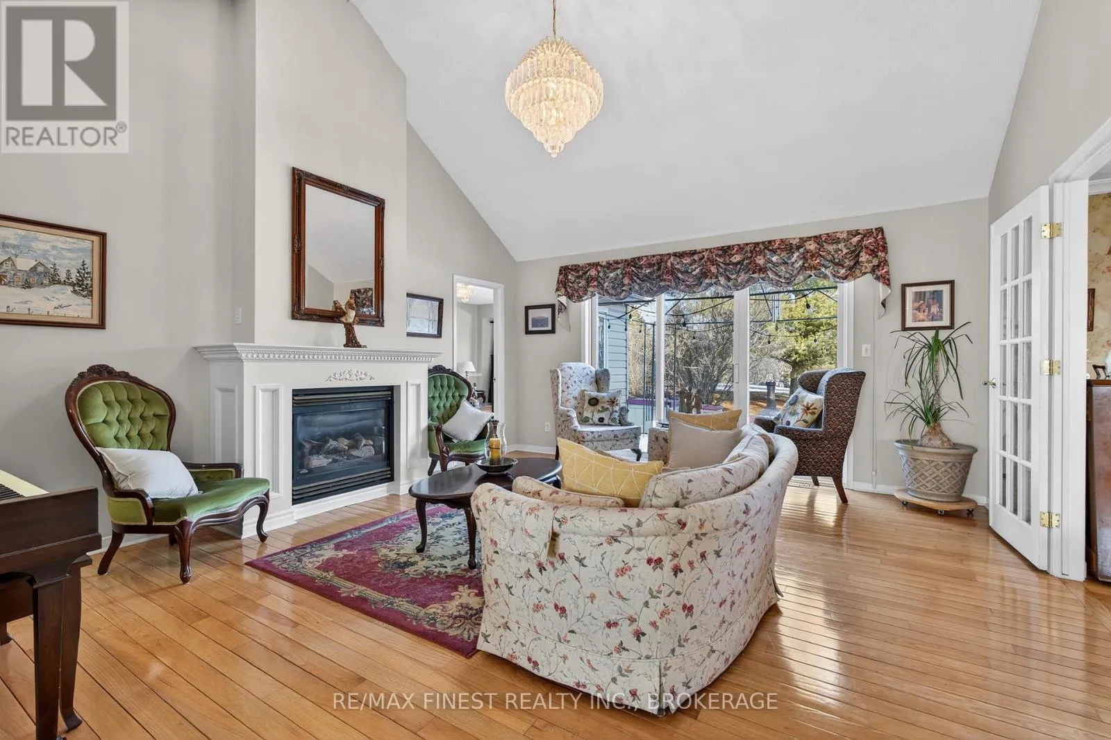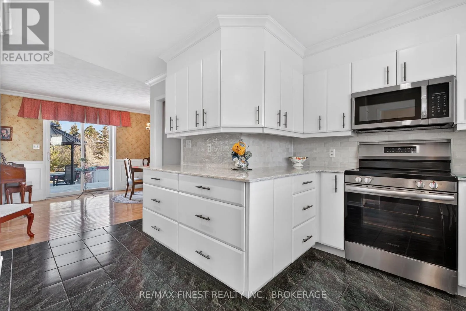 Cross Streets: Bedford Rd. ** Directions: Bedford Rd to Deer Run Way. Great Neighbourhood perfect for young families and retirees alike! This updated 1560sf bungalow sits on a private1.2-acre lot in Victorian Lake Estates near Sydenham Lake. With over 2840sf of finished space, it offers a new custom kitchen with quartz counters, 3 bedrooms (master bedroom with ensuite, patio door and bay window), a vaulted great room with patio door and propane fireplace, separate formal dining room with another patio door. Hardwood and ceramic floors throughout most of the main floor. The lower level features an office/den/bedroom and a spacious rec room with electric fireplace, and large utility room with ample storage. Extras include: a400sf detached insulated and heated garage/workshop; 1-year-old propane furnace; HRV; UV/RO water treatment; metal roof; large rear deck with gazebos; elevated front porch; beautifully-landscaped grounds. Close proximity to all amenities, the Cataraqui Trail, Sydenham Lake and just 18 minutes north of Kingston/Hwy 401. (id:27476)