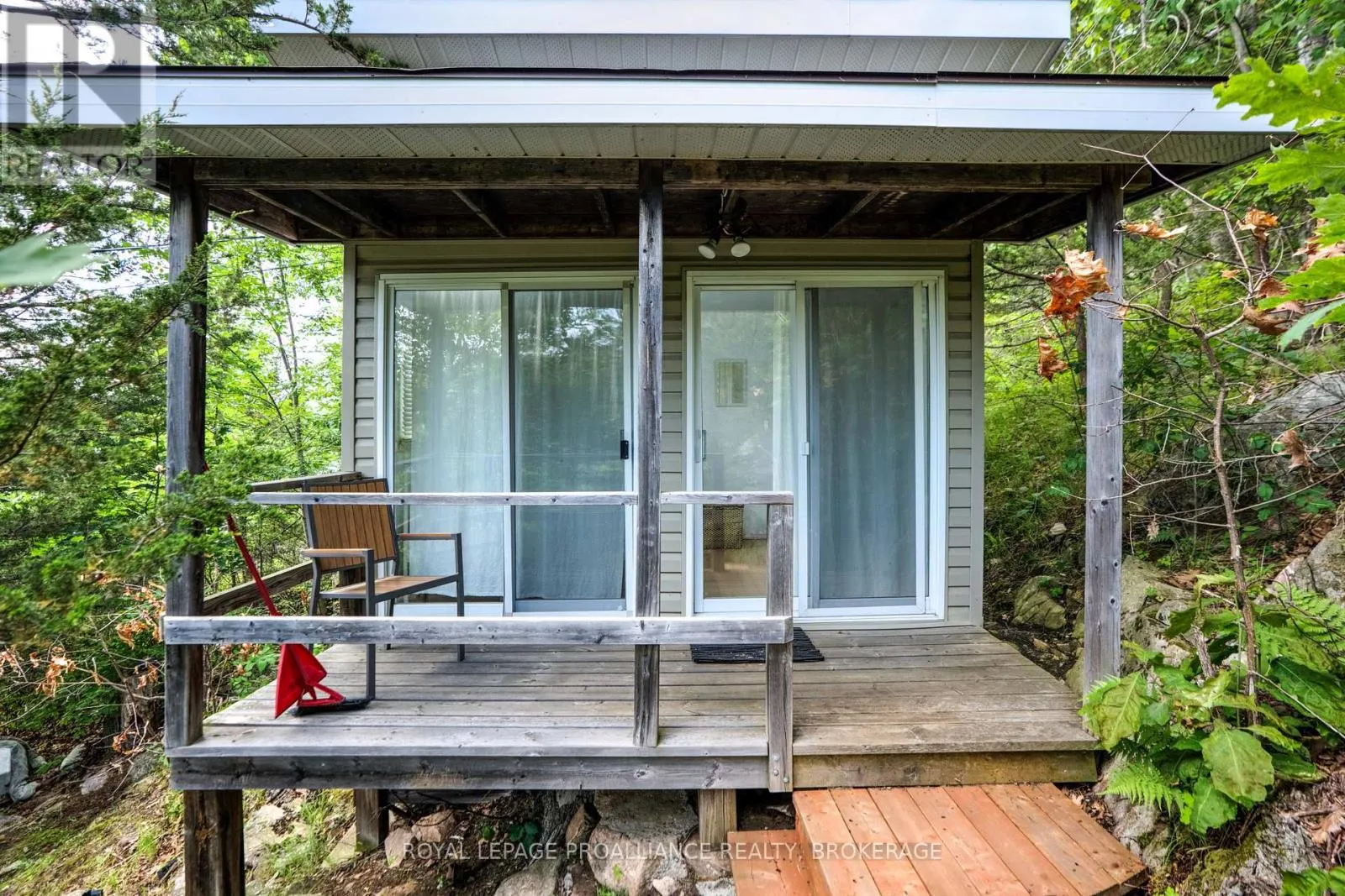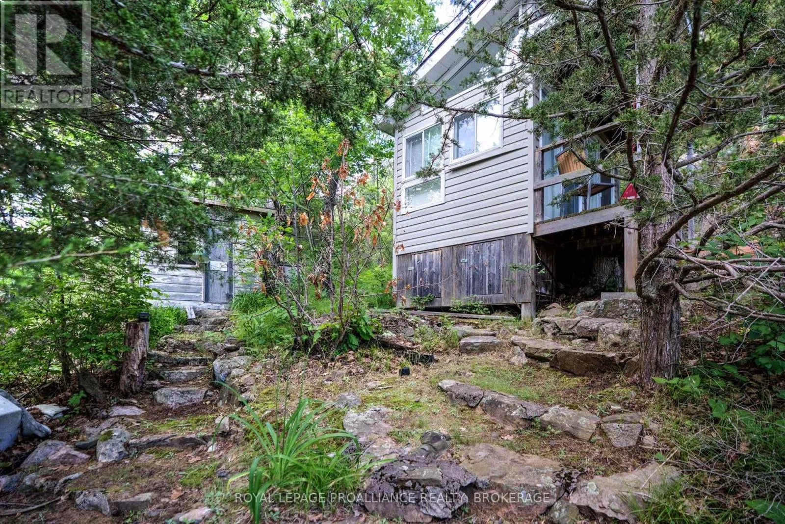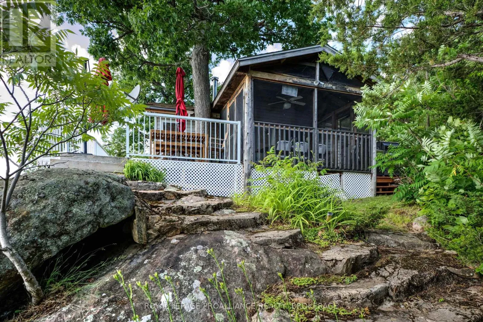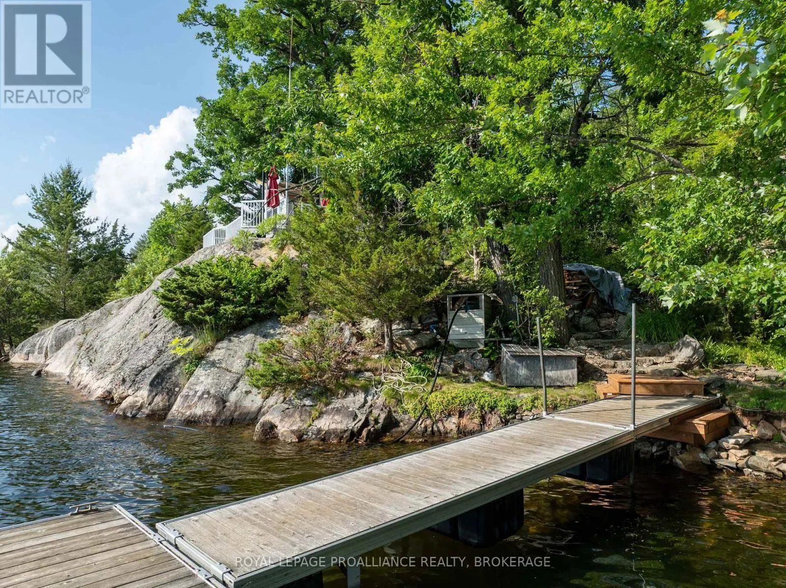 Cross Streets: Pine Shores Lane / Bobs Lake. ** Directions: Hwy. 38 to Bradshaw Rd. follow right to Pine Shores Lane go to end of road, park and take boat. Private waterfront retreat located on Bobs Lake. This 2-bedroom cottage sits perched on a large Canadian Shield rock that overlooks deep, clean waterfrontage. The floor plan of this cottage is easy and simple - ideal for a cottage. There is a kitchen with an open living room area, a 3-pc bathroom, attached screened-in deck and a small loft with a pulldown set of stairs. This cottage has a large deck that overlooks the lake and is serviced by a lakewater system, grey water pit and a composting toilet. A few steps down from the deck and down the stone stairs and pathway is a large dock for your boat and for just hanging out at the water or swimming. Behind the cottage and just up the hill is a cute and cozy bunkie for family and guests. The cottage is being sold fully furnished inside and out, including a couple of kayaks. Start enjoying cottage life this summer! Enjoy a warm breeze while sitting on your deck with unrestricted views over the lake and take in spectacular nightly sunsets. Convenient boat access is available from a deeded boat launch and lane. Bobs Lake is a beautiful and large lake with varied topography and plenty of water to explore! Westport or Sharbot Lake are both just a short distance away. Property is accessed by boat only. No road access. (id:27476)