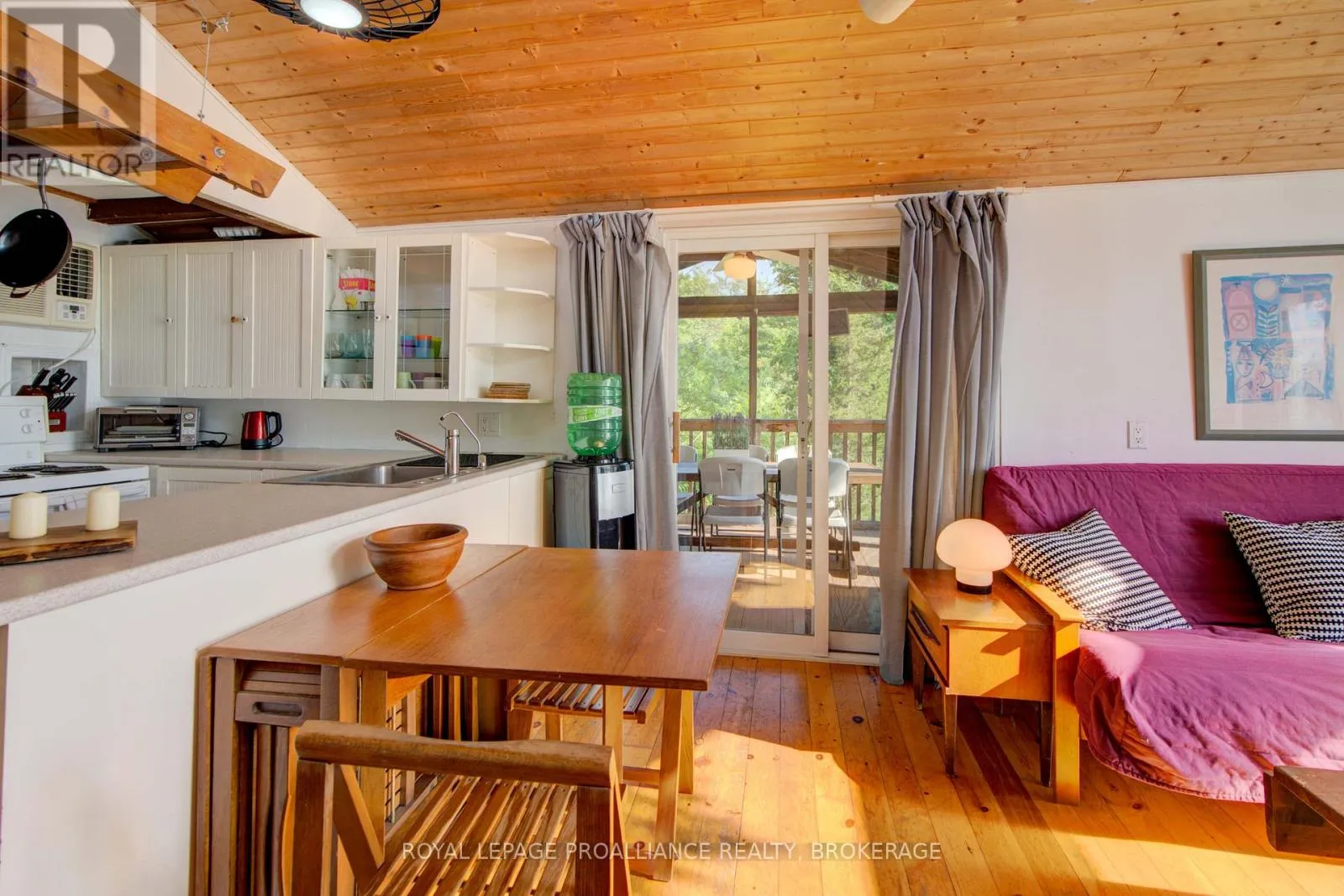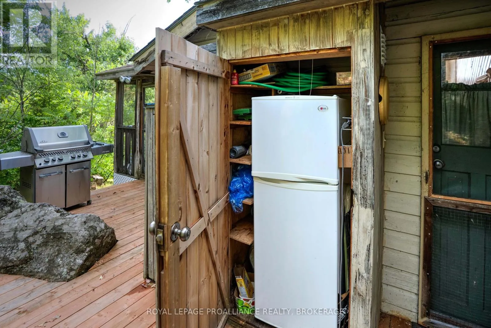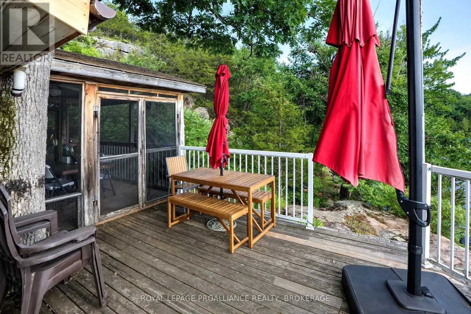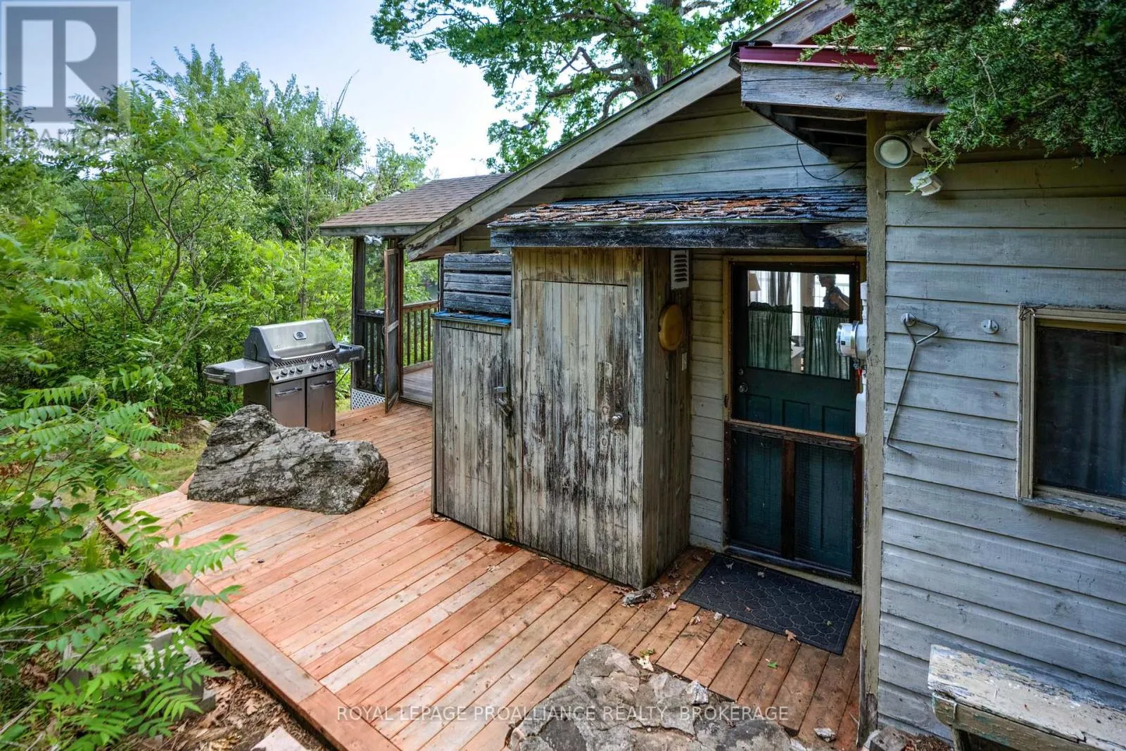 Cross Streets: Pine Shores Lane / Bobs Lake. ** Directions: Hwy. 38 to Bradshaw Rd. follow right to Pine Shores Lane go to end of road, park and take boat. Private waterfront retreat located on Bobs Lake. This 2-bedroom cottage sits perched on a large Canadian Shield rock that overlooks deep, clean waterfrontage. The floor plan of this cottage is easy and simple - ideal for a cottage. There is a kitchen with an open living room area, a 3-pc bathroom, attached screened-in deck and a small loft with a pulldown set of stairs. This cottage has a large deck that overlooks the lake and is serviced by a lakewater system, grey water pit and a composting toilet. A few steps down from the deck and down the stone stairs and pathway is a large dock for your boat and for just hanging out at the water or swimming. Behind the cottage and just up the hill is a cute and cozy bunkie for family and guests. The cottage is being sold fully furnished inside and out, including a couple of kayaks. Start enjoying cottage life this summer! Enjoy a warm breeze while sitting on your deck with unrestricted views over the lake and take in spectacular nightly sunsets. Convenient boat access is available from a deeded boat launch and lane. Bobs Lake is a beautiful and large lake with varied topography and plenty of water to explore! Westport or Sharbot Lake are both just a short distance away. Property is accessed by boat only. No road access. (id:27476)