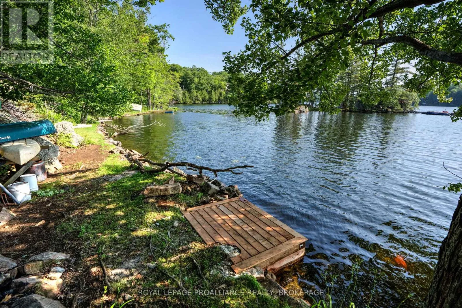 Cross Streets: Pine Shores Lane and Bobs Lake. ** Directions: Hwy. 38 to Bradshaw Road, follow to right on Pine Shores Lane. Waterfront lot with beautiful westerly views on Bobs Lake. This water access lot offers approximately 130 feet of water frontage and 0.7 acres of land. The property features level shoreline with deep, clean water frontage that is ideal for swimming and docking your boat. The lot rises steeply from the shore and transitions into a rugged, classic Canadian Shield landscape. The steep terrain does give some building challenges but the elevated rear portion of the lot provides a picturesque setting that could accommodate a cottage or serve as an exceptional private camping retreat. Convenient boat access is available from a deeded boat launch and lane. Bobs Lake is one of the largest lakes in our area with many islands and inlets to explore and great fishing, boating and swimming opportunities. This property offers a rare opportunity to own a stunning slice of Canadian Shield waterfront in Eastern Ontario cottage country. This property can be sold together with the adjacent cottage or after the sale of the cottage. Property accessed by boat. (id:27476)