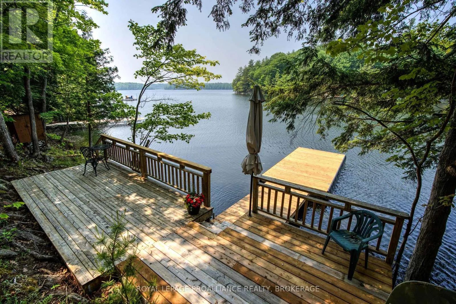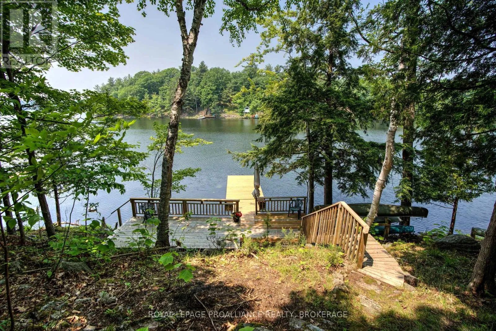 Cross Streets: Whippoorwill Lane / Cliff View Lane. ** Directions: Massassauga Road, right on Seapoint Lane, Righton Cliff View Lane onto Whipoorwill. Classic cottage on Buck Lake! This property is located on the south branch of Buck Lake. It sits elevated from the lake, offering great waterfrontage and western exposure. This cozy cottage has three bedrooms, a 3-pc bathroom, a kitchen with an attached dining area, a living room, and a screened-in sunroom. Upgrades include a large deck with aluminum railings, a new steel roof, freshly painted interior and exterior and a new floating dock and ramp. The cottage rests on concrete block piers and includes a full septic system, a lake water system and an outdoor shower. This cottage comes with 25 acres of land, which includes the acreage behind the cottage as well as road allowances and rights-of-way. Buck Lake is a deep, Canadian Shield lake with Frontenac Provincial Park bordering its western shore. Located just 20minutes from Westport for easy access to all amenities. (id:27476)