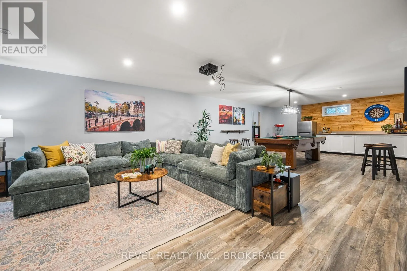 Cross Streets: Highway 15. ** Directions: Highway 15 to Sunbury Road. Welcome to 2089 Sunbury Road! A beautifully renovated bungalow that blends timeless country charm with modern sophistication. Set on a peaceful 3.25 acre lot just 20 minutes to Kingston, this home has been thoughtfully updated from top to bottom to deliver exceptional comfort and style. Inside, you'll find a bright and inviting main level featuring upgraded flooring, contemporary lighting, and a custom kitchen with granite countertops, stainless steel appliances, and a spacious island - perfect for gatherings with family and friends. The living and dining areas flow seamlessly to the outdoor space, creating an ideal atmosphere for everyday living and entertaining. The finished lower level expands the living area with a large recreation space ideal for game nights, movie marathons, or hosting friends for a round of pool. A full bathroom and additional bedroom provide flexibility for guests or extended family. Outside, the property offers a beautifully landscaped yard, mature trees, and a detached garage - all set in the sought-after community of Sunbury, where you can enjoy the tranquility of country life with the convenience of being not far from shopping, schools, and hospitals. (id:27476)