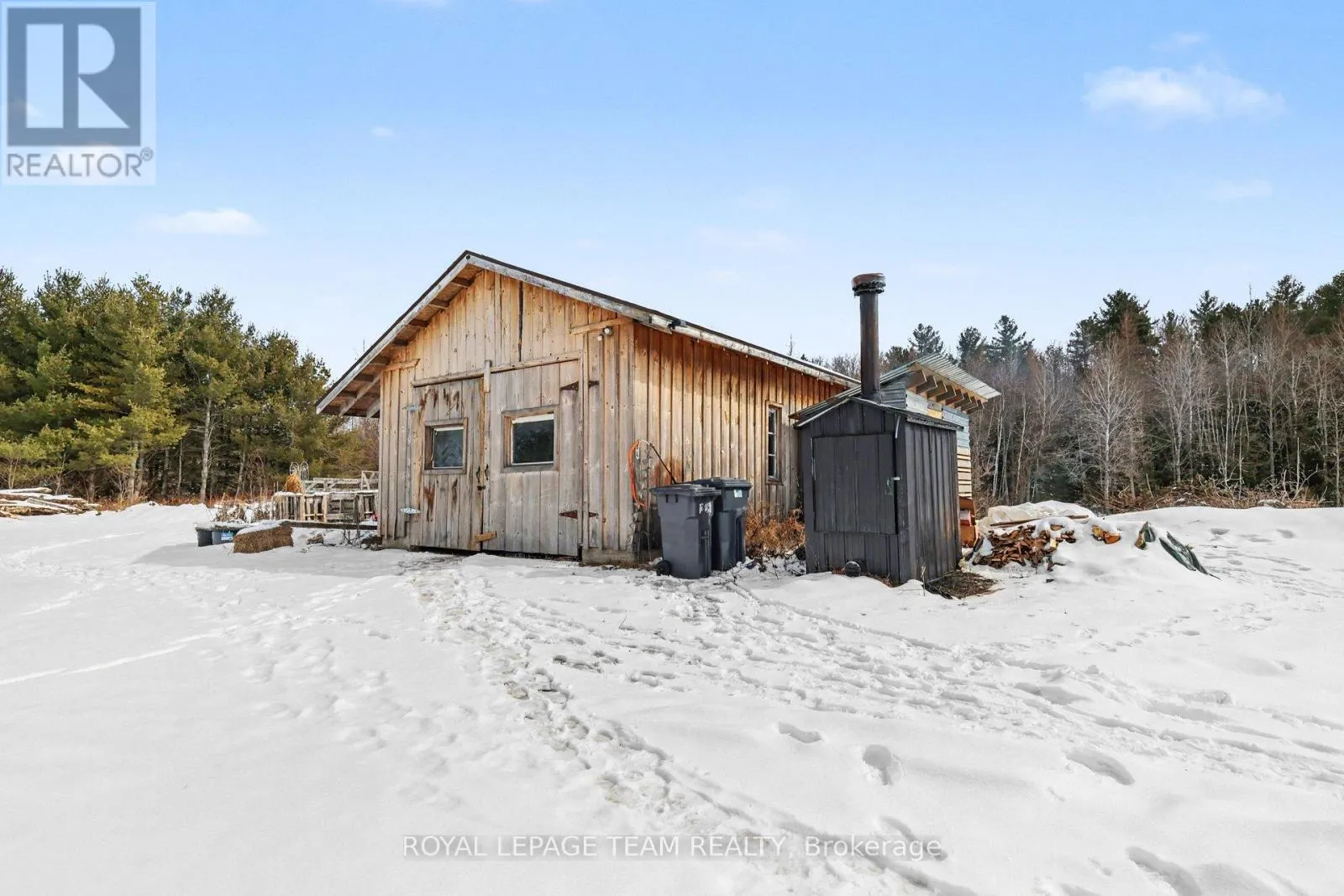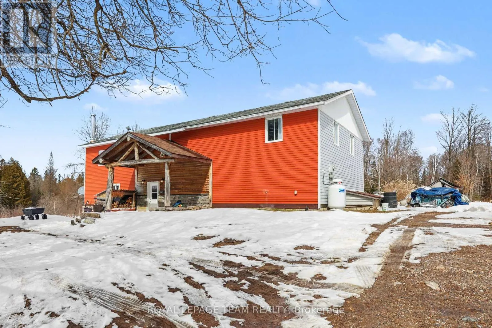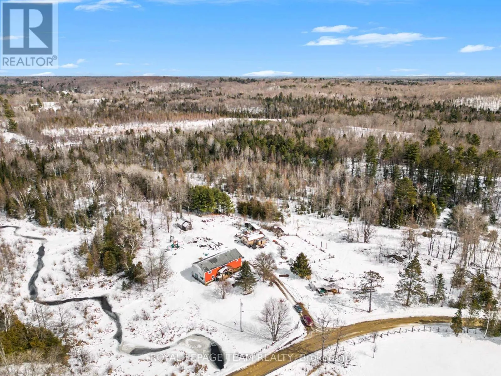 Cross Streets: Seouls Corner Lane & Bell Line Rd. ** Directions: From Kingston, North on Road 38, Left on Hwy 7, Right on 509 Road, Left on Bell Line Road to #4237. Welcome to 4237 Bell Line Road, a country lover's dream and the perfect setting for those seeking a peaceful, self-sufficient lifestyle with HOBBY FARM potential. Ideally located on a QUIET ROAD yet only 5 minutes from Highway 7, this beautiful property offers the best of rural living with convenient access to nearby amenities. Set on 13.6 ACRES of rolling hills and mature forest, the property features stunning rock outcroppings, a private pond, and a GENTLE CREEK flowing alongside the land. Enjoy collecting fresh eggs from the chicken coop or harvesting vegetables from your private garden, while nearby RECREATIONAL TRAILS offer endless opportunities for year-round outdoor enjoyment. The home offers 2400+ sq ft as per listing floor plan, 4 BEDROOMS and 2 FULL BATHROOMS, second level laundry room with deck access, plus a LARGE DEN used as an office and recreation space on the second level. The bright, OPEN MAIN FLOOR features a welcoming country kitchen, dining area with yard access, and a cozy living room with wood stove. A full bathroom and utility room/basement complete the main level. Many areas of the home have been freshly painted with new flooring installed on stairs and den as well as in the laundry room. The home can be heated with an exterior WOOD FURNACE, with wood easily harvested from the property; an additional PROPANE FURNACE was installed in 2026. Outside you'll find a LARGE GARAGE, utility shed, a two storey cow/feed barn, and two chicken coops. School bus service stops right at the driveway, and the road is prioritized for winter maintenance as part of the bus route. Located just 10 MINUTES FROM SHARBOT LAKE, where you'll find grocery, pharmacy, bank, marina, restaurants, brewery, LCBO, schools, parks, and a beautiful public beach. If you are looking for space, privacy, and a connection to nature without sacrificing convenience, 4237 Bell Line Road offers a rare opportunity to enjoy the very best of country living. (id:27476)