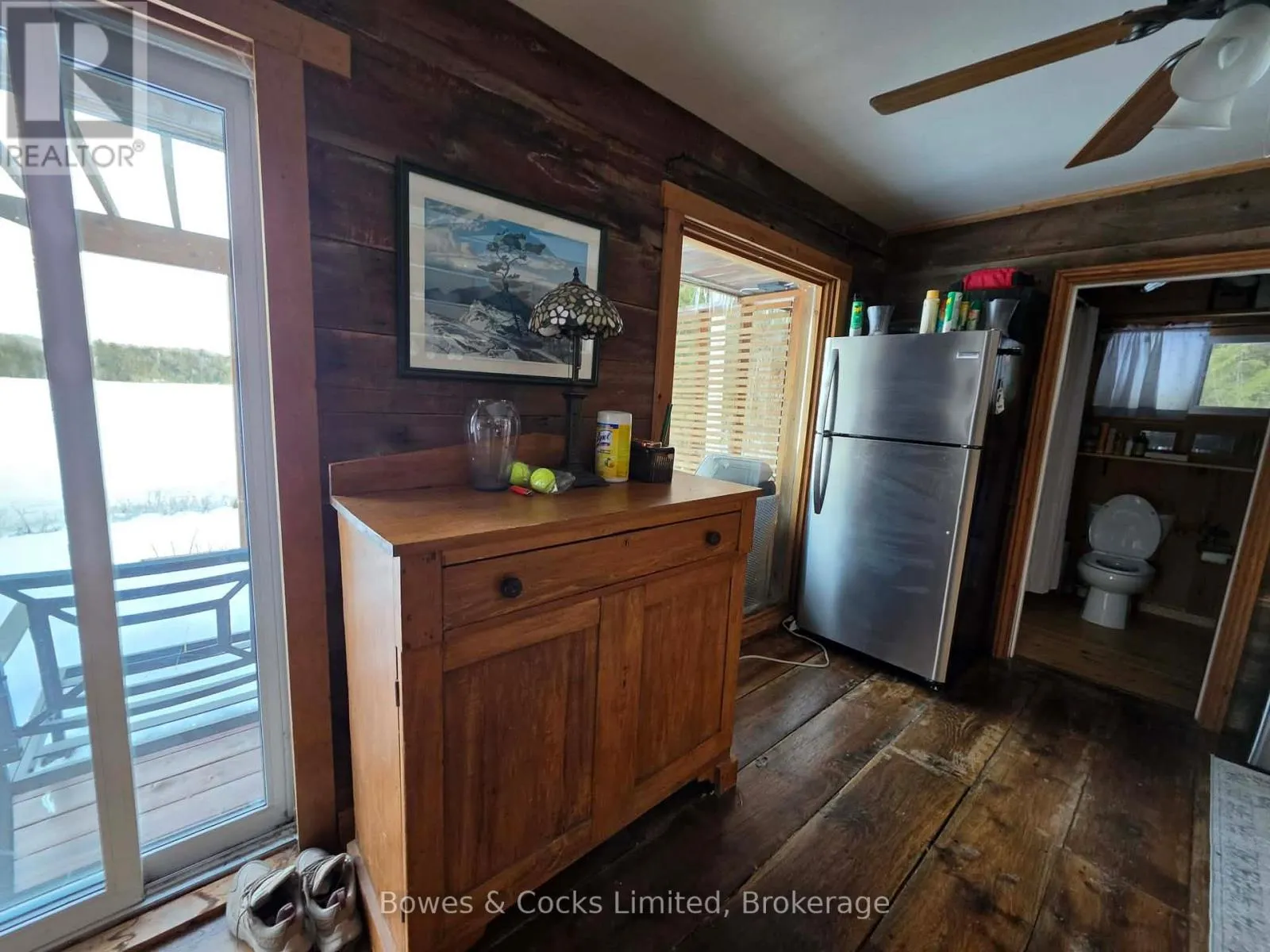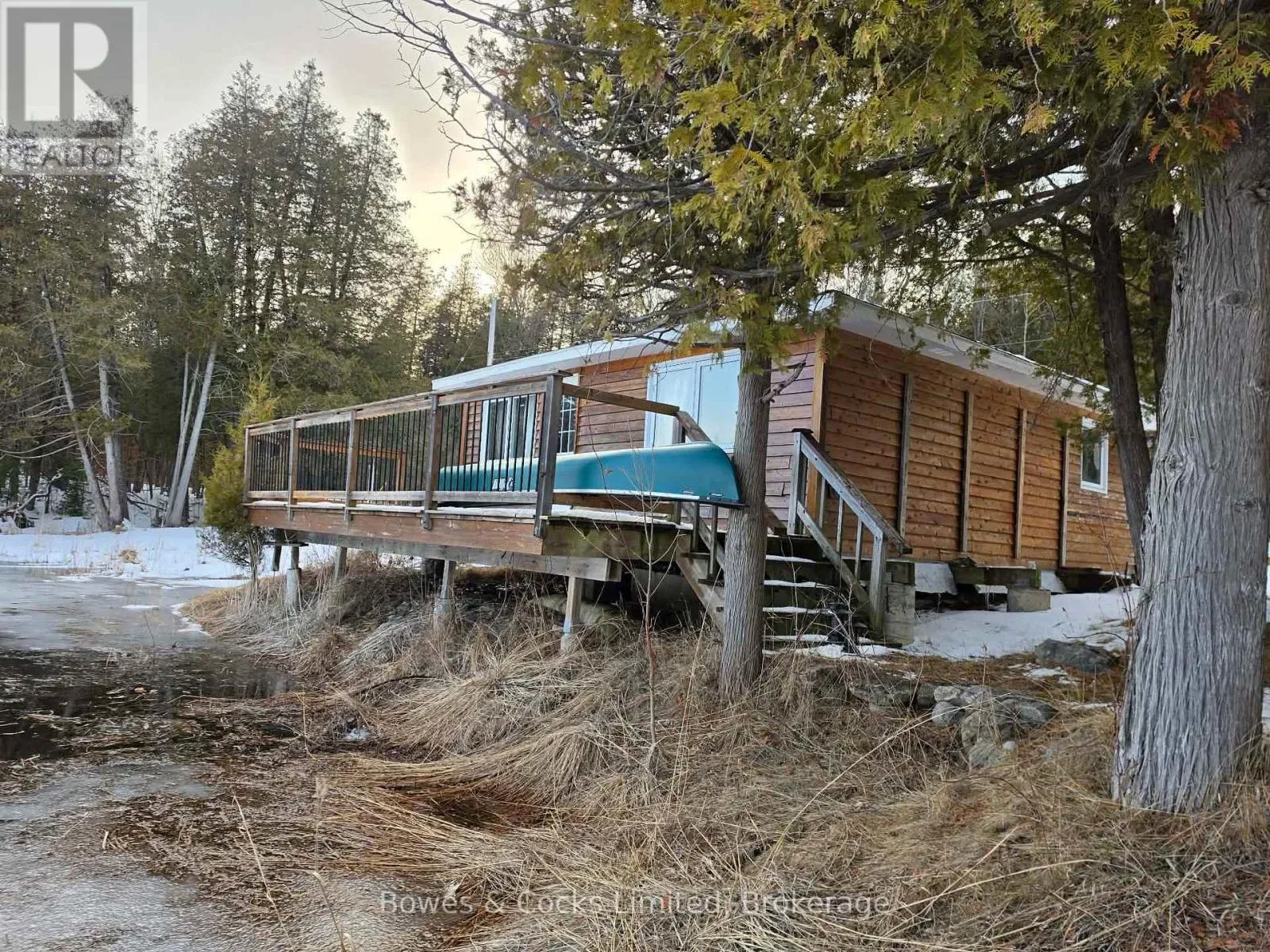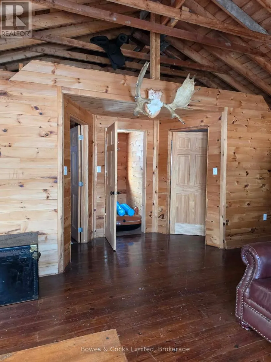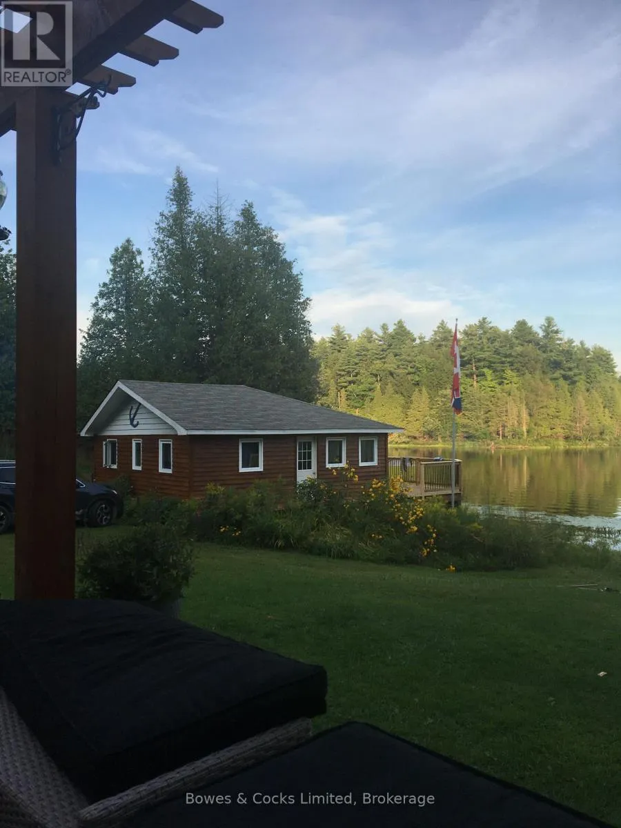 From Highway 7, go south on West Gate Road, turn left on Elm Tree Road, turn right on Bull Lake Road, turn left on Jordan Lane, turn right on Hummingbird Lane. The property is at the end of the lane. Welcome to 1022 Hummingbird Lane-an extraordinary retreat set on over 21 acres of complete privacy along the shores of beautiful Bull Lake. This rare offering blends timeless rustic character with modern comfort, creating the ultimate haven for nature lovers and outdoor enthusiasts. The main cottage exudes charm with its open-to-the-rafters design, reclaimed walnut flooring, and stained hemlock walls. Inside, you'll find a bright and spacious living/dining area, a well-appointed kitchen, two inviting bedrooms, and a full bathroom-perfectly suited for relaxed lakeside living. Complementing the main cottage is a stunning boathouse finished entirely in white pine, featuring two additional bedrooms and a generous gathering space. Step outside onto the expansive waterside deck and take in the sweeping lake views-an ideal setting for hosting family and friends. With over 564 feet of pristine frontage, endless recreational opportunities await. Spend your days swimming, boating, fishing, or exploring the extensive acreage. From Bull Lake, you can easily venture into Horseshoe, Buck, and Crotch Lakes for even more adventure. Mornings begin with the peaceful sounds of nature and coffee overlooking the water; evenings end with unmatched serenity and star-filled skies. Offering end-of-the-road seclusion with no neighbours in sight, this property is perfectly suited as a family compound or an exceptional investment opportunity with potential for severance. A truly unique chance to own your own private slice of paradise. (id:27476)
