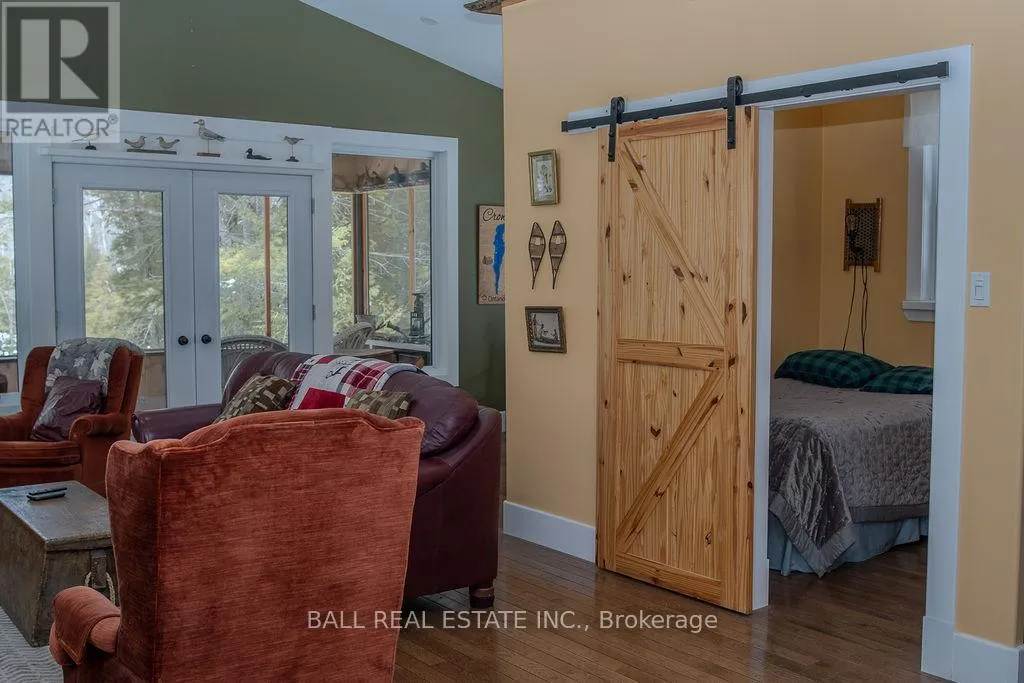 Cross Streets: Ardoch Rd. ** Directions: Hwy 41 to Road 506, east to Ardoch, south to Smith Rd. Tucked away on the pristine shores of Farm Lake in the sought-after Land O'Lakes region, this exceptional off-grid retreat offers the perfect blend of privacy, nature, and comfort. Boasting an impressive 818 feet of waterfront and 5.5 acres of beautifully treed land, this property is a rare opportunity to own a true northern escape. This charming 2-bedroom home is designed for relaxed lakeside living, featuring a spacious layout and a large screened-in porch ideal for enjoying peaceful mornings and breathtaking sunsets without the bugs. Whether you're looking for a seasonal getaway or a year-round adventure, this property delivers tranquility in every direction. Adding incredible value is the expansive 50' x 30' heated garage/workshop, perfect for hobbyists, storage, or all your recreational equipment. A separate guest bunkie provides additional space for family and friends, making it easy to host and create lasting memories. Surrounded by nature and offering unmatched waterfront, this off-grid haven is the ultimate retreat for those seeking serenity, space, and a connection to the outdoors. Don't miss your chance to experience the beauty and freedom of life on Farm Lake. Seller also owns a separate 20 acre parcel located across an unopened road allowance which is being offered for sale concurrently MLS X12927718 (id:27476)