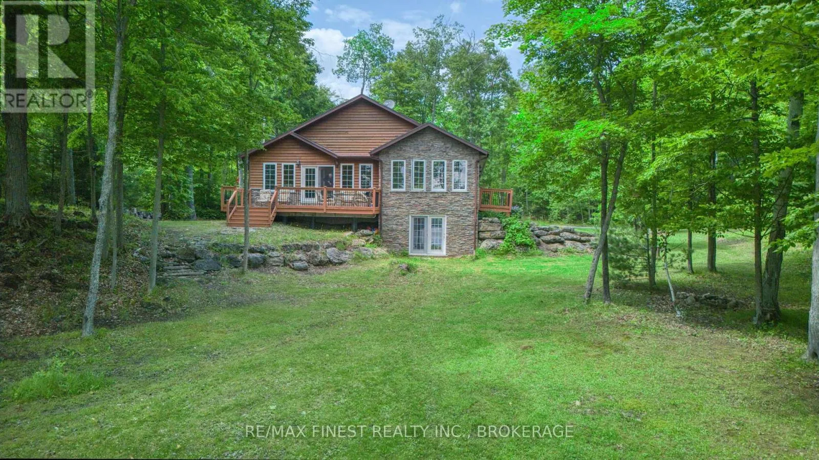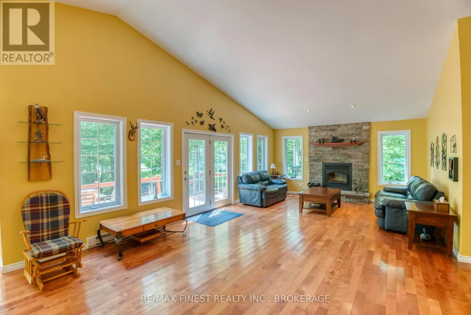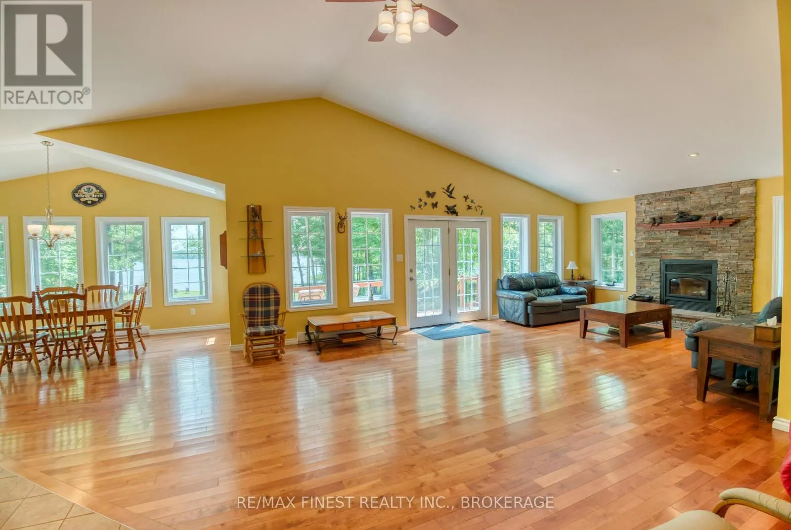 Cross Streets: Crow Lake Road and Bolingbrooke Road. ** Directions: Highway 38 to Crow Lake road to number 855, 1st property you come to. Welcome to beautiful and unique waterfront offerings on Bobs Lake - where space, privacy, and true four-season living come together. Built in 2009, this well-designed home or cottage was made for year-round use, not just summer weekends. The open-concept main level features vaulted ceilings, a custom stone fireplace, and large windows that draw your attention straight to the lake. With four generously sized bedrooms and two full bathrooms all on one level, it's perfectly suited for hosting family and friends without compromise. The full walk-out basement is a blank canvas - whether you envision additional living space, a recreation area, or a private guest suite, the opportunity is already built in. Step outside and the property separates itself. Set on over 6 acres with an expansive, level lakeside lawn, this is the kind of land that's becoming increasingly hard to find. The shoreline stretches an incredible 960 feet, offering fantastic privacy, multiple waterfront settings, and endless potential to shape the property into exactly what you want it to be. South-facing views mean all-day sun across the water - from quiet morning coffees to long summer evenings at the shoreline. And this isn't just a summer escape. In warmer months, enjoy boating, swimming, and exploring one of the largest inland lakes in the region. When winter arrives, the setting transforms - perfect for snowmobiling, ice fishing, and quiet weekends by the fire. With easy, year-round access just off a municipal road, this is a property you can truly use in every season. Located between the villages of Sharbot Lake and Westport, you have convenience when you need it - and complete privacy when you don't. Opportunities like this - combining acreage, significant shoreline, and a newer build - are rare on Bobs Lake. (id:27476)