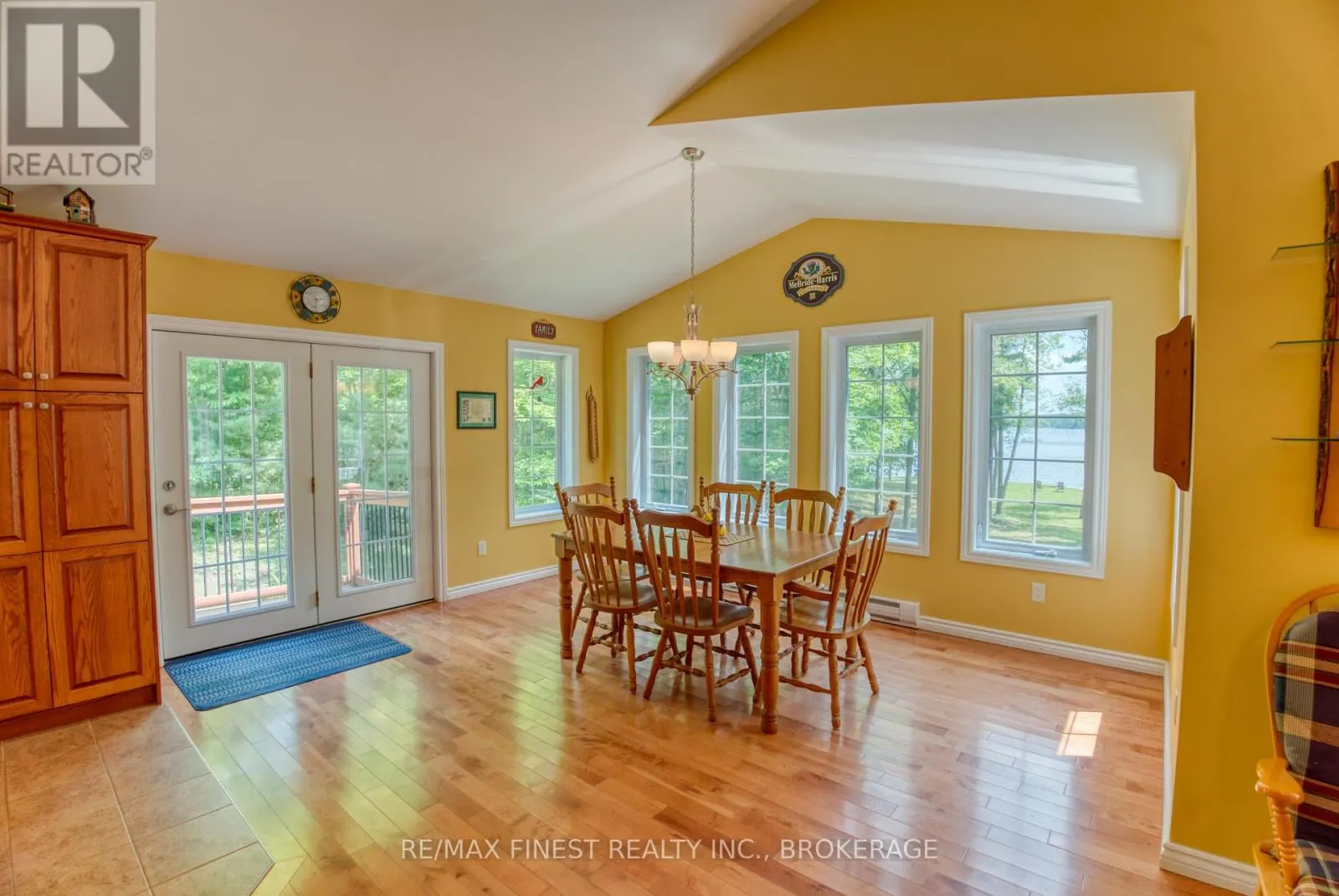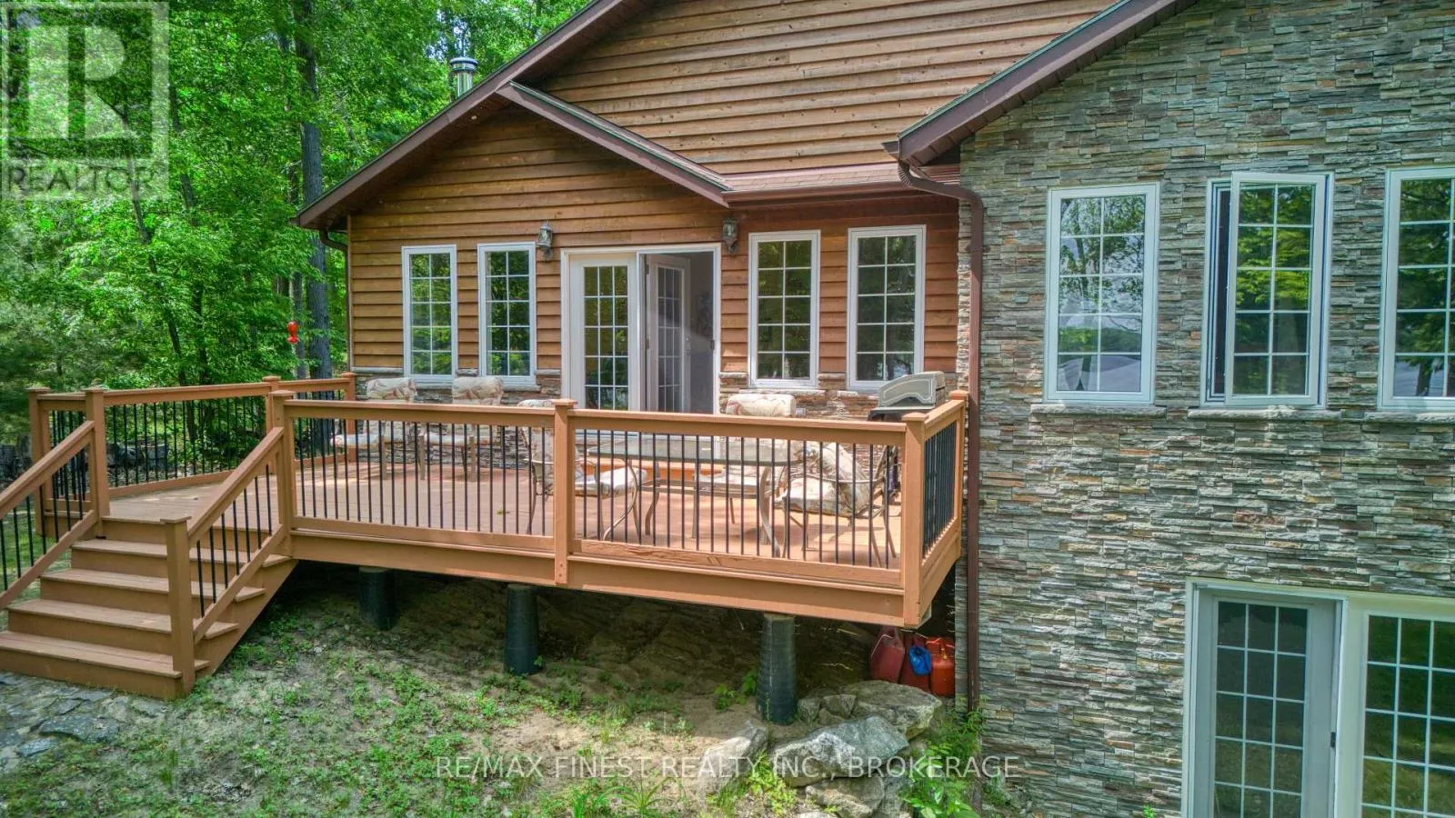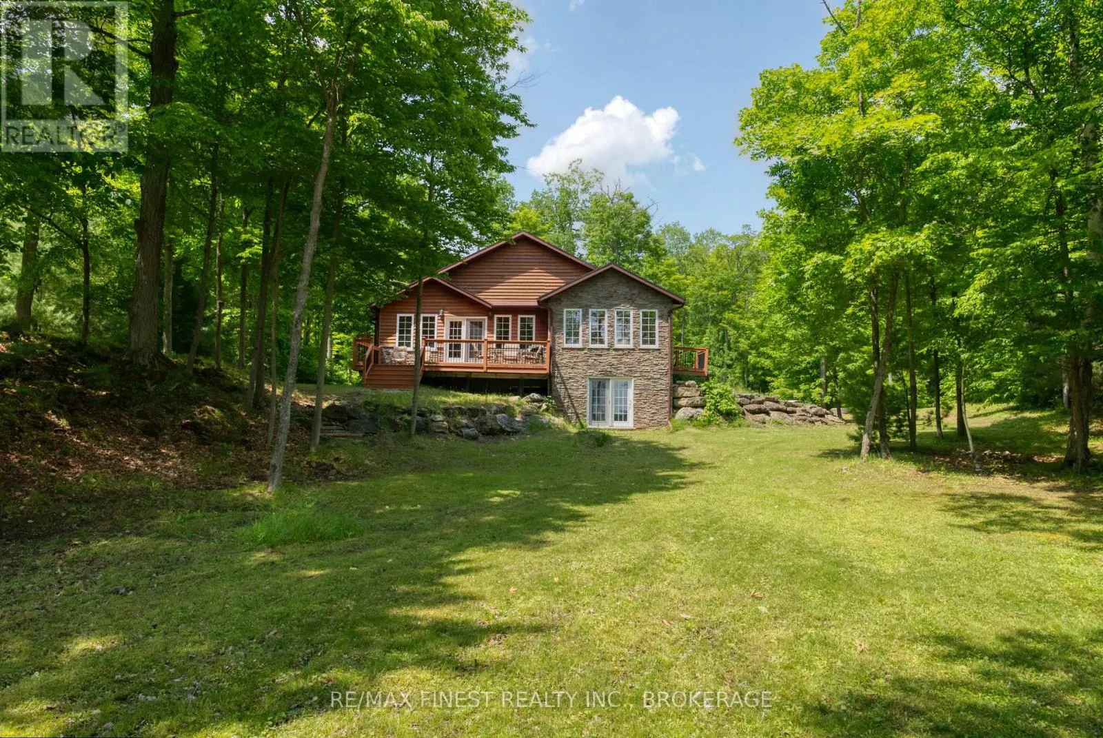 Cross Streets: Crow Lake Road and Bolingbrooke Road. ** Directions: Highway 38 to Crow Lake road to number 855, 1st property you come to. Welcome to beautiful and unique waterfront offerings on Bobs Lake - where space, privacy, and true four-season living come together. Built in 2009, this well-designed home or cottage was made for year-round use, not just summer weekends. The open-concept main level features vaulted ceilings, a custom stone fireplace, and large windows that draw your attention straight to the lake. With four generously sized bedrooms and two full bathrooms all on one level, it's perfectly suited for hosting family and friends without compromise. The full walk-out basement is a blank canvas - whether you envision additional living space, a recreation area, or a private guest suite, the opportunity is already built in. Step outside and the property separates itself. Set on over 6 acres with an expansive, level lakeside lawn, this is the kind of land that's becoming increasingly hard to find. The shoreline stretches an incredible 960 feet, offering fantastic privacy, multiple waterfront settings, and endless potential to shape the property into exactly what you want it to be. South-facing views mean all-day sun across the water - from quiet morning coffees to long summer evenings at the shoreline. And this isn't just a summer escape. In warmer months, enjoy boating, swimming, and exploring one of the largest inland lakes in the region. When winter arrives, the setting transforms - perfect for snowmobiling, ice fishing, and quiet weekends by the fire. With easy, year-round access just off a municipal road, this is a property you can truly use in every season. Located between the villages of Sharbot Lake and Westport, you have convenience when you need it - and complete privacy when you don't. Opportunities like this - combining acreage, significant shoreline, and a newer build - are rare on Bobs Lake. (id:27476)