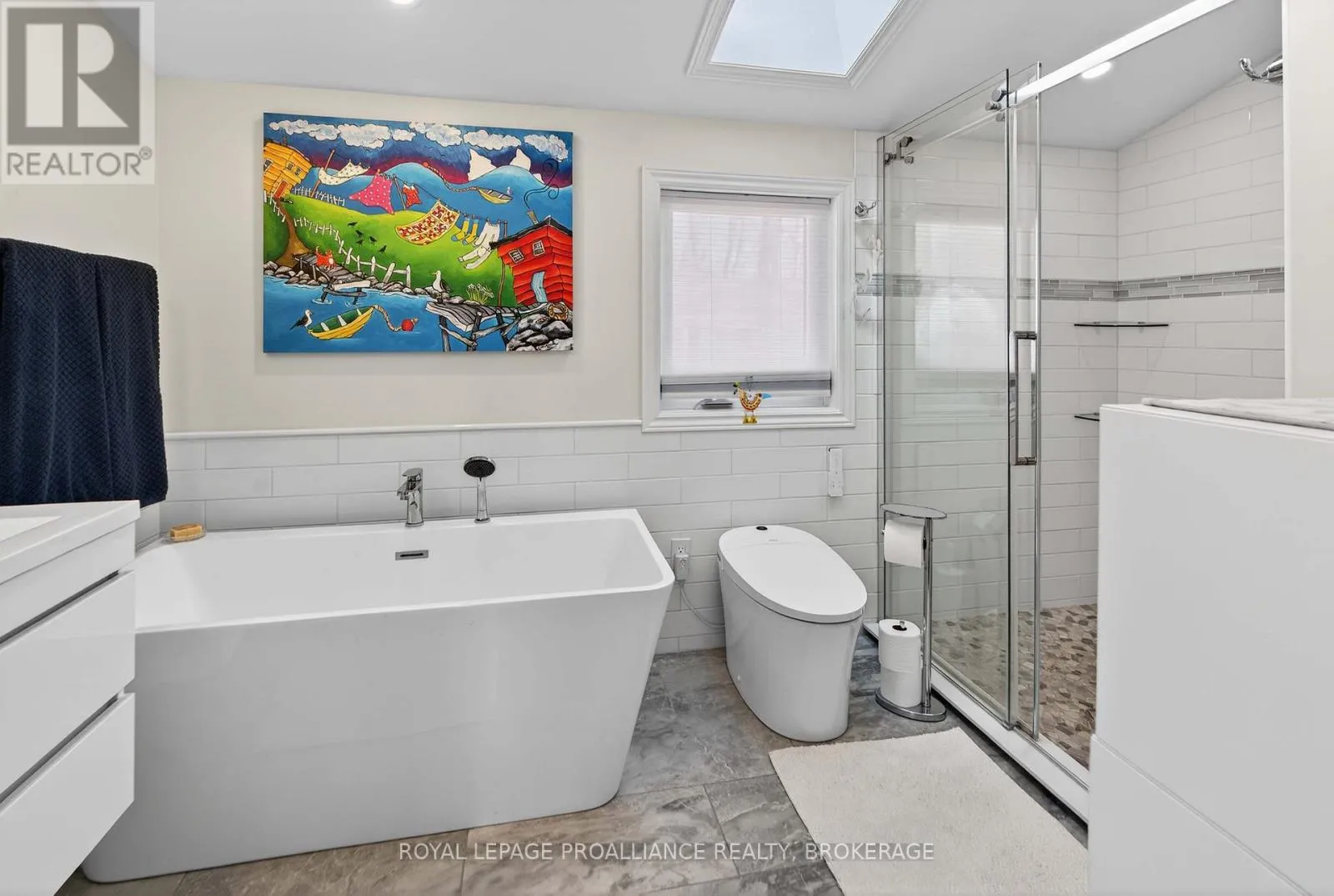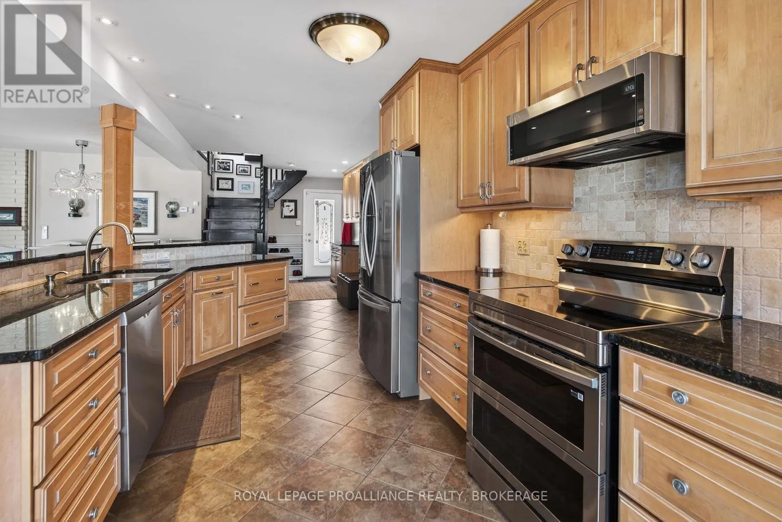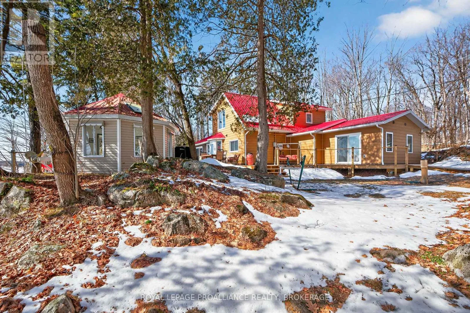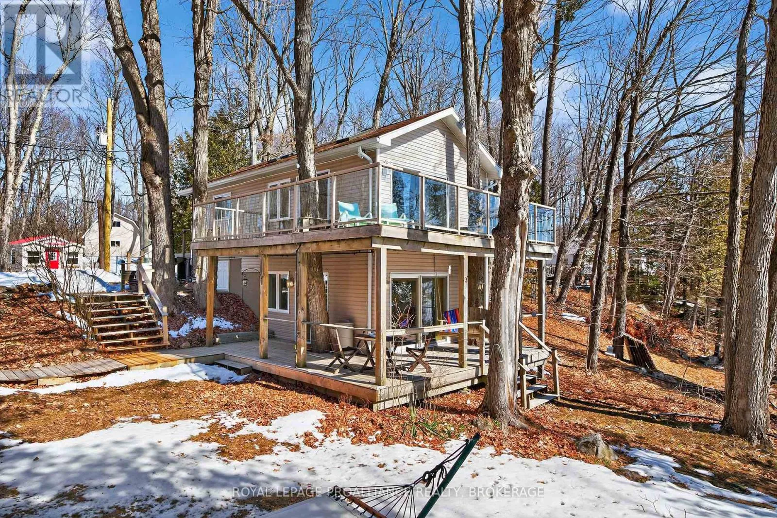 Cross Streets: Long Lake Road / Public Beach Road. ** Directions: Long Lake Road to Public Beach Road stay right and follow signs. Exceptional waterfront property on Long Lake. The property includes a main home, a cottage, bunkie and a garage. The main home features a bright, open-concept main floor ideal for entertaining family and friends. The well-appointed kitchen boasts ample storage, a large island, and elegant stone countertops. The inviting living room is perfect for relaxing - cozy up by the wood stove or step out onto the expansive, private wraparound deck. Also on the main floor are two bedrooms, a 4-piece bathroom complete with a jacuzzi tub, a laundry area, and a pantry-all finished with impressive attention to detail throughout. Upstairs, you will find the spacious primary bedroom along with a stunning 4-piece ensuite bathroom. The home is serviced by a drilled well and septic system and is equipped with a backup, on-demand generator. For additional space and flexibility, the property includes a fully separate guest cottage. This charming retreat offers a bedroom, sitting area, full bathroom, and an upper level with cabinetry, a kitchen sink, and access to a large deck overlooking the lake. This cottage is heated with a forced air propane furnace plus a woodstove and is serviced by the drilled well and septic system -all set for year-round use. The property also features a bunkie for extra guests, complete with a 2-piece bathroom and conveniently located along the path to the oversized two-car detached garage. The garage includes an unfinished loft that could be transformed into a games room or continue to serve as valuable storage space. Outdoors, enjoy the best of lakeside living with a dock on the north end of the shoreline and a sandy, level access area on the south end-perfect for swimming and relaxing. Adding even more charm is the lakeside gazebo, which offers a bug-free, peaceful space to unwind and take in the surroundings. This remarkable property has been thoughtfully designed and meticulously maintained, with no expense spared. (id:27476)