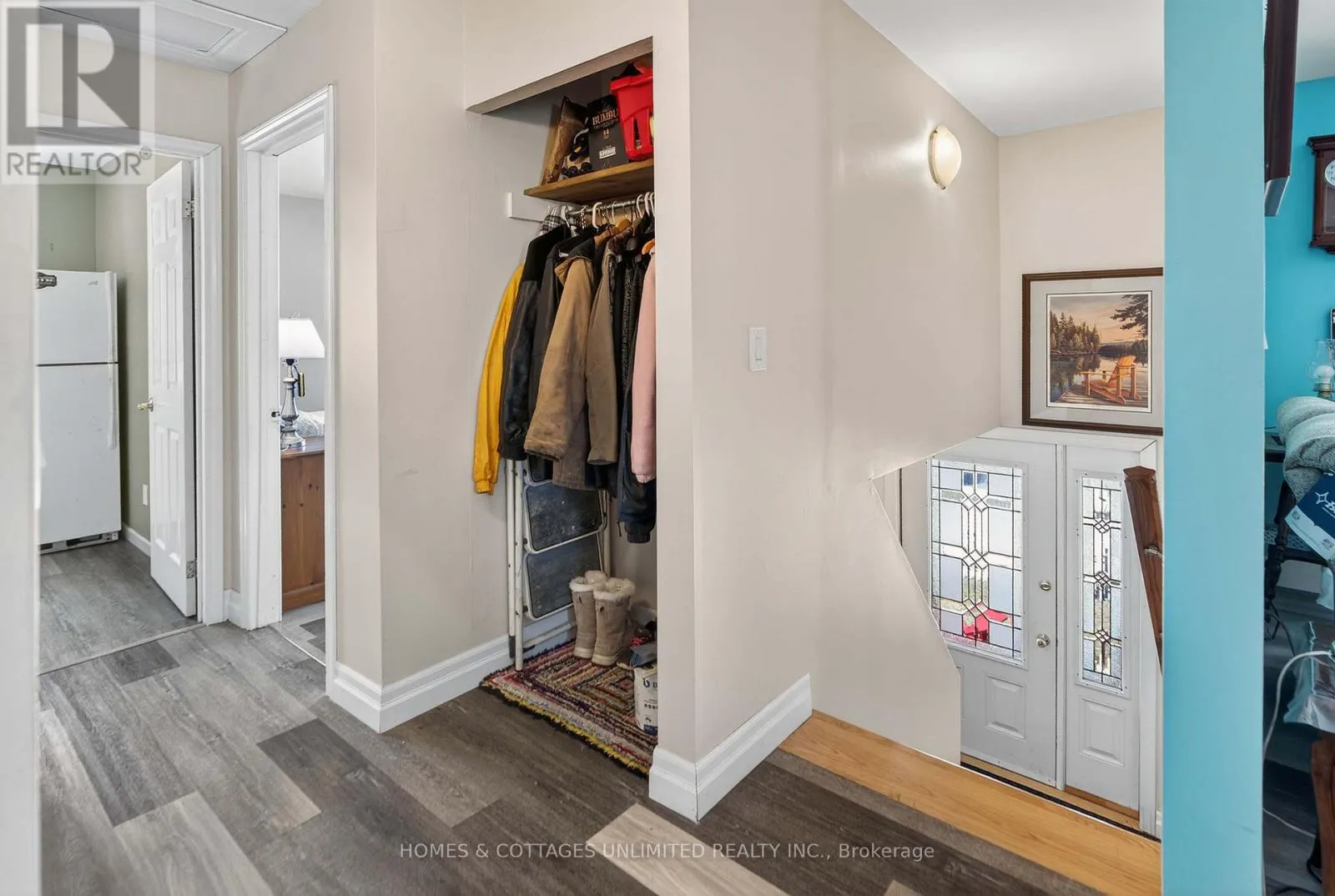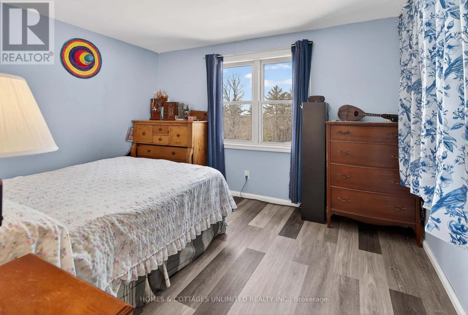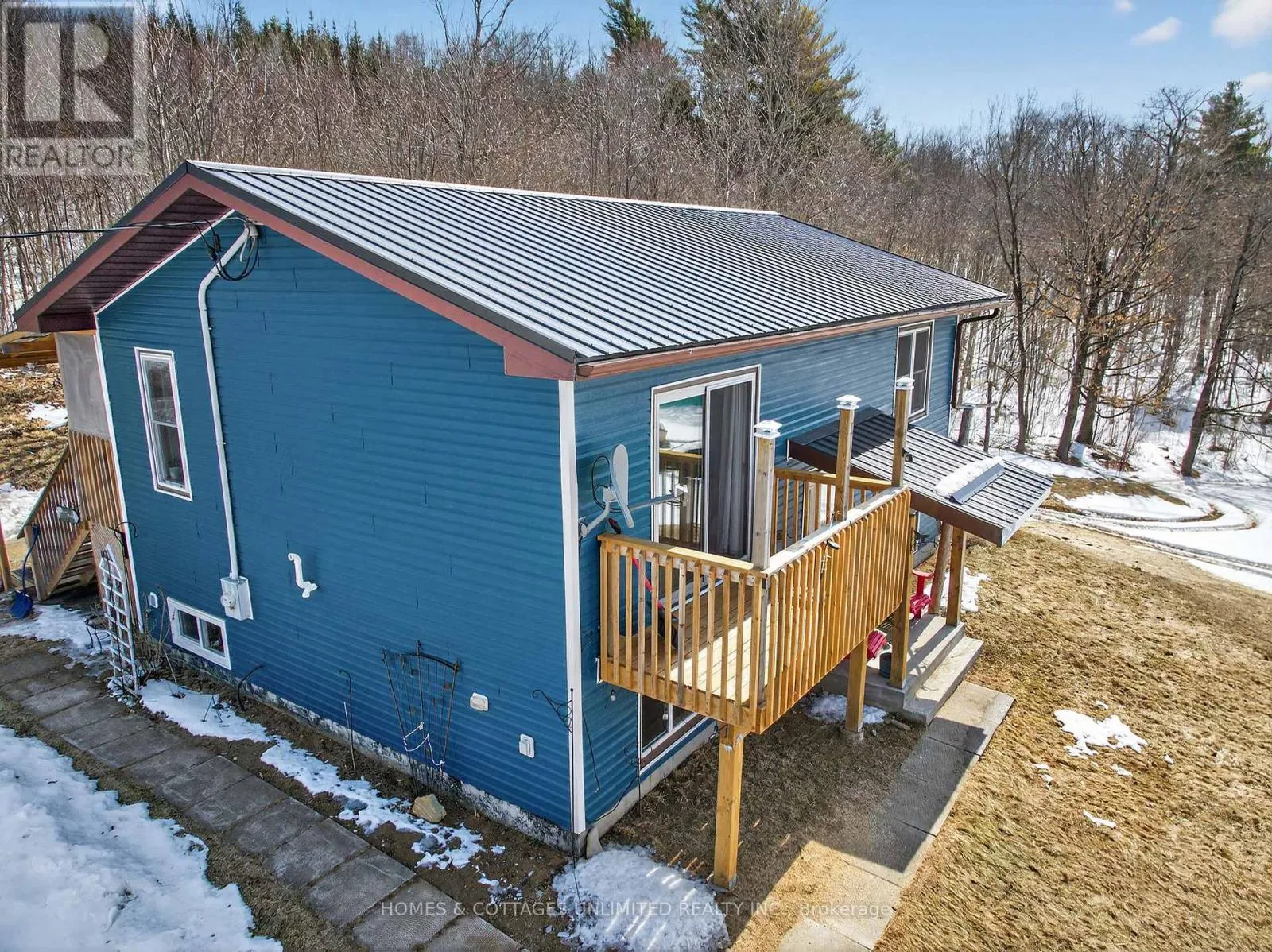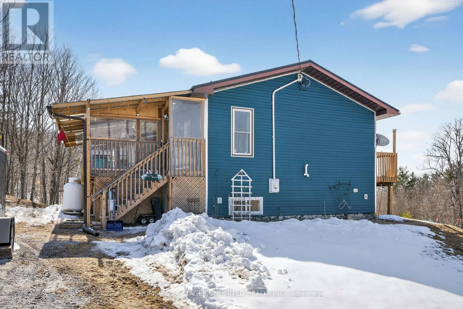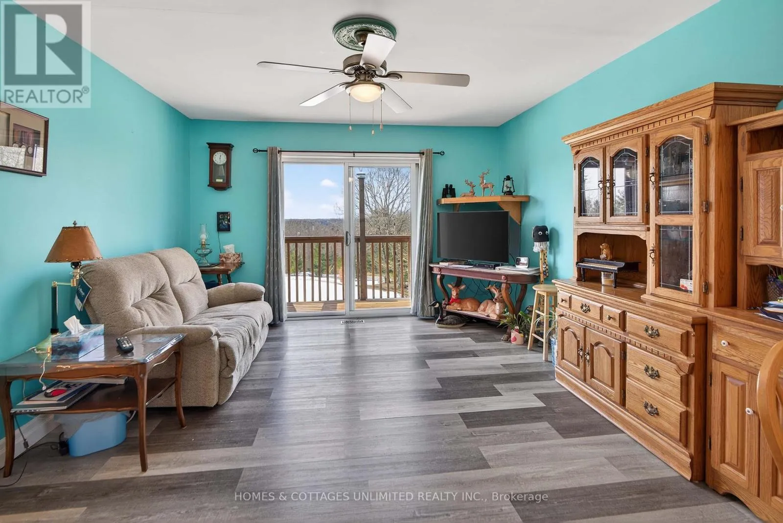 Cross Streets: Ardoch Rd to River Rd. ** Directions: Hwy 7 to Sharbot Lake, Take 509 to Ardoch Road. Right on River Road #3049. Set on a private 2-acre lot with mostly open space and a scattering of mature trees, this property offers the kind of room and privacy that's hard to find. With 3 bedrooms (1 up, 2 down) and 1.5 bathrooms (one full, one half), the layout is practical and flexible for everyday living.The main floor features a bright, open-concept eat-in kitchen/living area and convenient main floor laundry. Patio doors lead to a front deck to watch the wildlife come and go, while the large enclosed rear deck creates a great space to relax or entertain in any season.The lower level includes two bedrooms and a powder room, ideal for guests, family, or extra living space.Outside, the newly built double car garage with concrete floor, hydro, and heat is perfect for storage, hobbies, or working year-round. The large cleared area offers plenty of room for outdoor activities, equipment, or future plans.Located in an area known for its lakes and trails, this property is well-suited for anyone who enjoys the outdoors while still having the comforts of a modern home. Great curb appeal with flexible possession available. (id:27476)