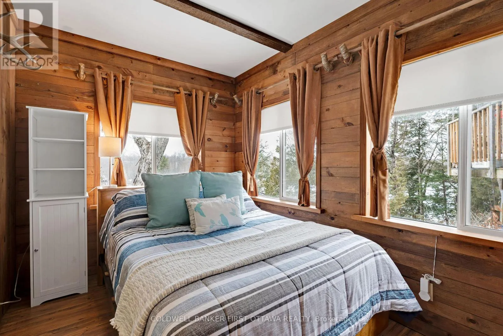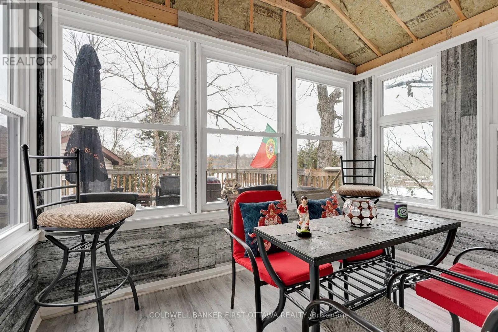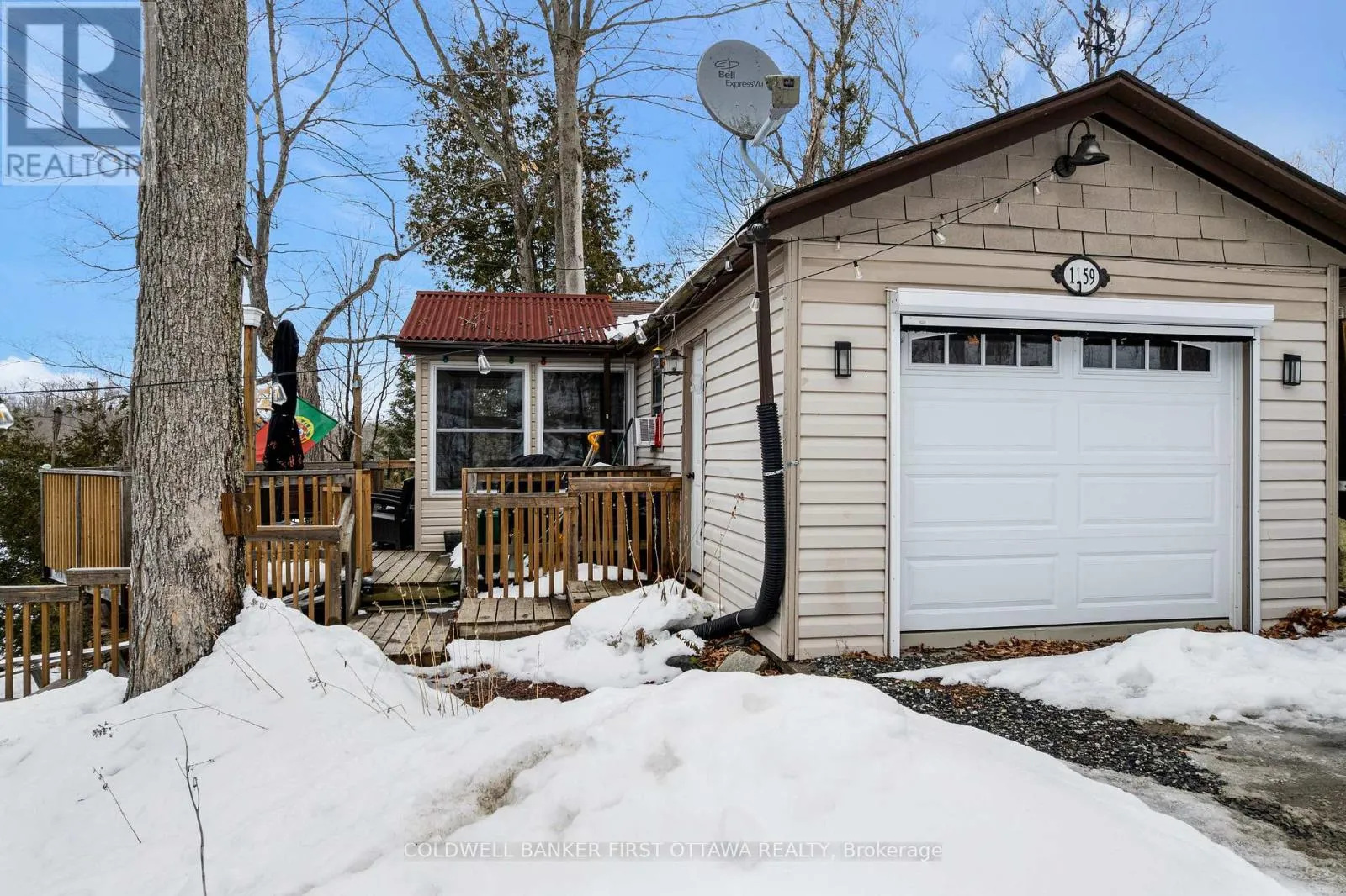 Cross Streets: Garrison Lake Rd & Elm Tree Rd. ** Directions: East on Hwy 7, Right on West Gate Rd, Left on Elm Tree Rd, Left on Garrison Lake Rd, Right on Spruce Trail, Stay Right all the way until 1159 Teal Trail. Welcome to 1159 Teal Trail! Looking for your next family getaway or future retirement waterfront home? Come discover this charming 3 Bedroom w/ Loft, 2 Bathroom, year-round cottage on Garrison Lake. Built in 1985, this Bungaloft has the convenience of home with plenty of additional space to accommodate friends and family for the summer. A clean, organized, eat in kitchen, updated floors, a spectacular view of the lake and a spacious living room. The master bedroom offers a private ensuite 4pc bathroom, the 2nd bedroom is private with plenty of windows for natural lighting and a separate door to outside. The 3rd bedroom can be used for younger kids or additional storage space, and a convenient 2nd bathroom rarely seen in cottages with a washer and dryer. Outside you'll find parking for up to 4 vehicles, gentle steps that lead you up to the deck, overlooking the water and a detached garage that has been converted to additional dinning space for large gathering, a games room and a seasonal sunroom. Additional outbuildings and parking are located beside the garage perfect for keeping your garden tools, chairs and watersport necessities. Down by the lake you can enjoy fun in the sun, deep waterfront for an afternoon swim or all the excellent fishing that the residents like to boast about. The property is part of the Frontenac Vacant Land Condominium Corp #70, each property is individually managed by the owner, common elements include a boat launch and beach located within walking distance. Travel on up to the town of Arden to your local gas station, convenience store and chip truck! Come see what the Frontenacs has to offer! (id:27476)