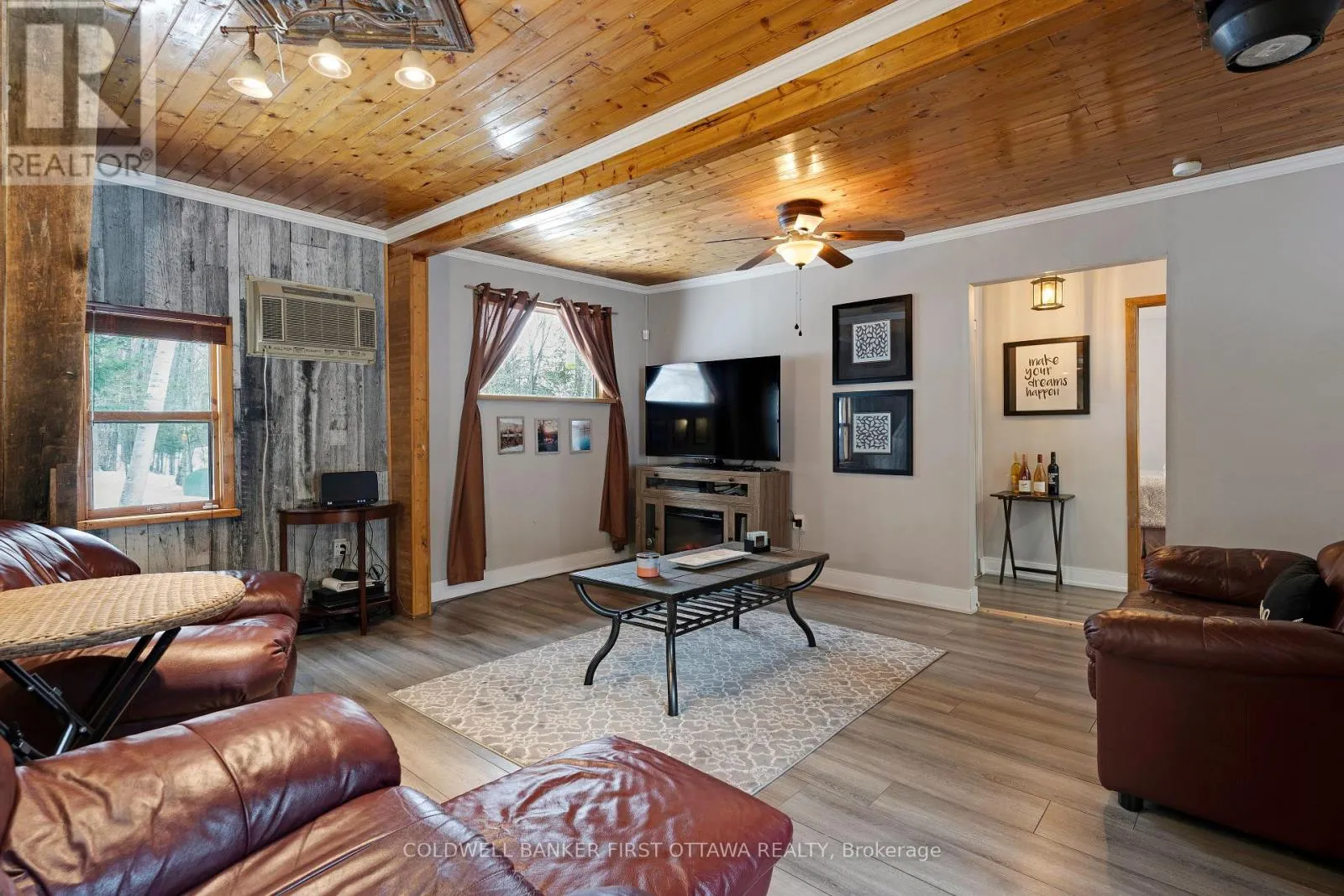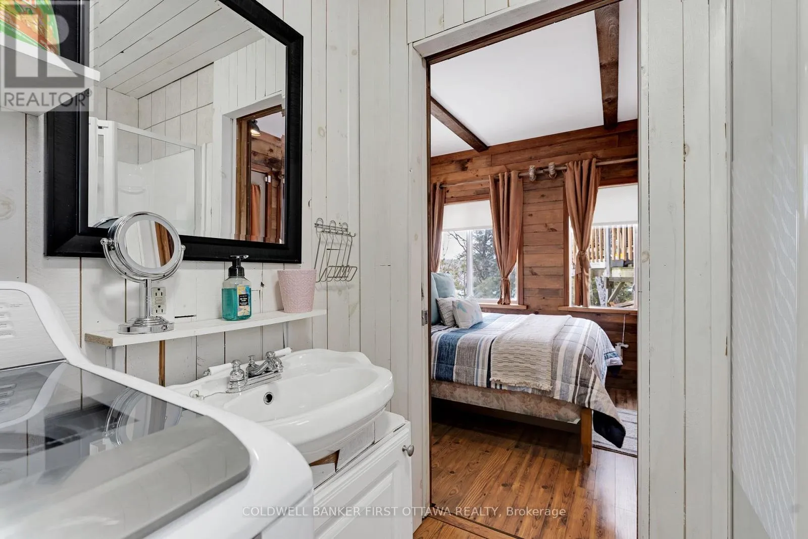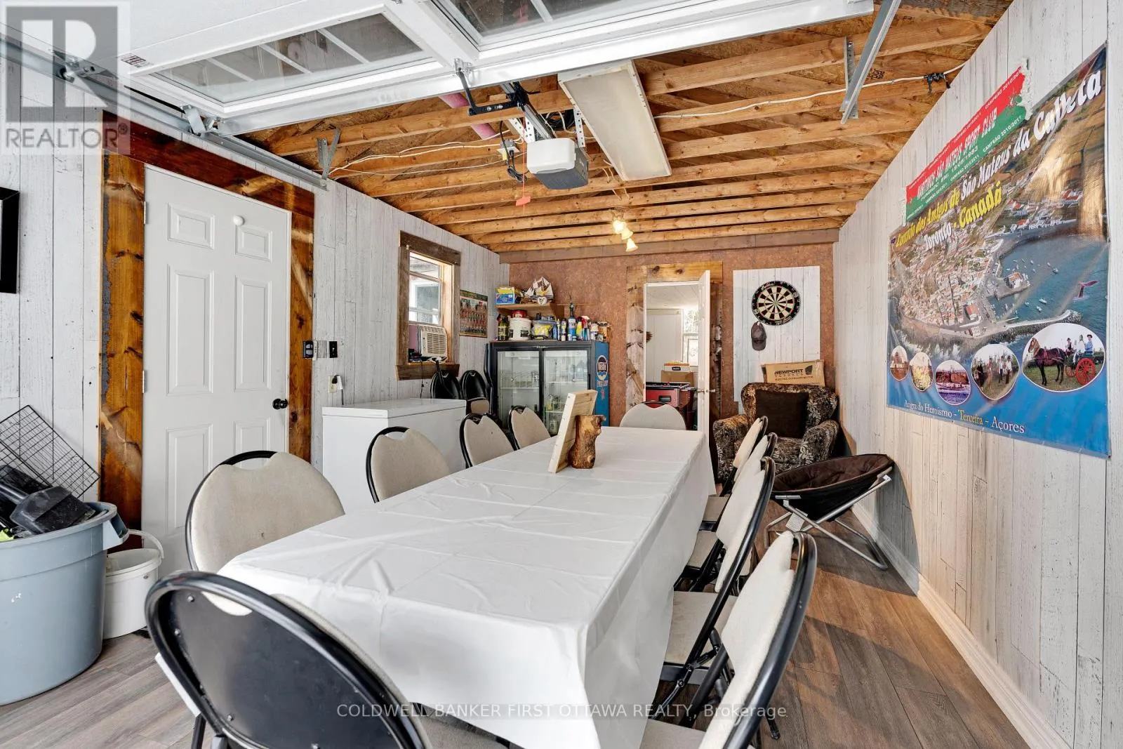 Cross Streets: Garrison Lake Rd & Elm Tree Rd. ** Directions: East on Hwy 7, Right on West Gate Rd, Left on Elm Tree Rd, Left on Garrison Lake Rd, Right on Spruce Trail, Stay Right all the way until 1159 Teal Trail. Welcome to 1159 Teal Trail! Looking for your next family getaway or future retirement waterfront home? Come discover this charming 3 Bedroom w/ Loft, 2 Bathroom, year-round cottage on Garrison Lake. Built in 1985, this Bungaloft has the convenience of home with plenty of additional space to accommodate friends and family for the summer. A clean, organized, eat in kitchen, updated floors, a spectacular view of the lake and a spacious living room. The master bedroom offers a private ensuite 4pc bathroom, the 2nd bedroom is private with plenty of windows for natural lighting and a separate door to outside. The 3rd bedroom can be used for younger kids or additional storage space, and a convenient 2nd bathroom rarely seen in cottages with a washer and dryer. Outside you'll find parking for up to 4 vehicles, gentle steps that lead you up to the deck, overlooking the water and a detached garage that has been converted to additional dinning space for large gathering, a games room and a seasonal sunroom. Additional outbuildings and parking are located beside the garage perfect for keeping your garden tools, chairs and watersport necessities. Down by the lake you can enjoy fun in the sun, deep waterfront for an afternoon swim or all the excellent fishing that the residents like to boast about. The property is part of the Frontenac Vacant Land Condominium Corp #70, each property is individually managed by the owner, common elements include a boat launch and beach located within walking distance. Travel on up to the town of Arden to your local gas station, convenience store and chip truck! Come see what the Frontenacs has to offer! (id:27476)