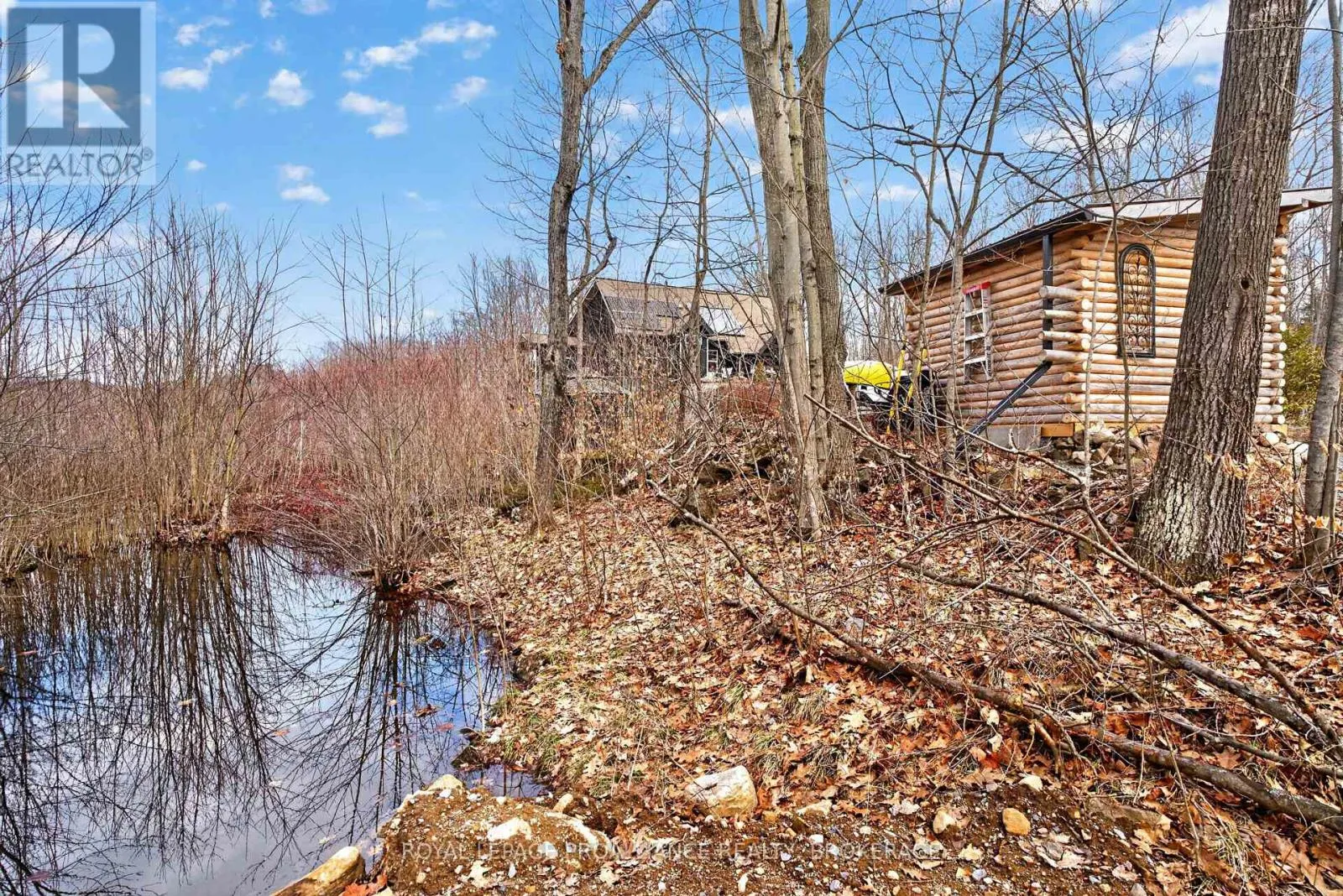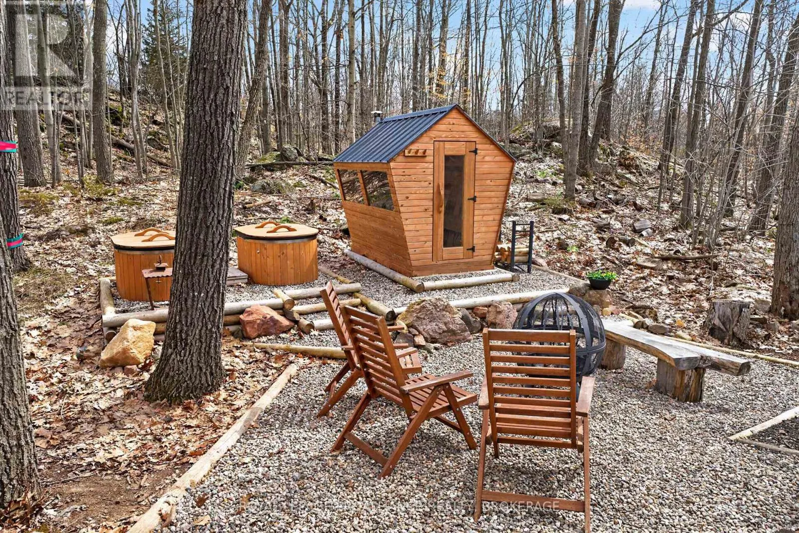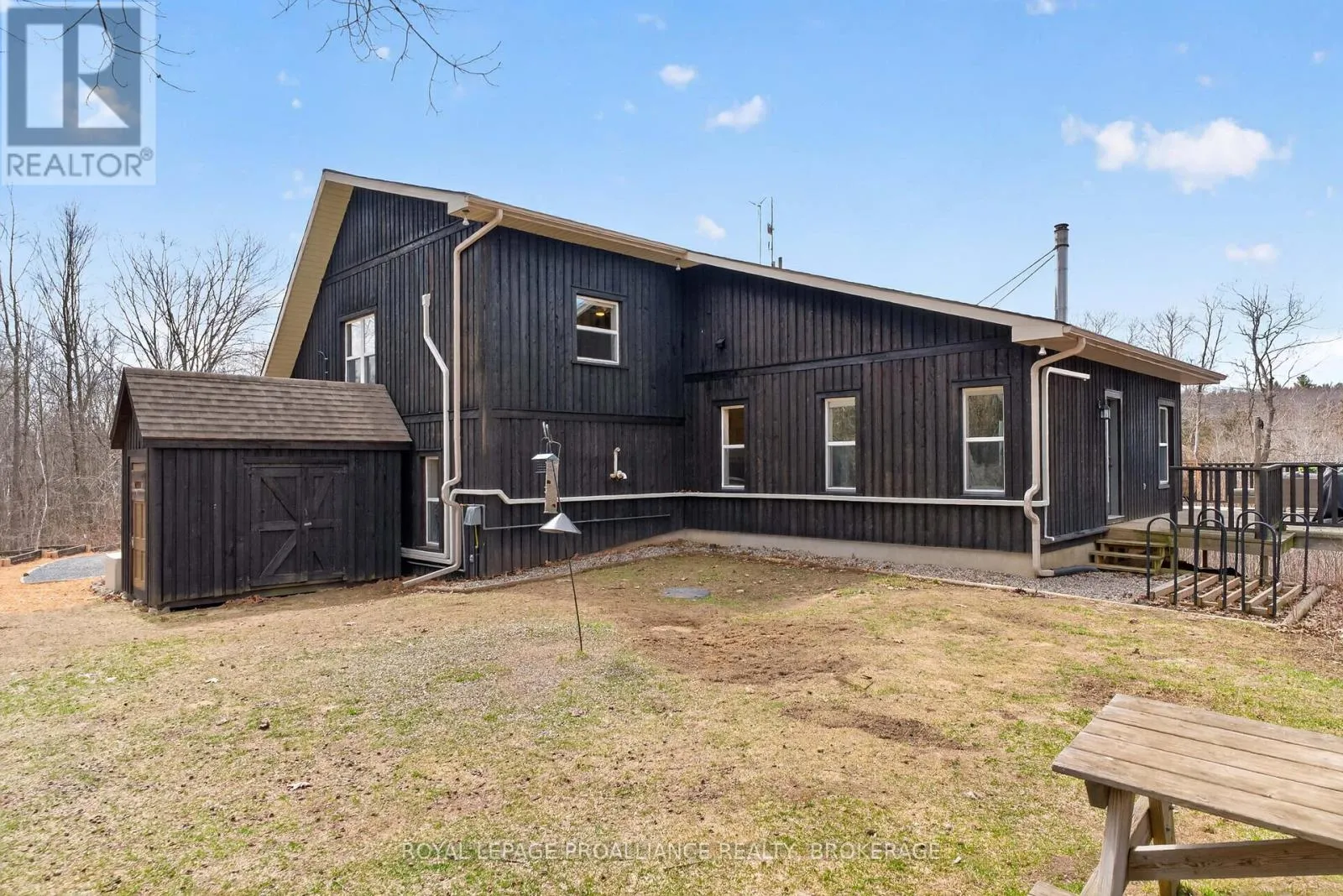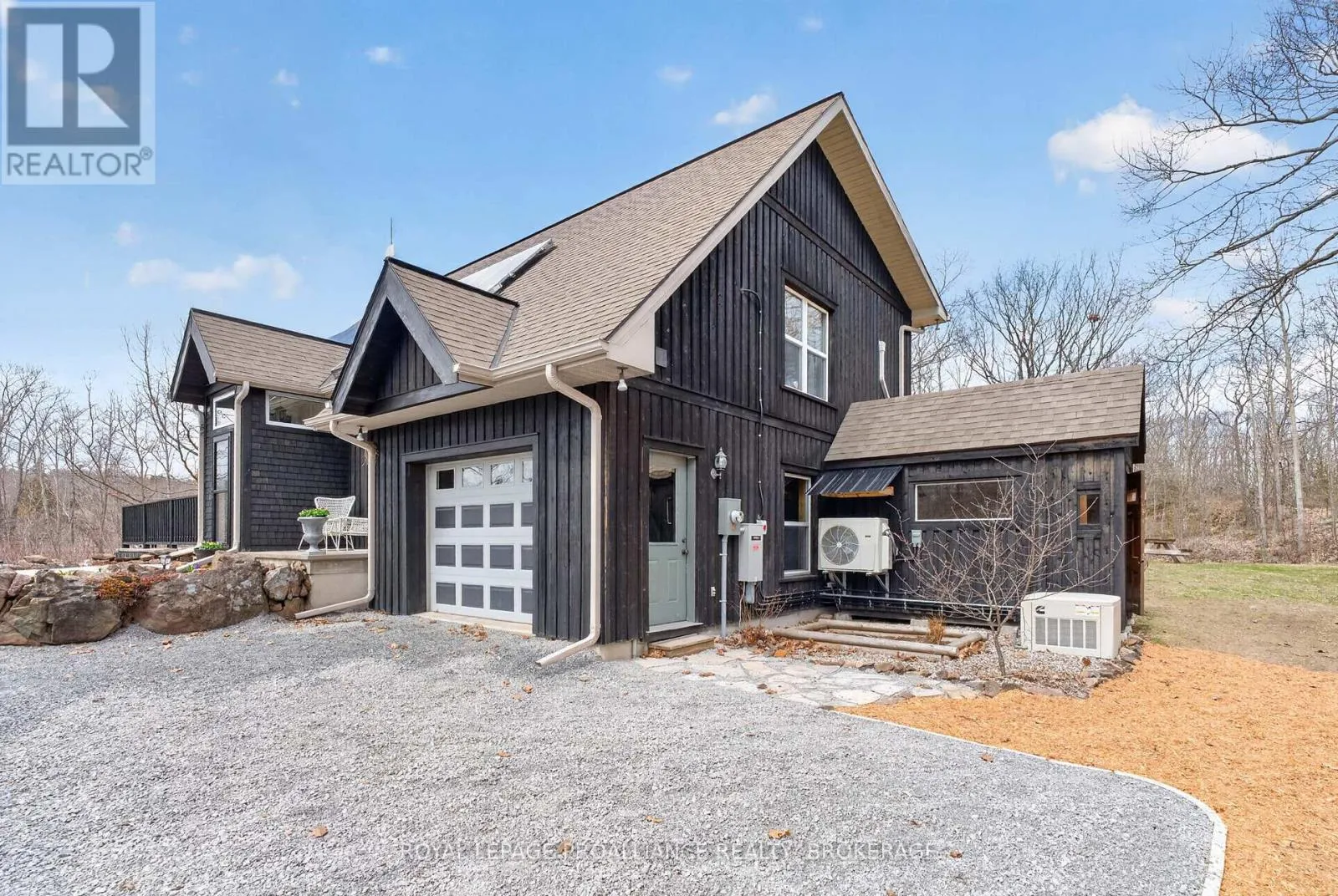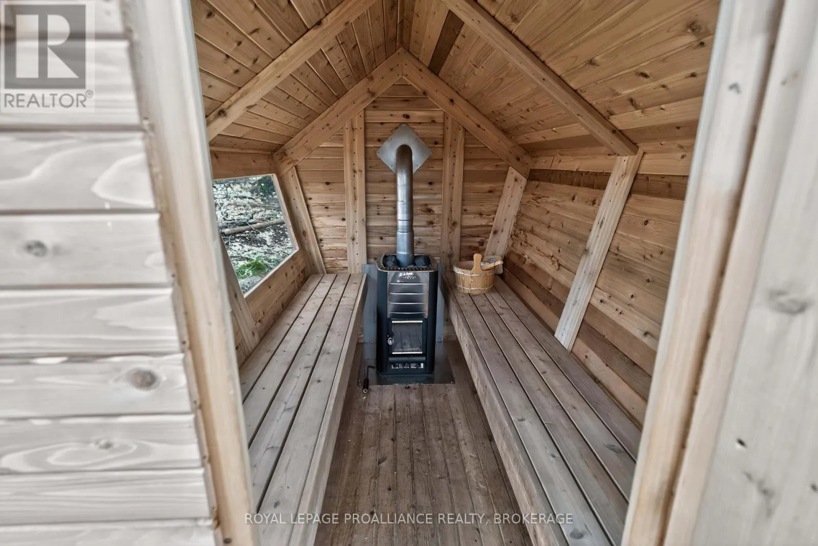 Cross Streets: North Shore Road / North Shore Crescent. ** Directions: North Shore Road just North of Lobourough Lake. Follow to #5025. Discover complete privacy on this 20 acre property surrounded in hardwood forest, located just 25 minutes north of Kingston. Surrounded by nature and set well back from the road, this secluded retreat features winding trails throughout the property, perfect for walking, exploring, and enjoying the peaceful landscape year-round. At the heart of the property sits a beautifully updated 2-storey slab-on-grade home, designed for both comfort and efficiency. Featuring a Legalett radiant heating system, slate flooring in select areas, and a ductless heat pump for air conditioning and an on-demand generator, this home delivers modern, energy-conscious living. The home has an attached garage and is fully connected to the hydro grid, while also benefiting from solar panels and a wind turbine system that feeds power back to the grid, offering valuable supplemental income and long-term sustainability. The main floor offers two spacious bedrooms, including a primary suite with a 4-piece ensuite, along with a 3-piece main bathroom. The living room is enhanced by custom built-in cabinetry and cozy window seats, creating a warm and functional space to unwind. A welcoming family room with a Jotul woodstove adds charm and comfort, while the recently renovated custom kitchen provides a stylish hub for cooking and entertaining. Upstairs, a large third bedroom offers flexible space for guests, a home office, or studio. The house has plenty of storage throughout including a fully accessible attic. There is a bright 4-season sunroom/dining room located just off the kitchen which gives access to expansive concrete decks overlooking the pond, offering peaceful, uninterrupted views of abundant wildlife in total seclusion. Outdoors, enjoy your own private wellness retreat featuring a sauna, two cold plunge tubs, and a fire pit area - all surrounded by nature. The trails located throughout the property allow you to experience the full beauty of the property right from your doorstep. (id:27476)