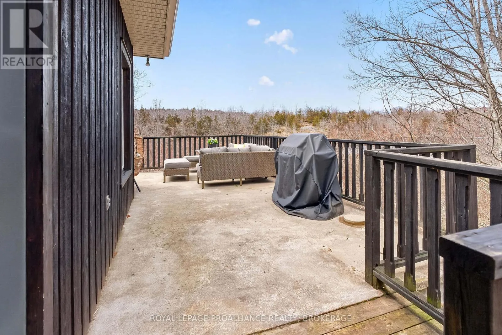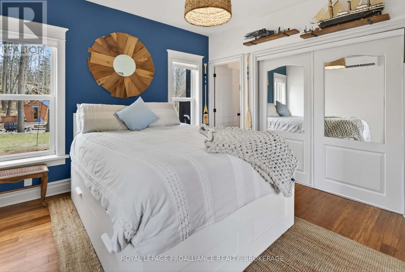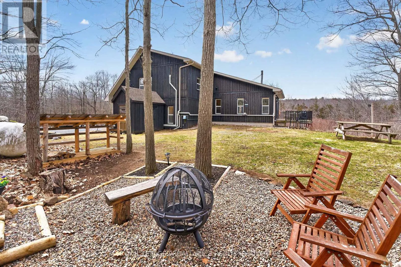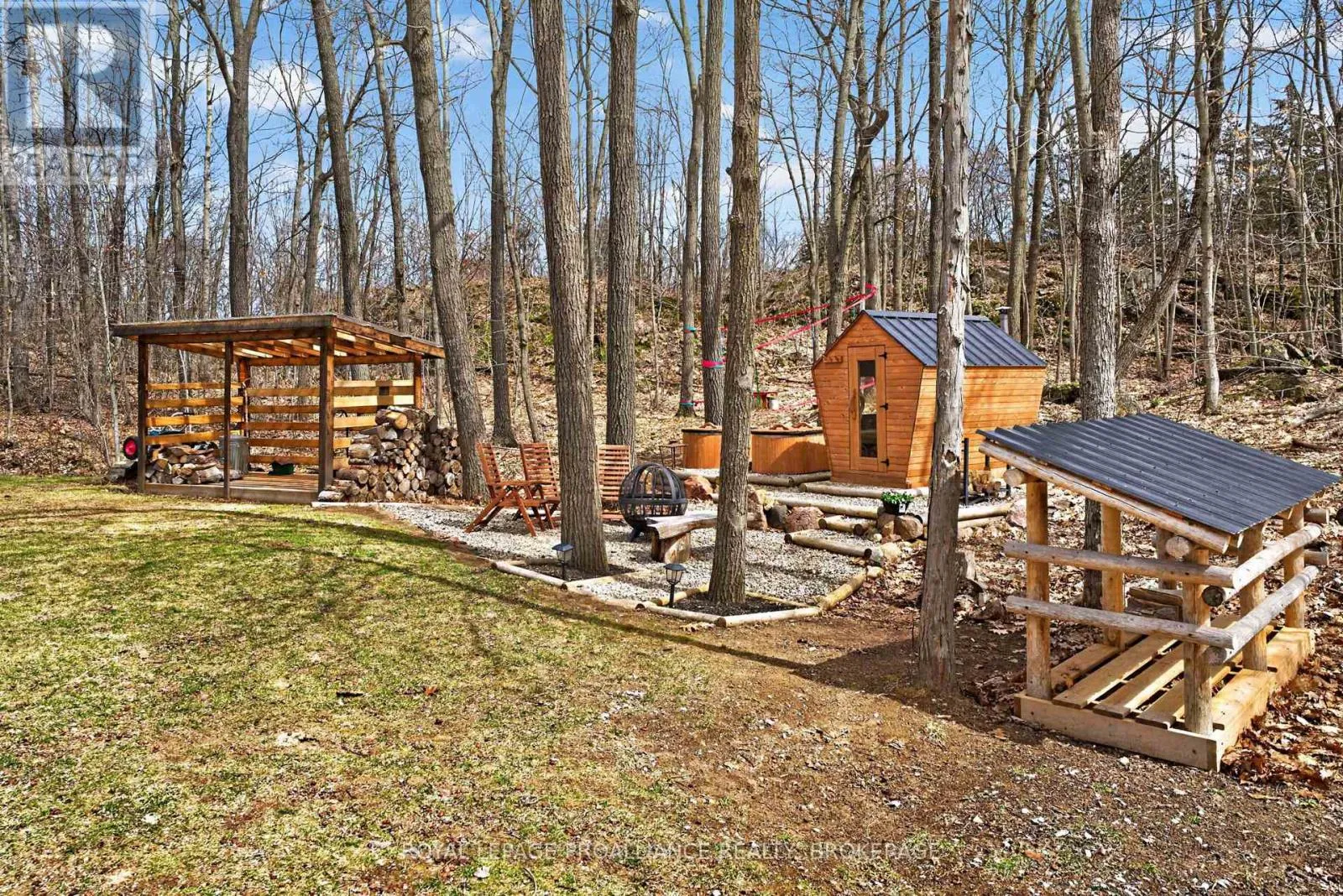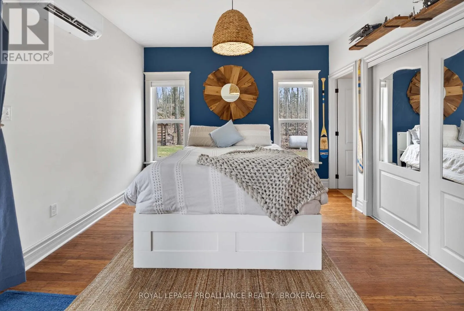 Cross Streets: North Shore Road / North Shore Crescent. ** Directions: North Shore Road just North of Lobourough Lake. Follow to #5025. Discover complete privacy on this 20 acre property surrounded in hardwood forest, located just 25 minutes north of Kingston. Surrounded by nature and set well back from the road, this secluded retreat features winding trails throughout the property, perfect for walking, exploring, and enjoying the peaceful landscape year-round. At the heart of the property sits a beautifully updated 2-storey slab-on-grade home, designed for both comfort and efficiency. Featuring a Legalett radiant heating system, slate flooring in select areas, and a ductless heat pump for air conditioning and an on-demand generator, this home delivers modern, energy-conscious living. The home has an attached garage and is fully connected to the hydro grid, while also benefiting from solar panels and a wind turbine system that feeds power back to the grid, offering valuable supplemental income and long-term sustainability. The main floor offers two spacious bedrooms, including a primary suite with a 4-piece ensuite, along with a 3-piece main bathroom. The living room is enhanced by custom built-in cabinetry and cozy window seats, creating a warm and functional space to unwind. A welcoming family room with a Jotul woodstove adds charm and comfort, while the recently renovated custom kitchen provides a stylish hub for cooking and entertaining. Upstairs, a large third bedroom offers flexible space for guests, a home office, or studio. The house has plenty of storage throughout including a fully accessible attic. There is a bright 4-season sunroom/dining room located just off the kitchen which gives access to expansive concrete decks overlooking the pond, offering peaceful, uninterrupted views of abundant wildlife in total seclusion. Outdoors, enjoy your own private wellness retreat featuring a sauna, two cold plunge tubs, and a fire pit area - all surrounded by nature. The trails located throughout the property allow you to experience the full beauty of the property right from your doorstep. (id:27476)