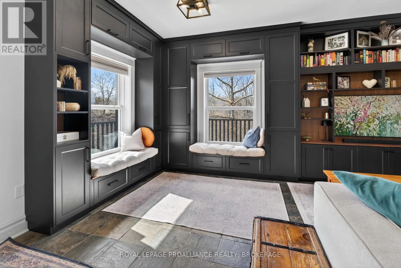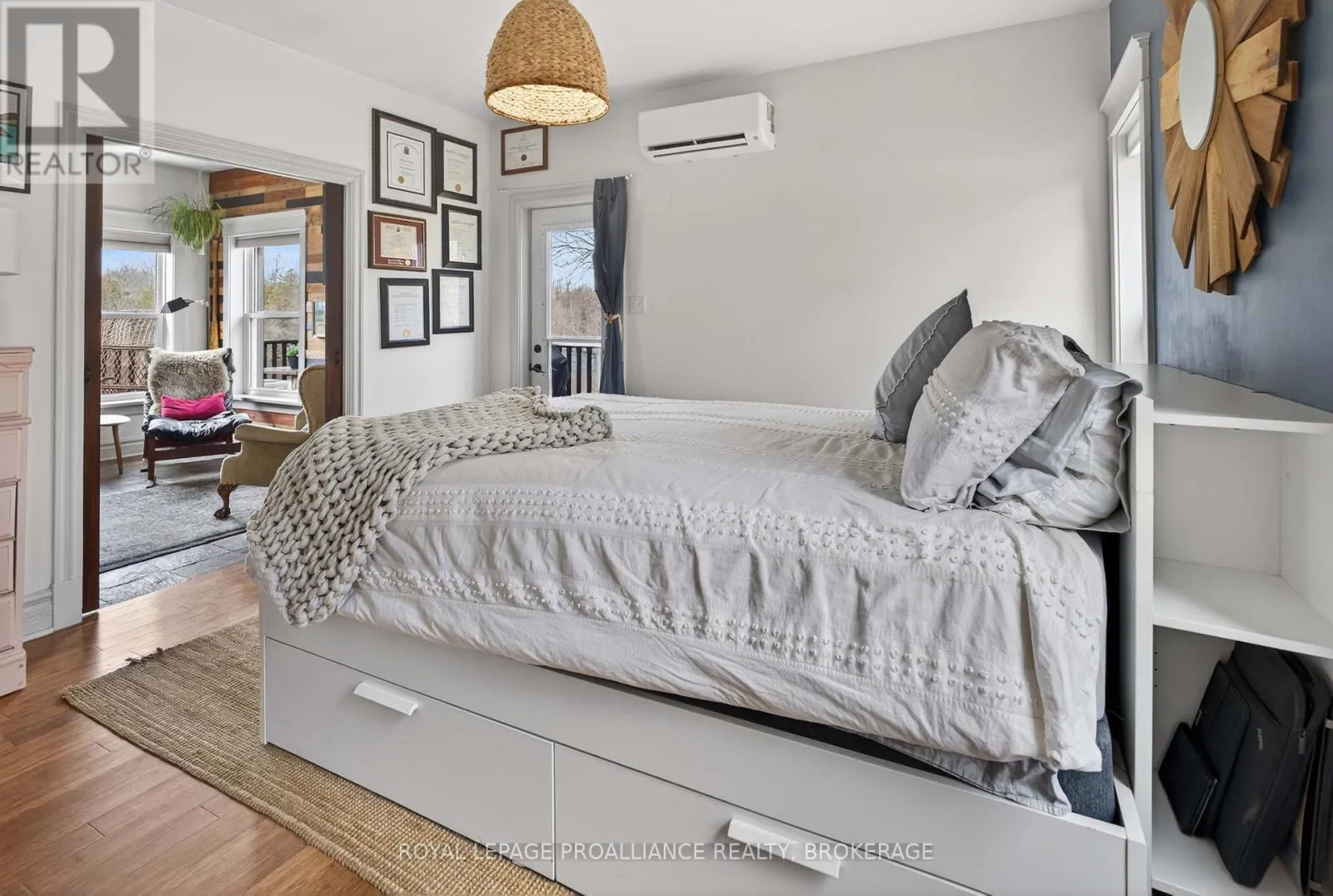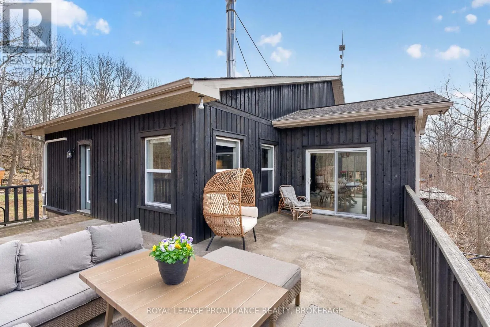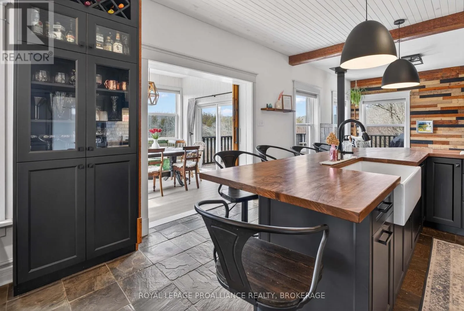 Cross Streets: North Shore Road / North Shore Crescent. ** Directions: North Shore Road just North of Lobourough Lake. Follow to #5025. Discover complete privacy on this 20 acre property surrounded in hardwood forest, located just 25 minutes north of Kingston. Surrounded by nature and set well back from the road, this secluded retreat features winding trails throughout the property, perfect for walking, exploring, and enjoying the peaceful landscape year-round. At the heart of the property sits a beautifully updated 2-storey slab-on-grade home, designed for both comfort and efficiency. Featuring a Legalett radiant heating system, slate flooring in select areas, and a ductless heat pump for air conditioning and an on-demand generator, this home delivers modern, energy-conscious living. The home has an attached garage and is fully connected to the hydro grid, while also benefiting from solar panels and a wind turbine system that feeds power back to the grid, offering valuable supplemental income and long-term sustainability. The main floor offers two spacious bedrooms, including a primary suite with a 4-piece ensuite, along with a 3-piece main bathroom. The living room is enhanced by custom built-in cabinetry and cozy window seats, creating a warm and functional space to unwind. A welcoming family room with a Jotul woodstove adds charm and comfort, while the recently renovated custom kitchen provides a stylish hub for cooking and entertaining. Upstairs, a large third bedroom offers flexible space for guests, a home office, or studio. The house has plenty of storage throughout including a fully accessible attic. There is a bright 4-season sunroom/dining room located just off the kitchen which gives access to expansive concrete decks overlooking the pond, offering peaceful, uninterrupted views of abundant wildlife in total seclusion. Outdoors, enjoy your own private wellness retreat featuring a sauna, two cold plunge tubs, and a fire pit area - all surrounded by nature. The trails located throughout the property allow you to experience the full beauty of the property right from your doorstep. (id:27476)