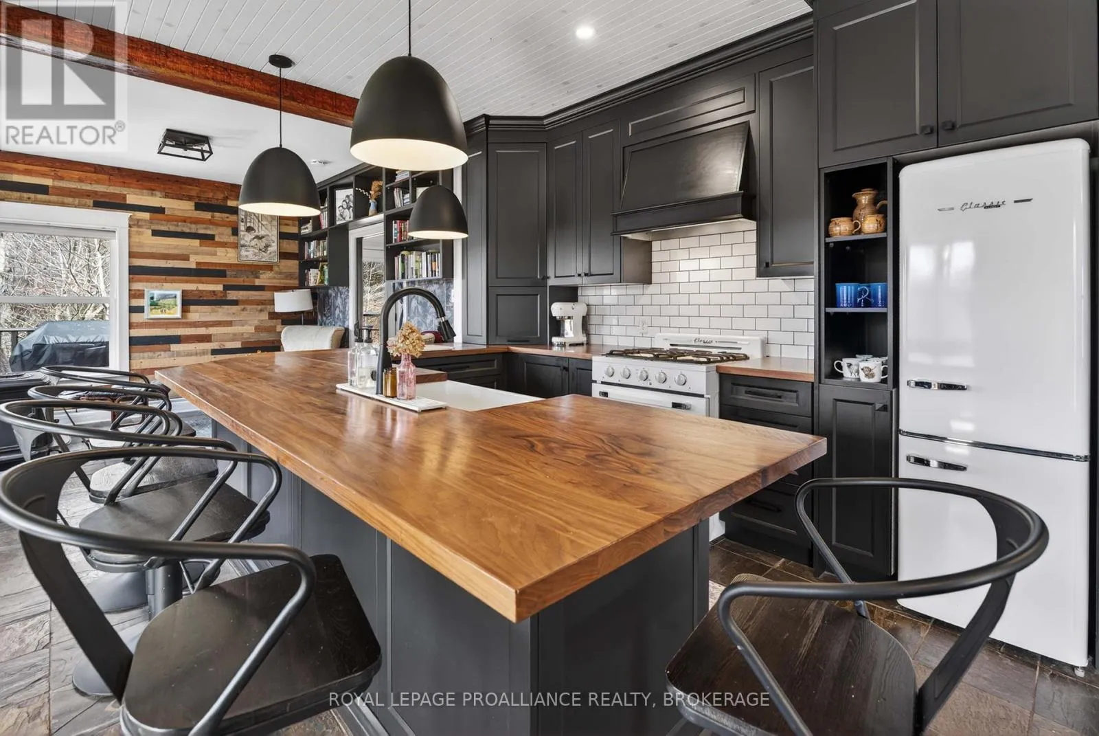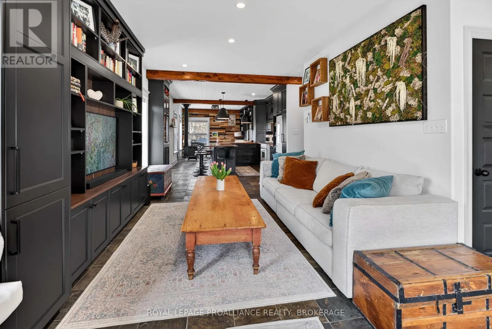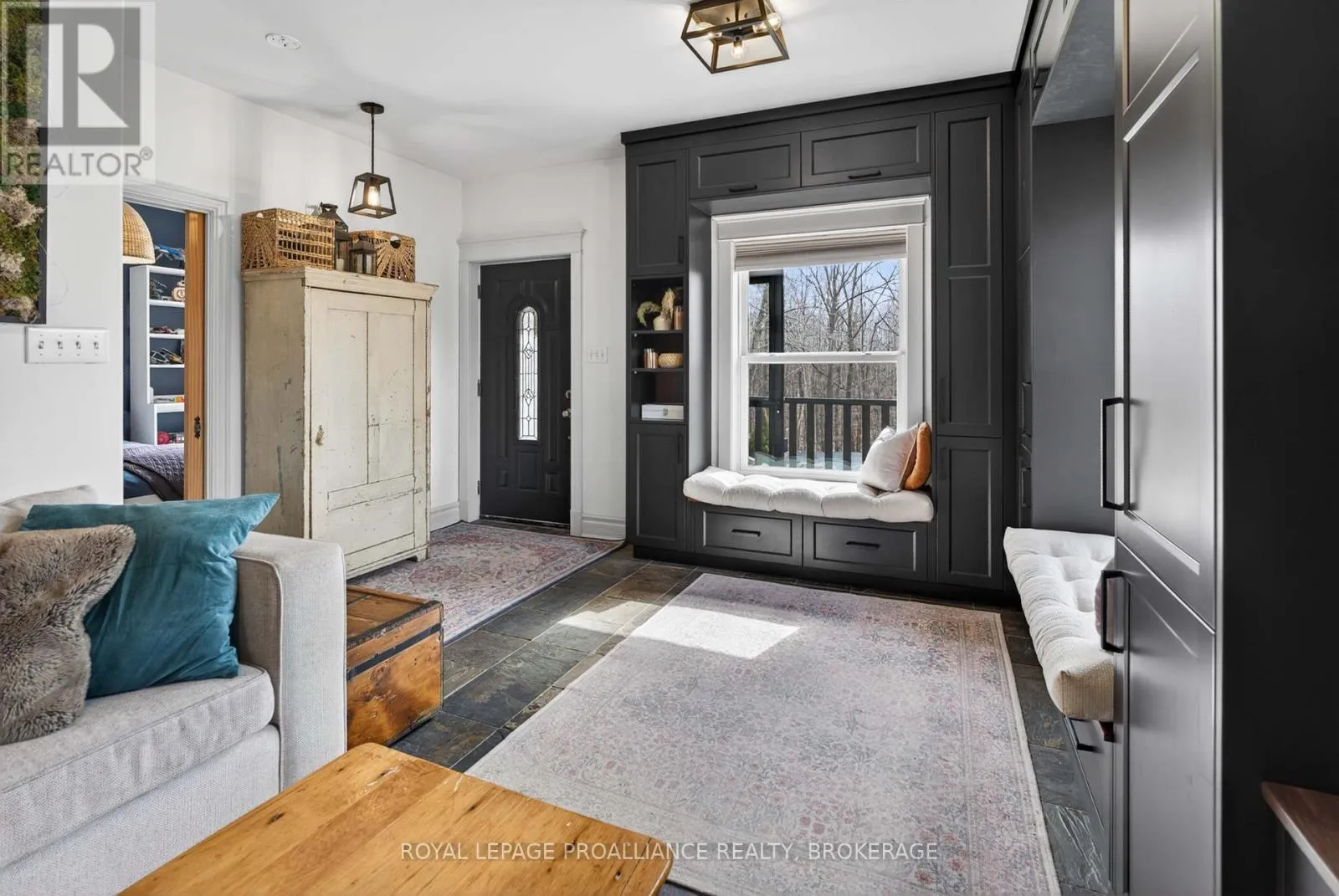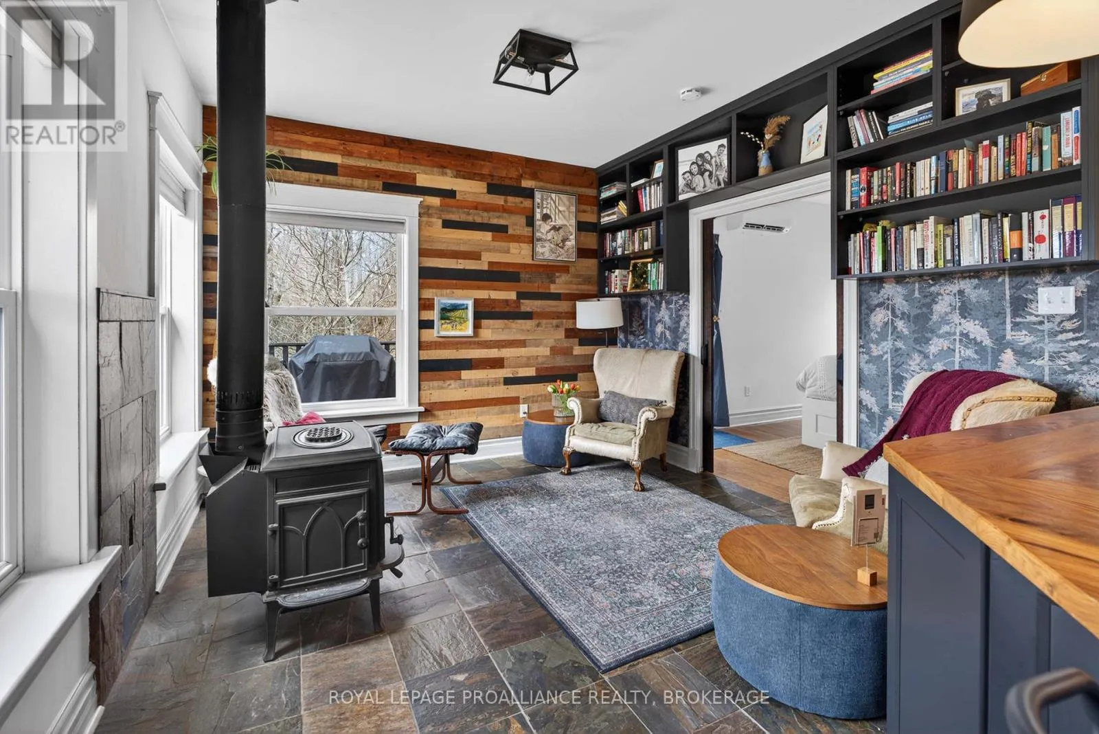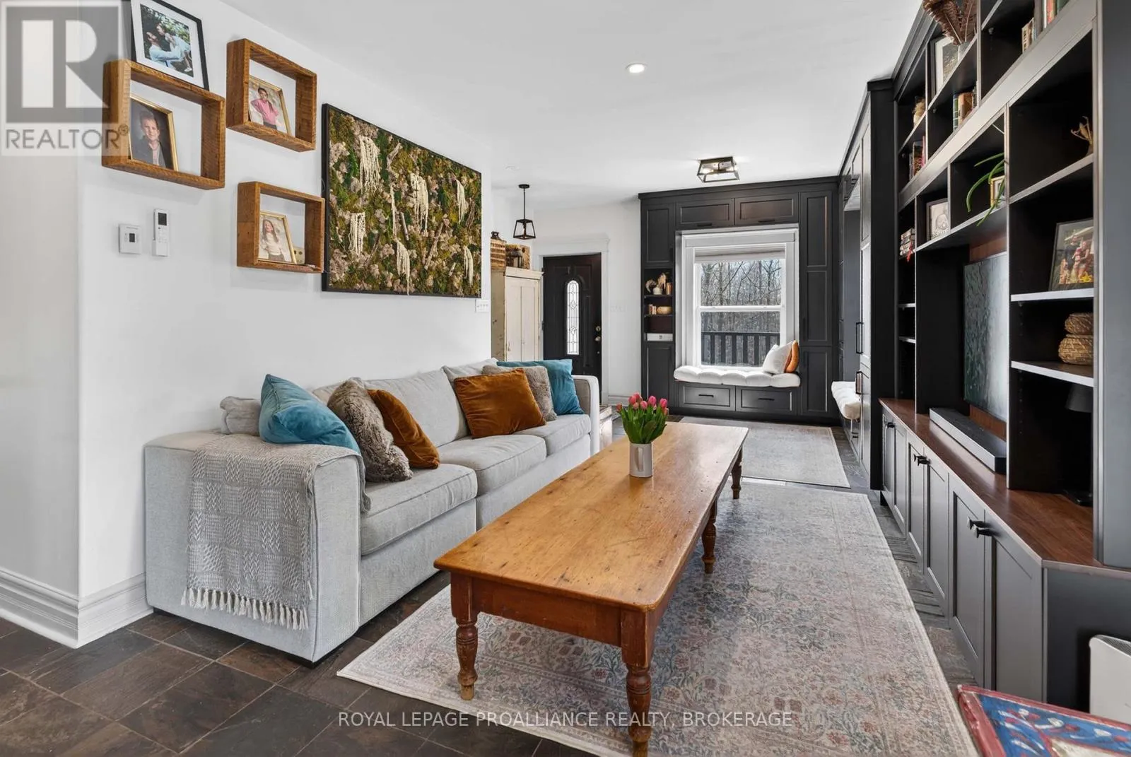 Cross Streets: North Shore Road / North Shore Crescent. ** Directions: North Shore Road just North of Lobourough Lake. Follow to #5025. Discover complete privacy on this 20 acre property surrounded in hardwood forest, located just 25 minutes north of Kingston. Surrounded by nature and set well back from the road, this secluded retreat features winding trails throughout the property, perfect for walking, exploring, and enjoying the peaceful landscape year-round. At the heart of the property sits a beautifully updated 2-storey slab-on-grade home, designed for both comfort and efficiency. Featuring a Legalett radiant heating system, slate flooring in select areas, and a ductless heat pump for air conditioning and an on-demand generator, this home delivers modern, energy-conscious living. The home has an attached garage and is fully connected to the hydro grid, while also benefiting from solar panels and a wind turbine system that feeds power back to the grid, offering valuable supplemental income and long-term sustainability. The main floor offers two spacious bedrooms, including a primary suite with a 4-piece ensuite, along with a 3-piece main bathroom. The living room is enhanced by custom built-in cabinetry and cozy window seats, creating a warm and functional space to unwind. A welcoming family room with a Jotul woodstove adds charm and comfort, while the recently renovated custom kitchen provides a stylish hub for cooking and entertaining. Upstairs, a large third bedroom offers flexible space for guests, a home office, or studio. The house has plenty of storage throughout including a fully accessible attic. There is a bright 4-season sunroom/dining room located just off the kitchen which gives access to expansive concrete decks overlooking the pond, offering peaceful, uninterrupted views of abundant wildlife in total seclusion. Outdoors, enjoy your own private wellness retreat featuring a sauna, two cold plunge tubs, and a fire pit area - all surrounded by nature. The trails located throughout the property allow you to experience the full beauty of the property right from your doorstep. (id:27476)