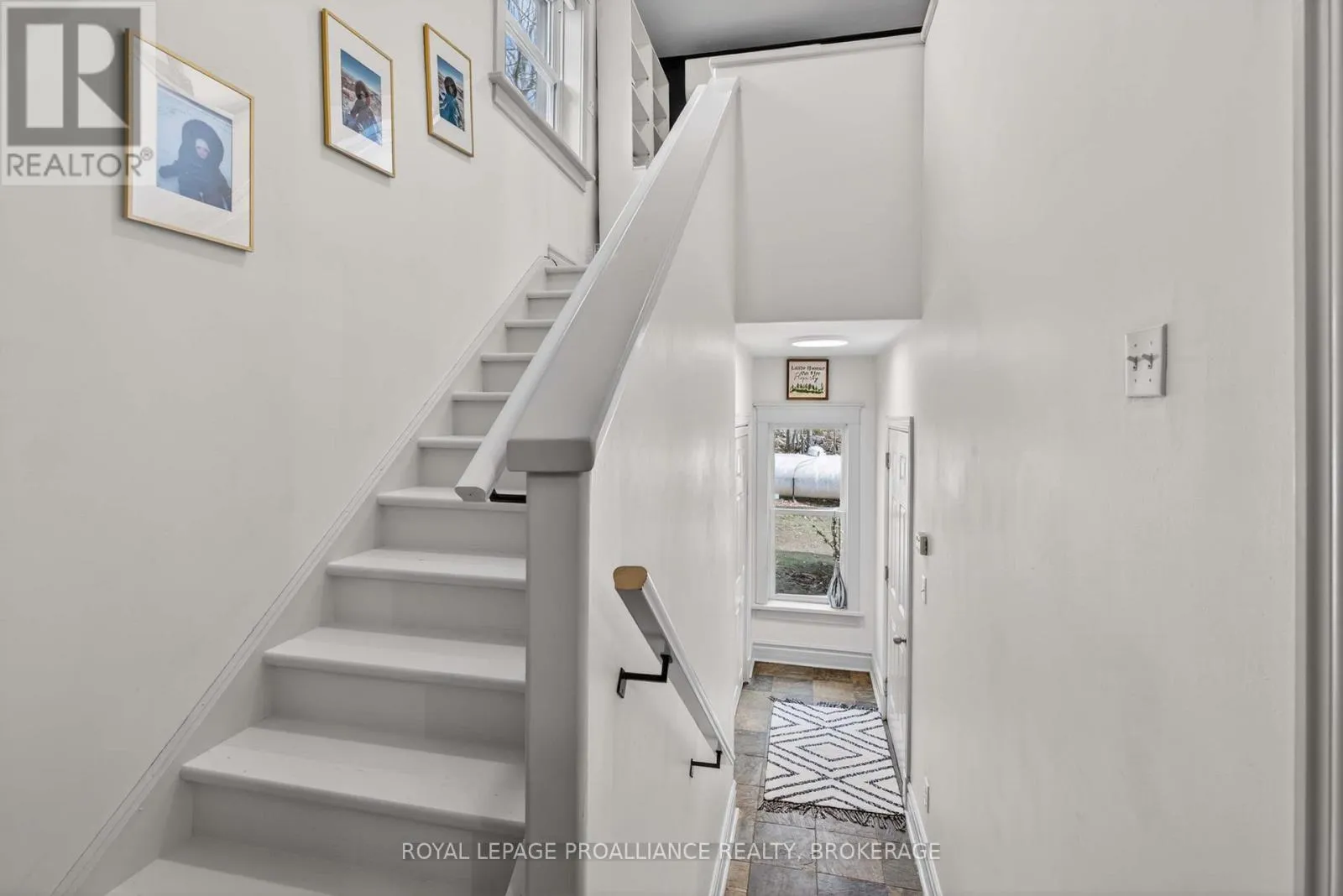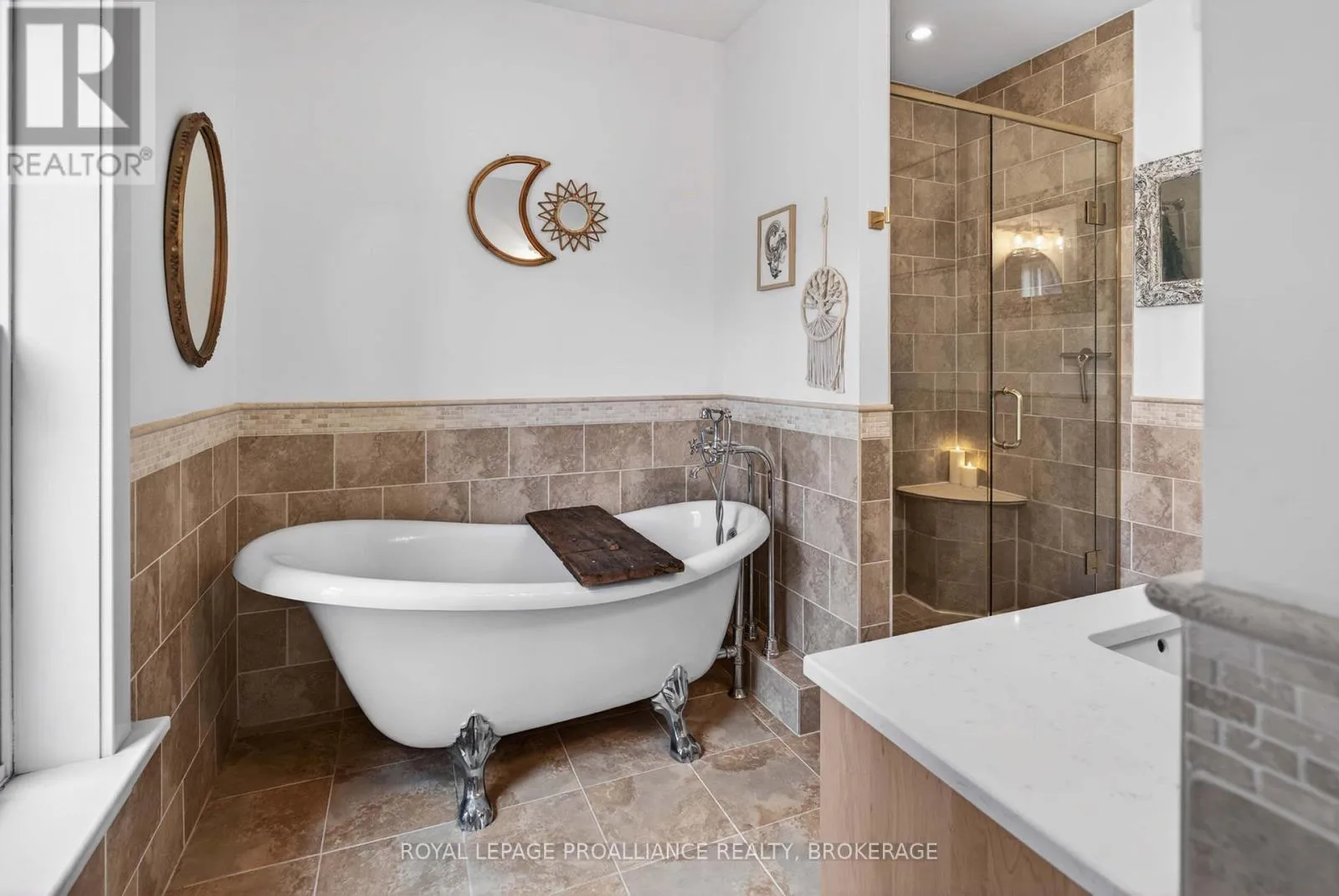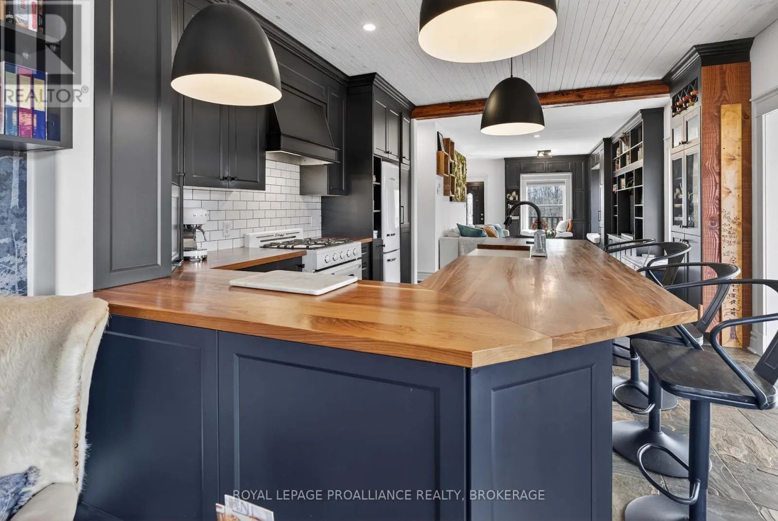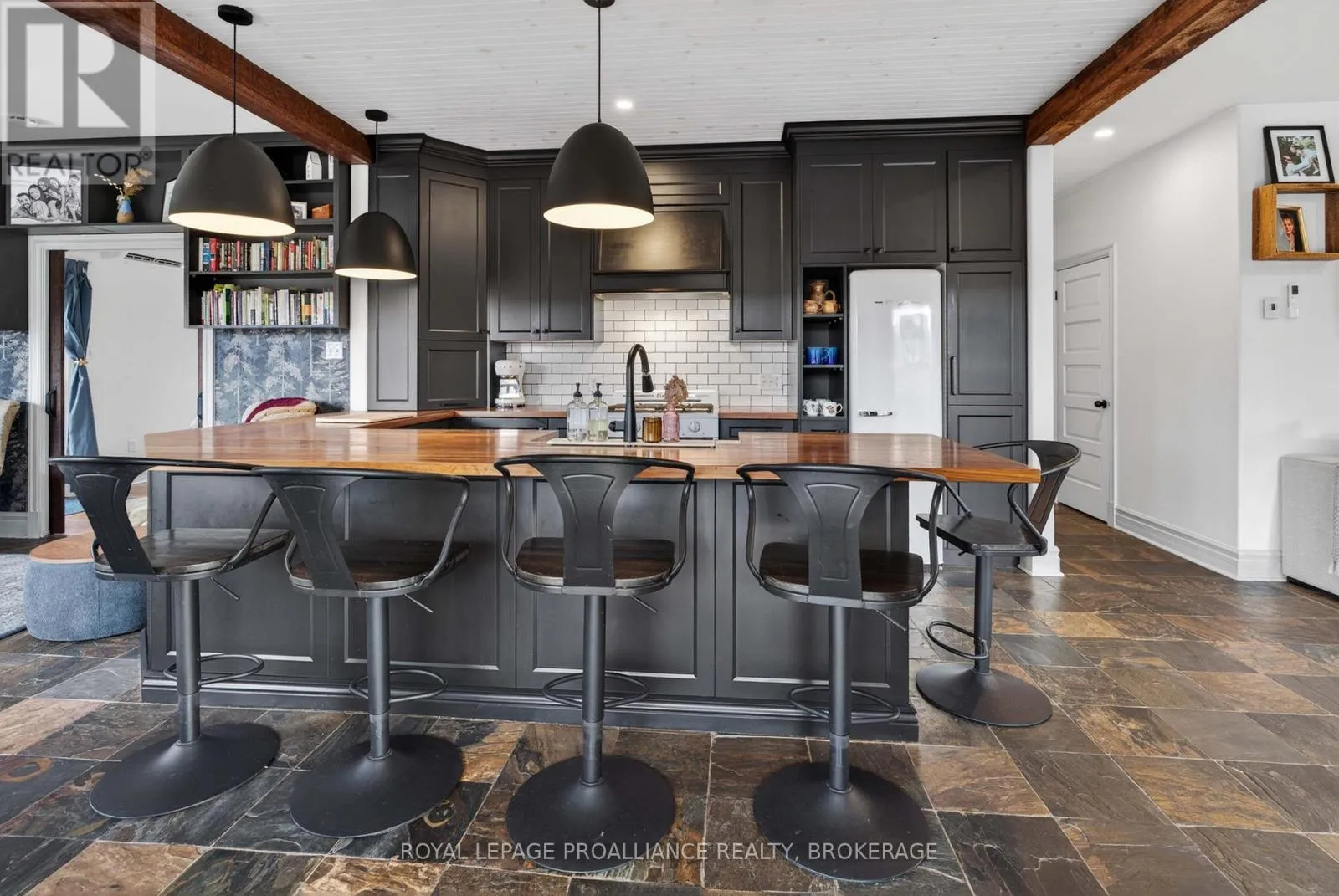 Cross Streets: North Shore Road / North Shore Crescent. ** Directions: North Shore Road just North of Lobourough Lake. Follow to #5025. Discover complete privacy on this 20 acre property surrounded in hardwood forest, located just 25 minutes north of Kingston. Surrounded by nature and set well back from the road, this secluded retreat features winding trails throughout the property, perfect for walking, exploring, and enjoying the peaceful landscape year-round. At the heart of the property sits a beautifully updated 2-storey slab-on-grade home, designed for both comfort and efficiency. Featuring a Legalett radiant heating system, slate flooring in select areas, and a ductless heat pump for air conditioning and an on-demand generator, this home delivers modern, energy-conscious living. The home has an attached garage and is fully connected to the hydro grid, while also benefiting from solar panels and a wind turbine system that feeds power back to the grid, offering valuable supplemental income and long-term sustainability. The main floor offers two spacious bedrooms, including a primary suite with a 4-piece ensuite, along with a 3-piece main bathroom. The living room is enhanced by custom built-in cabinetry and cozy window seats, creating a warm and functional space to unwind. A welcoming family room with a Jotul woodstove adds charm and comfort, while the recently renovated custom kitchen provides a stylish hub for cooking and entertaining. Upstairs, a large third bedroom offers flexible space for guests, a home office, or studio. The house has plenty of storage throughout including a fully accessible attic. There is a bright 4-season sunroom/dining room located just off the kitchen which gives access to expansive concrete decks overlooking the pond, offering peaceful, uninterrupted views of abundant wildlife in total seclusion. Outdoors, enjoy your own private wellness retreat featuring a sauna, two cold plunge tubs, and a fire pit area - all surrounded by nature. The trails located throughout the property allow you to experience the full beauty of the property right from your doorstep. (id:27476)