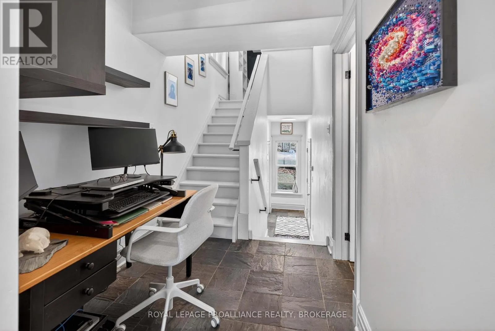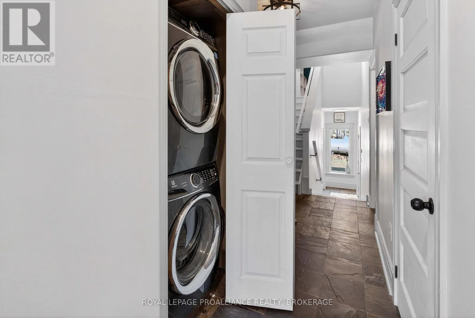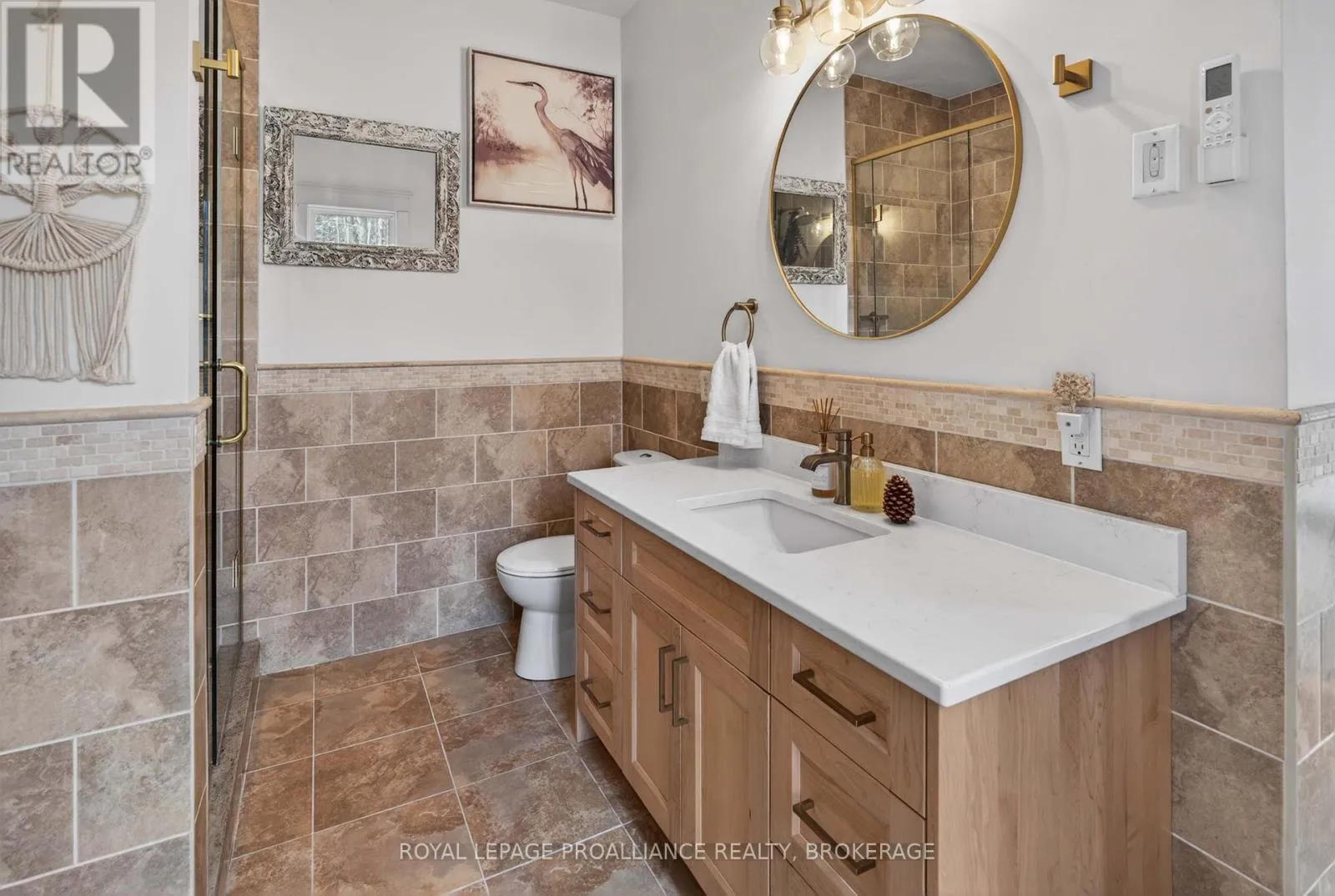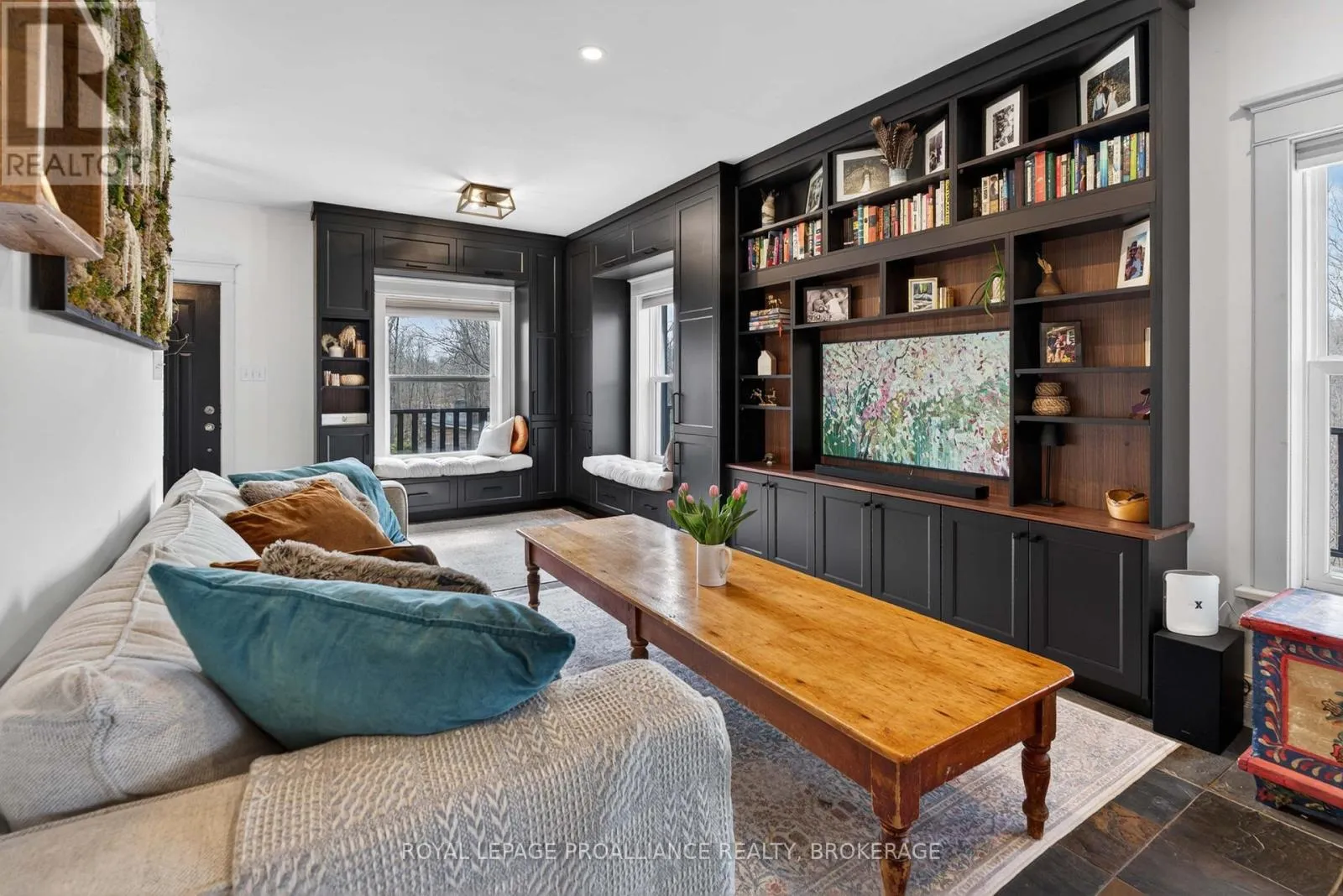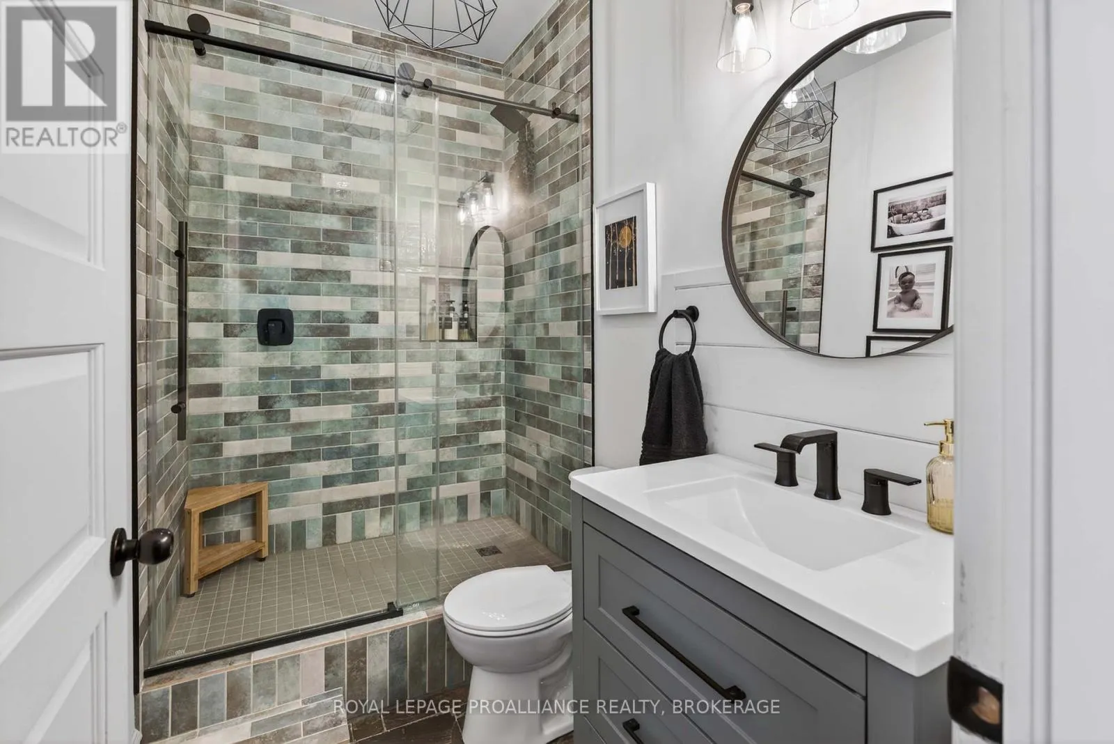 Cross Streets: North Shore Road / North Shore Crescent. ** Directions: North Shore Road just North of Lobourough Lake. Follow to #5025. Discover complete privacy on this 20 acre property surrounded in hardwood forest, located just 25 minutes north of Kingston. Surrounded by nature and set well back from the road, this secluded retreat features winding trails throughout the property, perfect for walking, exploring, and enjoying the peaceful landscape year-round. At the heart of the property sits a beautifully updated 2-storey slab-on-grade home, designed for both comfort and efficiency. Featuring a Legalett radiant heating system, slate flooring in select areas, and a ductless heat pump for air conditioning and an on-demand generator, this home delivers modern, energy-conscious living. The home has an attached garage and is fully connected to the hydro grid, while also benefiting from solar panels and a wind turbine system that feeds power back to the grid, offering valuable supplemental income and long-term sustainability. The main floor offers two spacious bedrooms, including a primary suite with a 4-piece ensuite, along with a 3-piece main bathroom. The living room is enhanced by custom built-in cabinetry and cozy window seats, creating a warm and functional space to unwind. A welcoming family room with a Jotul woodstove adds charm and comfort, while the recently renovated custom kitchen provides a stylish hub for cooking and entertaining. Upstairs, a large third bedroom offers flexible space for guests, a home office, or studio. The house has plenty of storage throughout including a fully accessible attic. There is a bright 4-season sunroom/dining room located just off the kitchen which gives access to expansive concrete decks overlooking the pond, offering peaceful, uninterrupted views of abundant wildlife in total seclusion. Outdoors, enjoy your own private wellness retreat featuring a sauna, two cold plunge tubs, and a fire pit area - all surrounded by nature. The trails located throughout the property allow you to experience the full beauty of the property right from your doorstep. (id:27476)