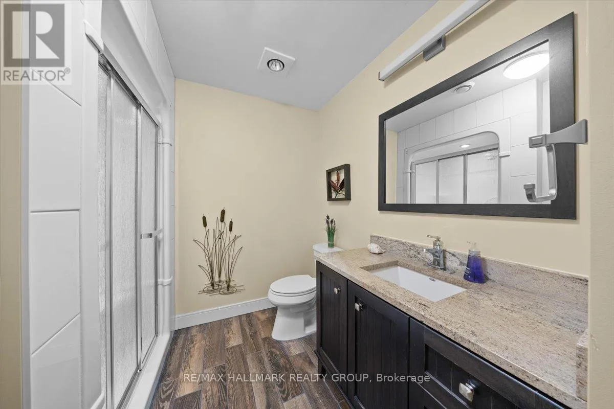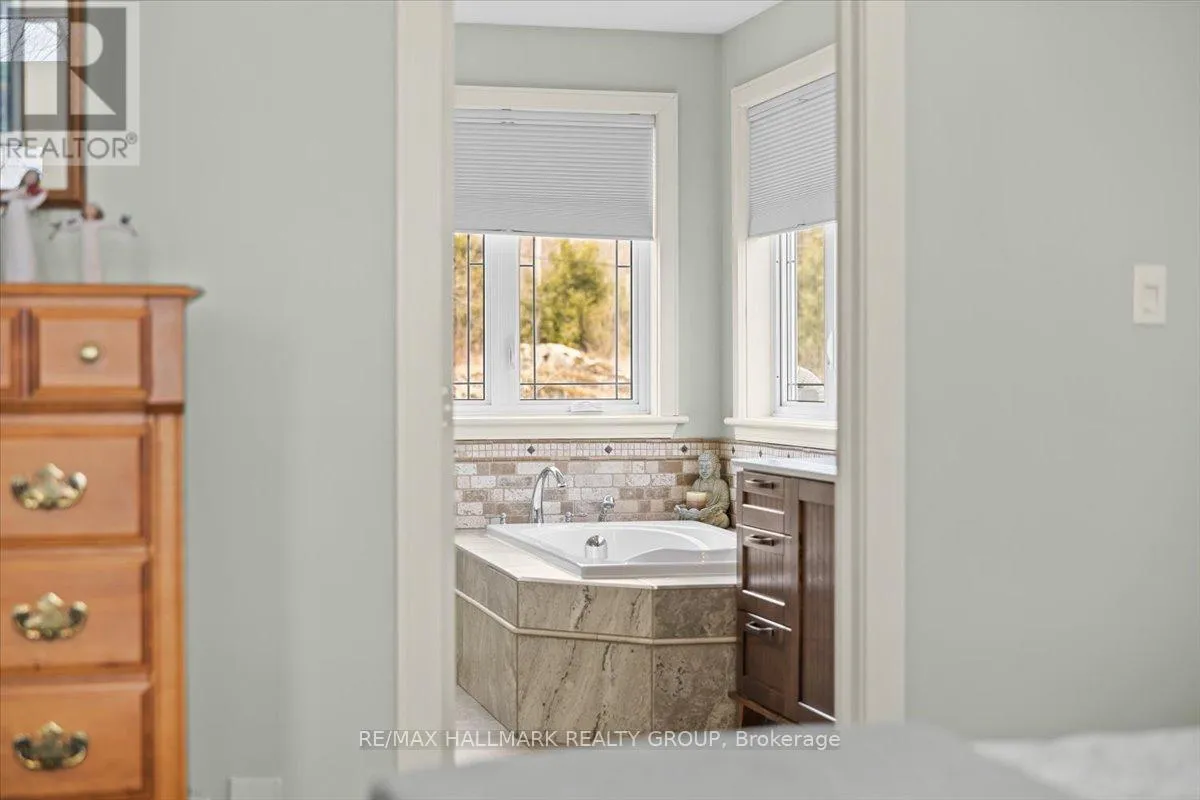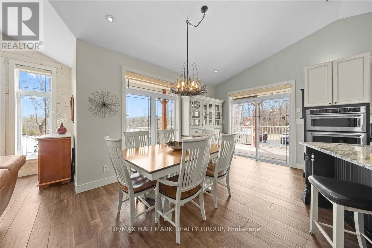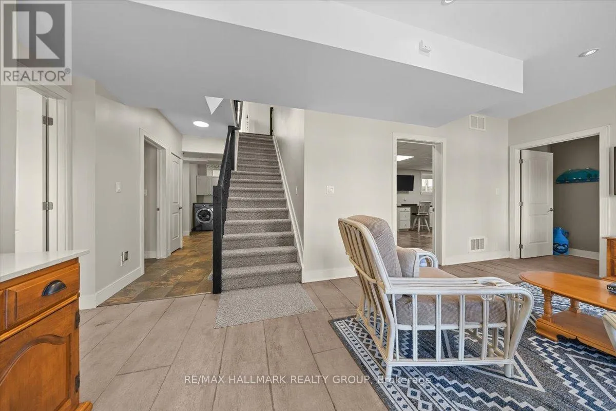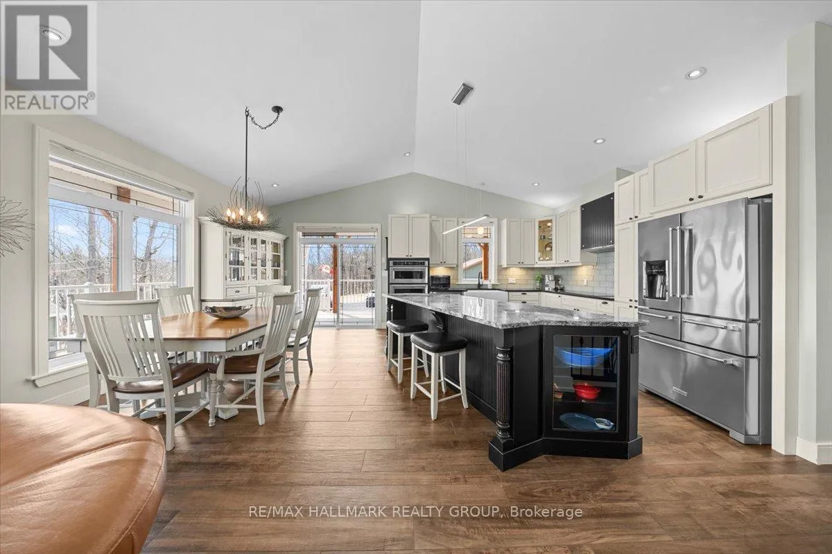 From HWY 15 near Elgin, South on County Road 42, Left onto Bedford, Continue onto Salem Rd, Continue onto S Frontenac Rd 8 which turns into Westport Road, Entrance to property on the left Welcome to a rare, custom-built waterfront bungalow with walkout, set on a private 13-acre estate with over 500 ft of shoreline on exclusive Fermoy Lake, a non-public lake known for its peaceful setting, excellent swimming, and fishing. Surrounded by mature hardwood forest and abundant wildlife, this property offers true privacy and a connection to nature that is increasingly hard to find. Thoughtfully designed with over 3,200 sq ft of living space, this 5-bedroom home blends upscale finishes with practical, low-maintenance living. The sun-filled, south-facing main level features 9'-12' ceilings, expansive windows, and an open-concept layout with a stunning great room, natural stone fireplace, and a chef-inspired kitchen complete with a 10' granite island, farmhouse sink, and premium KitchenAid appliances. Continuous porcelain plank flooring enhances durability and flow. The walkout lower level offers radiant heated floors, bright living spaces, additional bedrooms, a full bath, and flexible space for recreation, work, or guests, plus a reinforced concrete safe room/cold storage. Built with high-performance construction including ICF foundation, spray foam insulation, radiant heating (home & garage), HRV, tankless water heater, and generator-ready systems. Outdoors, enjoy a sandy beach, floating dock, swim raft, lakeside firepit, multiple patios, and professionally landscaped grounds. Includes an oversized heated garage (2020) and a fully insulated Bunkie with Wi-Fi, heat & A/C. A truly one-of-a-kind waterfront lifestyle property. (id:27476)
