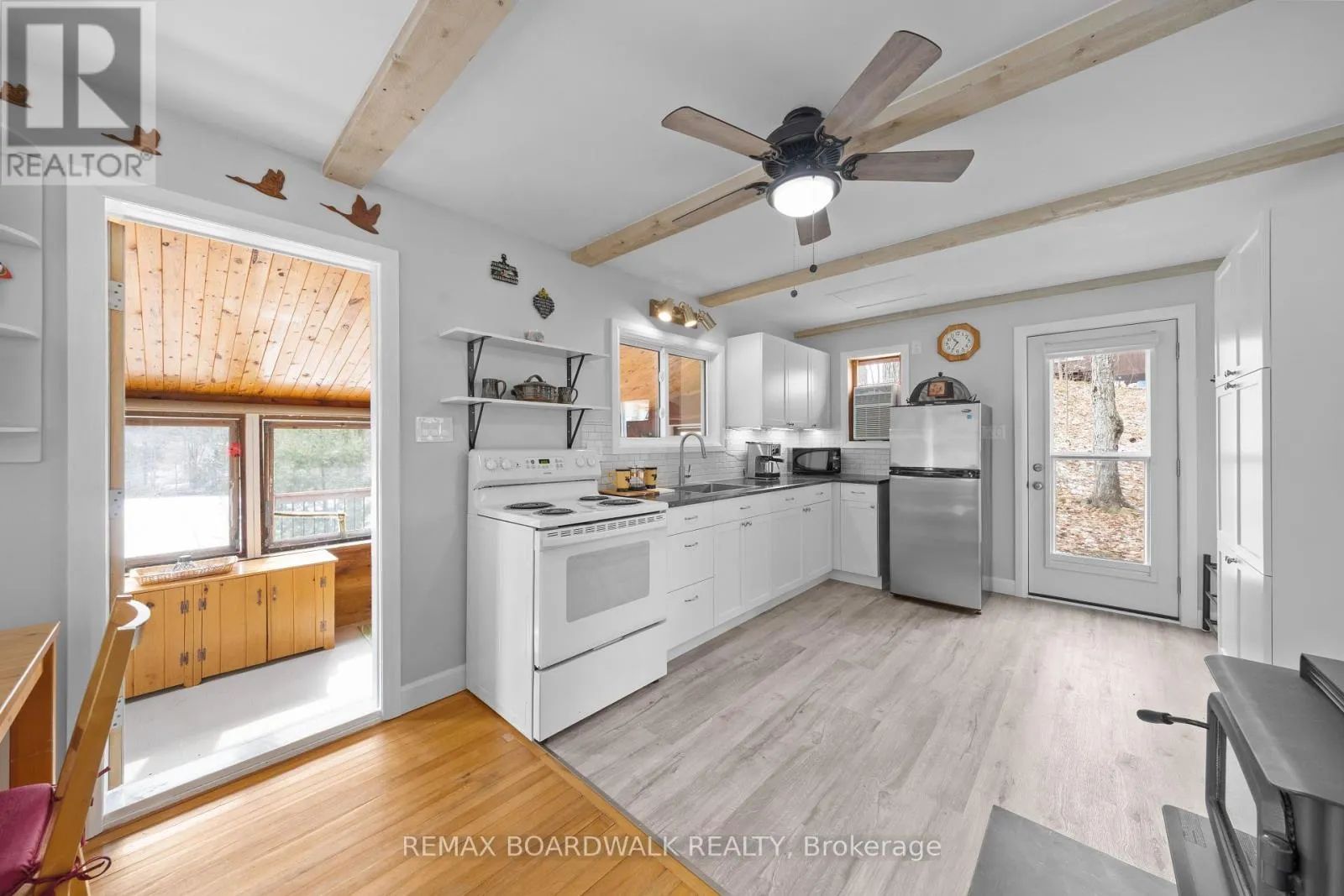 Cross Streets: Crow Lake Road to Badour Road (Proceed to Mill Bay Lane). ** Directions: From Ottawa take Hwy 7 to Maberly. LT onto County Road 36 to Crow Lake Road, RT to continue to Badour Road on left. LT to Mill Bay Lane, continue to Mill Bay Lane, LT to 116 on right. Welcome to 116 Mill Bay Lane on beautiful Bob's Lake, an exceptional opportunity to own a private waterfront retreat in one of Eastern Ontario's most sought-after destinations. Tucked away on a quiet bay with limited boat traffic, yet offering access to over 8,000 acres of boating, fishing, and outdoor recreation, this property delivers unmatched privacy, peace, and connection to nature. 20 minutes to Sharbot Lake / Westport and only 40 to Perth. Set on a generous 133 feet of clean, direct waterfront with desirable southeast exposure, this charming 2-bedroom, 1-bath bungalow-style cottage is the perfect escape for families, anglers, and nature lovers alike. Inside, you'll find a warm and inviting atmosphere highlighted by a wood-burning stove, complemented by extensive upgrades over the years. Major improvements include a renovated bathroom (2018), foundation upgrades with spray foam insulation and crawlspace improvements (2018), septic pump with high-level alarm and risers (2019), and a new dock (2018). More recent updates include new windows (2023), new deck, rails and skirting (2023), and a beautifully updated kitchen and living area (2024) featuring new cabinetry, granite countertops, flooring, insulation, and appliances.Additional enhancements include new stairs to the waterfront (2022), screen room improvements (2020), front door (2024) and a WETT-certified Regency wood stove (2024), making the property increasingly comfortable for extended seasonal use. With spray foam insulation and added heating in the crawlspace, the cottage is only a few simple modifications from being fully 4-season capable. Full upgrade list available. High speed internet available (FIBRE). The shoreline is clean and accessible, ideal for swimming, boating, and relaxing in total privacy. Whether you're looking for a peaceful getaway, a family cottage, or a smart waterfront investment, 116 Mill Bay Lane delivers outstanding value in a truly special setting. OPEN HOUSE SAT/SUN 2-4pm! (id:27476)