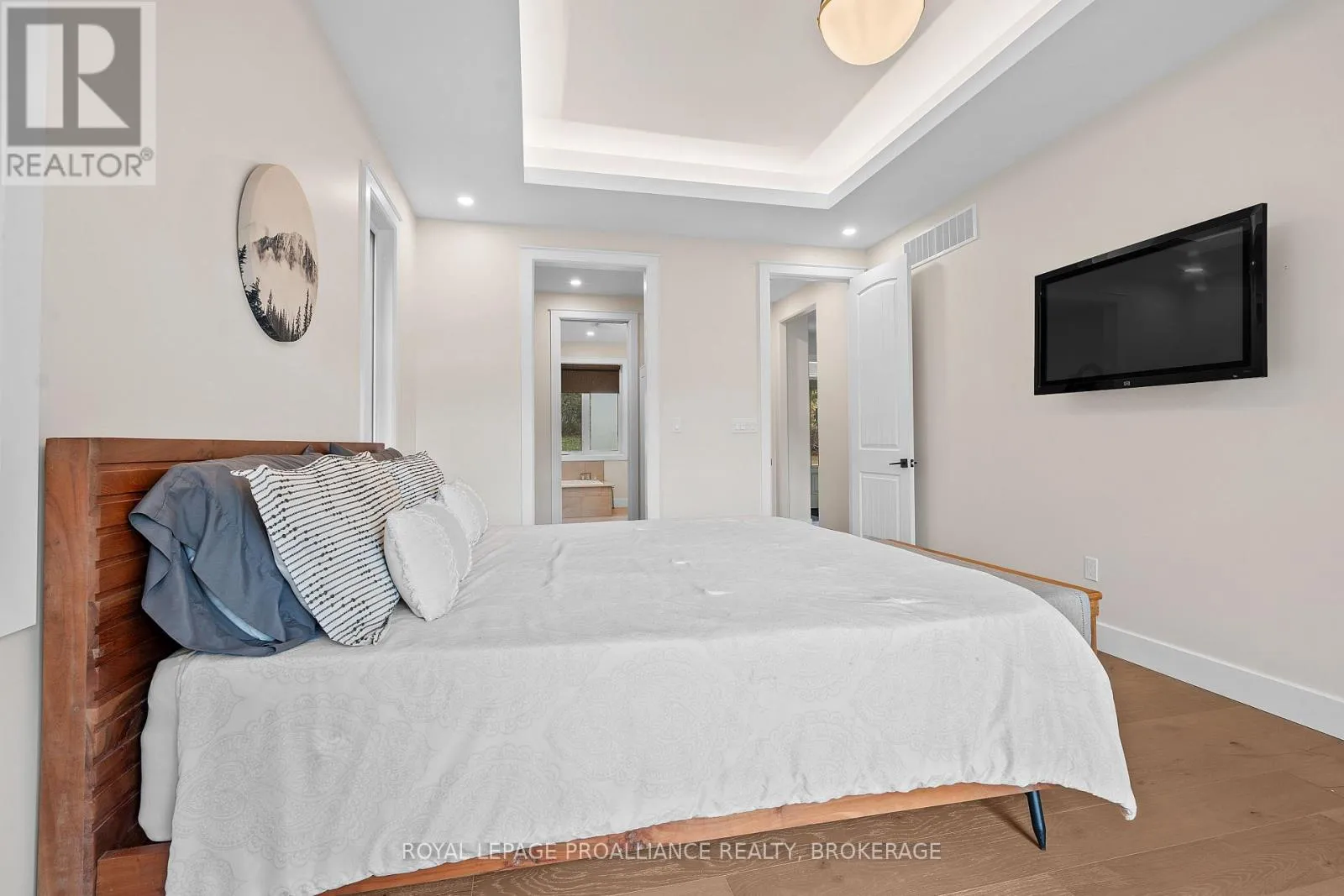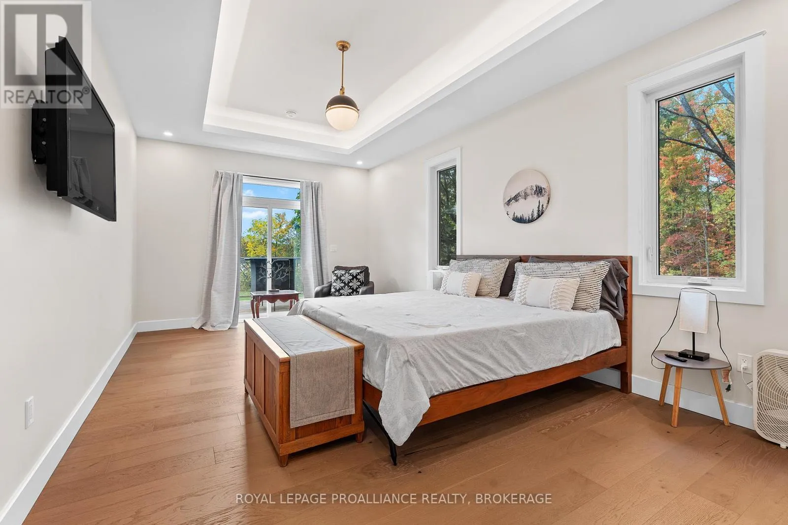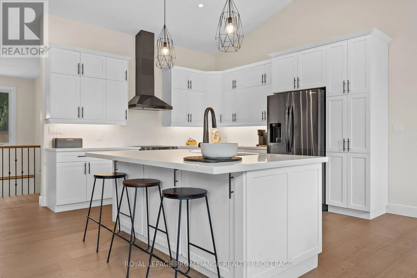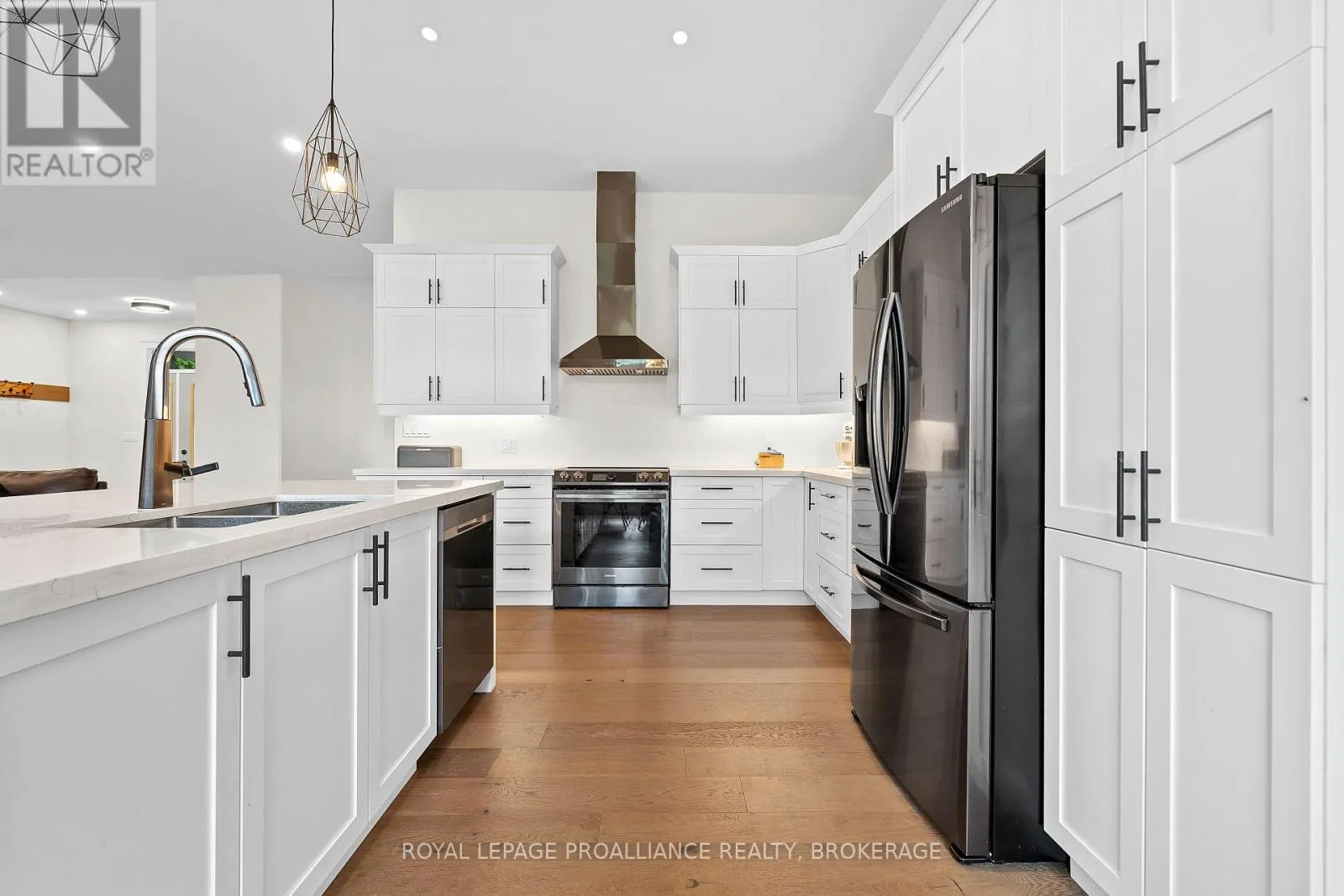 Cross Streets: Highway 15/Sunbury Rd. ** Directions: Highway 15 to Sunbury Road. Discover lakeside living at its best with this stunning custom-built bungalow, offering over 2,000 sq. ft. of main floor living space and nearly 60' of shoreline on Dog Lake. Crafted with both quality and comfort in mind, this home features an ICF foundation, soaring 10' ceilings, a vast partially finished walk-out lower level, and engineered hardwood & tile flooring throughout. The open concept impresses, with the bright kitchen featuring quartz countertops, premium cabinetry and large separate dining area open to the spacious living room - highlighted by a gas fireplace and 12-foot patio doors leading to a 650 sq. ft. deck with glass and aluminum railings providing breathtaking panoramic views of the area. The primary suite is tucked away at one end of the home offering privacy, and finished with cove ceilings and a spa inspired 5-piece ensuite with glass-enclosed shower and soaker tub. Two other bedrooms and a full bath are also here on the main level. The walk-out lower level provides extra flex space and finds in-floor heating roughed-in, and the attached SIX-car garage with epoxy flooring is incredible. This one is a beauty - with wonderful curb appeal from the stamped concrete front porch all the way around the yard space right to the waterfront with a new floating dock. Packed with upgrades and with high end finishes throughout, this one should not be missed. Survey, floor plans and supporting documents are available upon request. (id:27476)