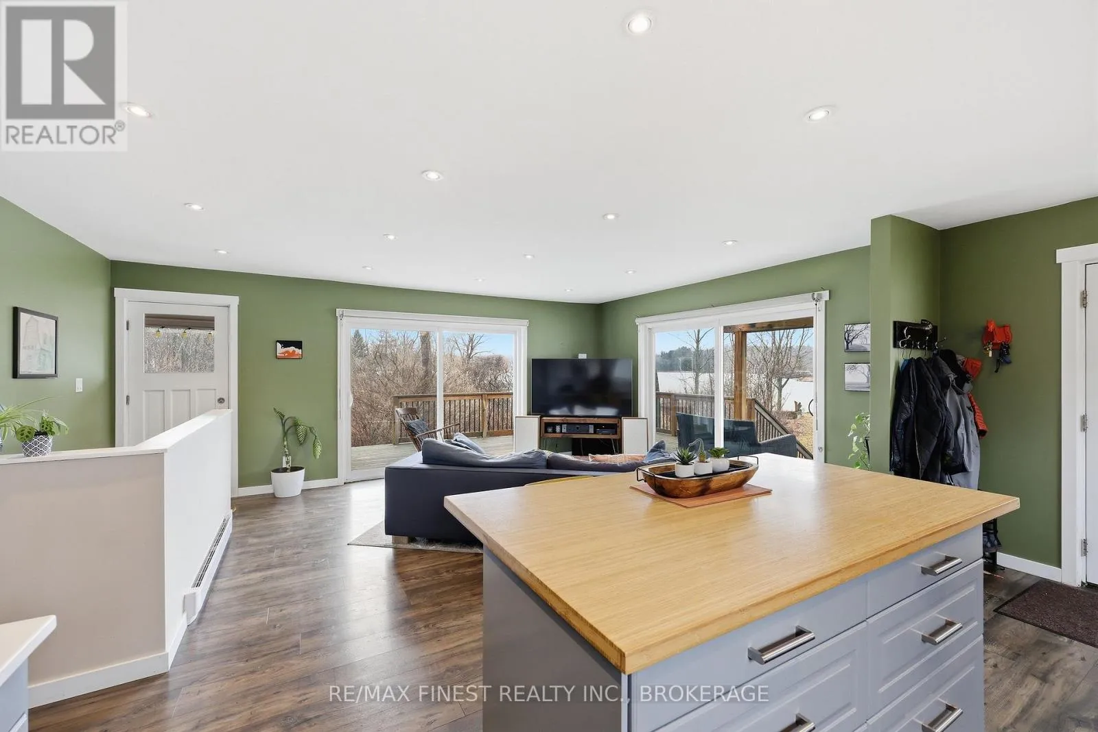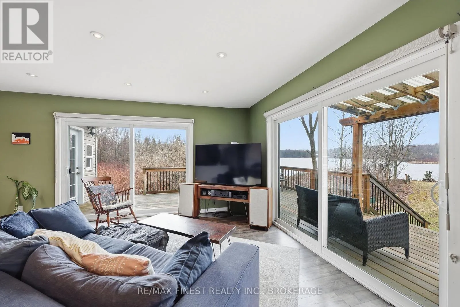 Cross Streets: Ormsbee Rd to Westview Lane. ** Directions: Battersea Rd to Milburn Rd to Ormsbee Rd to Westview Lane. This beautifully updated 2 bedroom 1 bathroom private lakeside retreat on Dog Lake offers the perfect blend of comfort, style, and serenity. Just 18 minutes from town and only moments from the local pub, this property delivers the ideal balance of peaceful waterfront living with convenient access to everyday amenities and nearby gathering spots.Inside, you'll find a bright, open-concept layout designed with X-Large patio doors to maximize both space and natural light while feeling like you're outside yet in the comfort of your home. The stunning kitchen features modern cabinetry, stainless steel appliances, a generous island with seating, and seamless flow into the inviting living area, where large windows and patio doors frame breathtaking lake views. The thoughtfully designed interior creates an effortless space for entertaining, relaxing, and enjoying the beauty of waterfront living year-round. Step outside and experience everything this exceptional property has to offer. Your walkout basement is awaiting your wonderful design. A spacious deck, covered seating area, and multiple outdoor entertaining spaces provide the perfect backdrop for summer dining, quiet mornings with coffee, or evenings overlooking the water watching the stunning sunsets and swans passing by. The shoreline, dock, and open yard add to the charm, making this a true 1.7ac private lakeside escape. Whether you're searching for a year-round residence, weekend getaway, or a peaceful retreat to unwind and recharge, this Dog Lake property is a rare opportunity to own a turn-key waterfront home in a highly desirable location. Dog lake is connected to the Rideau System you can go anywhere from your dock - short drive : 2 convenient store, 2 Hardware Stores, cafe, Massage therapist,Gas Stations, grocery store, Pharmacy and Paradisio Pizza ) ACCEPTED OFFER! (id:27476)