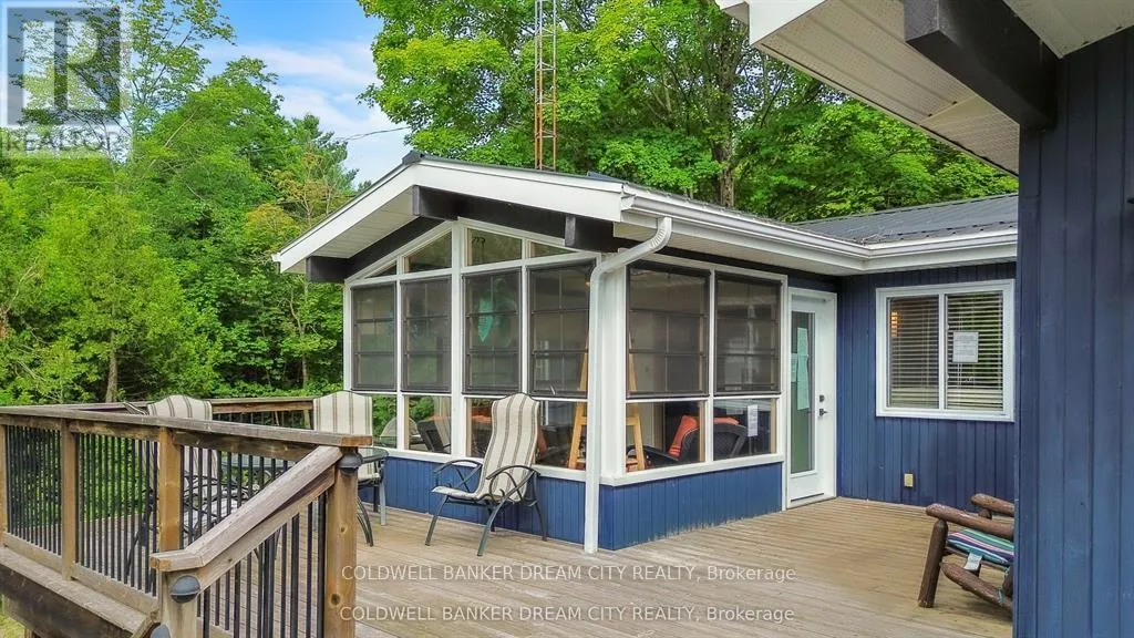 Cross Streets: Highway 7 to Arden road to Almond Lane. ** Directions: USE GPS. Welcome to Big Clear Lake a truly unique opportunity to own a beautiful waterfront retreat with exceptional versatility and charm. This one-of-a-kind property features both a year-round 3-bedroom Viceroy home (built in 1987) and a cozy 3-season cottage, all set on a private, tree-lined acre. The main home offers just over 1,200 sq. ft. of well-maintained living space with numerous upgrades, including newer windows, a heat pump with AC wall uni, an updated flooring package, and a stunning 3-season sunroom perfect for taking in lake views. There's also a separate entrance to the unfinished basement, ideal for future development or storage. A water purification system services both the house and the cottage. The cottage was thoughtfully updated in 2008 with new siding, windows, and flooring perfect for overflow guests or rental potential. Step outside and enjoy the beautifully landscaped yard, an aluminum dock, and expansive views of the pristine lakefront. Whether youre hosting family gatherings or enjoying peaceful summer evenings by the water, this property is designed for comfort, recreation, and making lasting memories. Meticulously maintained from top to bottom a rare find on Big Clear Lake!! (id:27476)