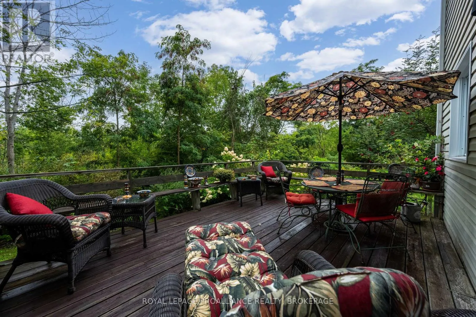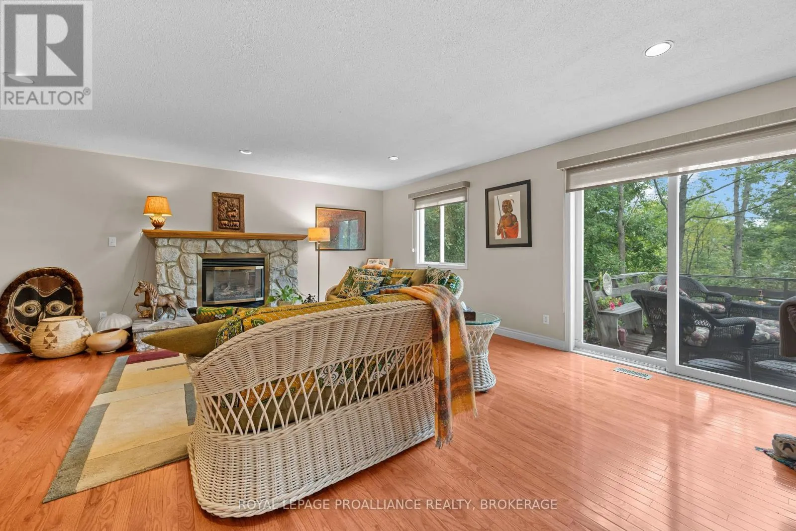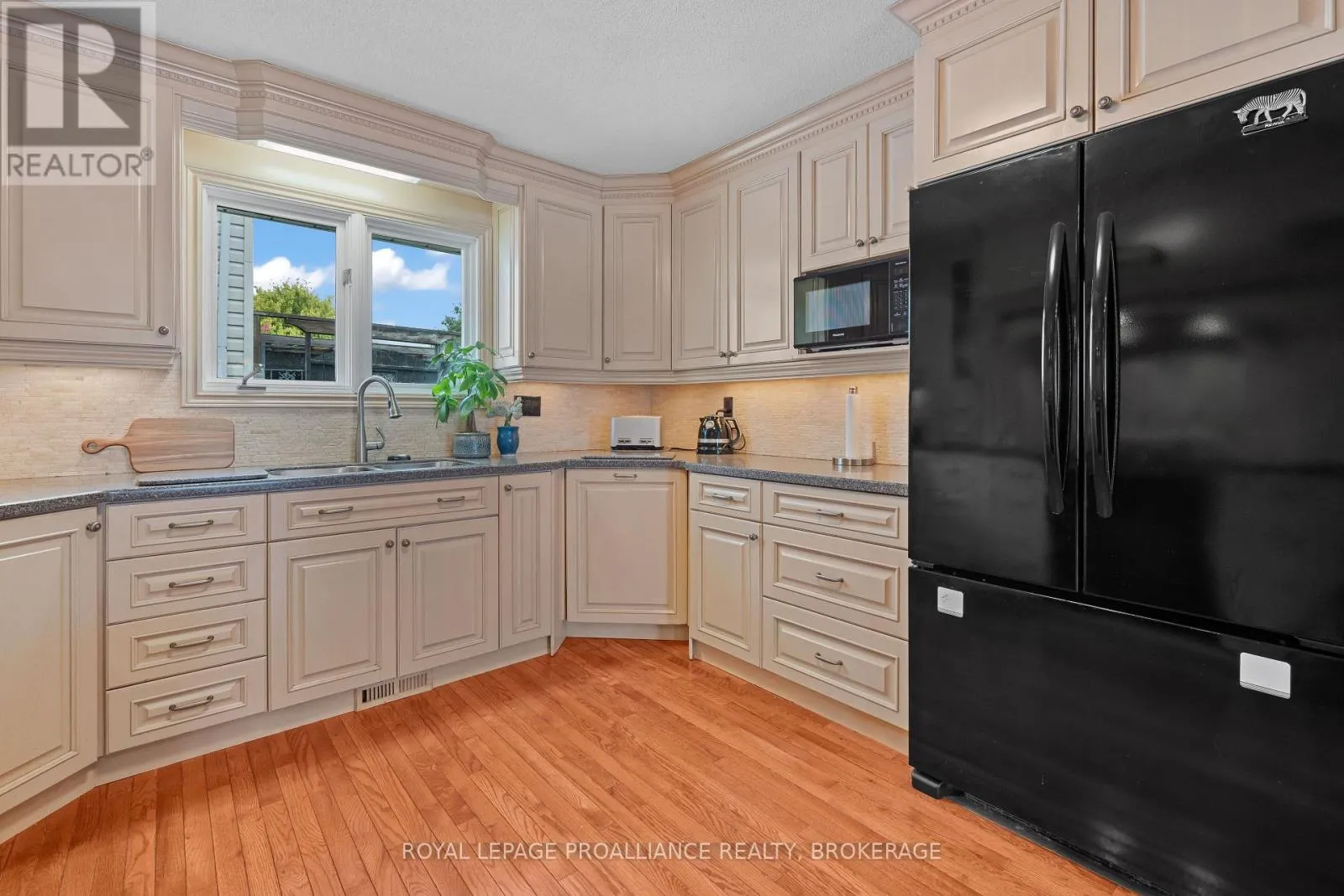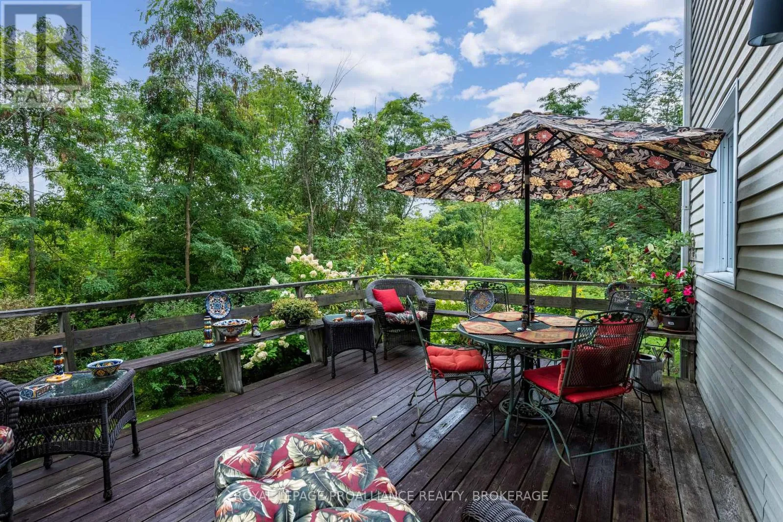 Cross Streets: Conner Dr. ** Directions: 401 to Stone St to King St E to Elizabeth Dr to Pine St E to Elmwood Dr to Macdonald Dr to Conner Dr to Arthur St. Welcome to this beautifully maintained 3-bedroom backsplit bungalow, set in a quiet and peaceful neighbourhood surrounded by nature. Tucked away in a private setting with walking trails nearby, this home offers a lifestyle of both comfort and tranquility. Inside, you'll be pleasantly surprised the home is far more spacious than it first appears. The bright main floor features a living room filled with natural light, an inviting dining area perfect for gatherings, and a custom kitchen with abundant cabinetry, beautiful hardwood floors, and under-valance lighting. Upstairs, the primary bedroom with half bath is accompanied by two additional generously sized bedrooms and a full 4-piece bathroom.The lower levels provide incredible flexibility, including a separate very large living space with an additional half bath, a laundry room, walk down another flight of steps to a massive unfinished area with high ceilings, a workshop space, utility area, and rough-in for another bathroom ideal for customizing to your needs, perfect for a gym, studio, workshop or play area the options are endless with this bonus unfinished space.Step outside to your private backyard retreat, complete with a large deck overlooking a wooded area. Peaceful, private, and full of potential, this home is a hidden gem you wont want to miss. (id:27476)