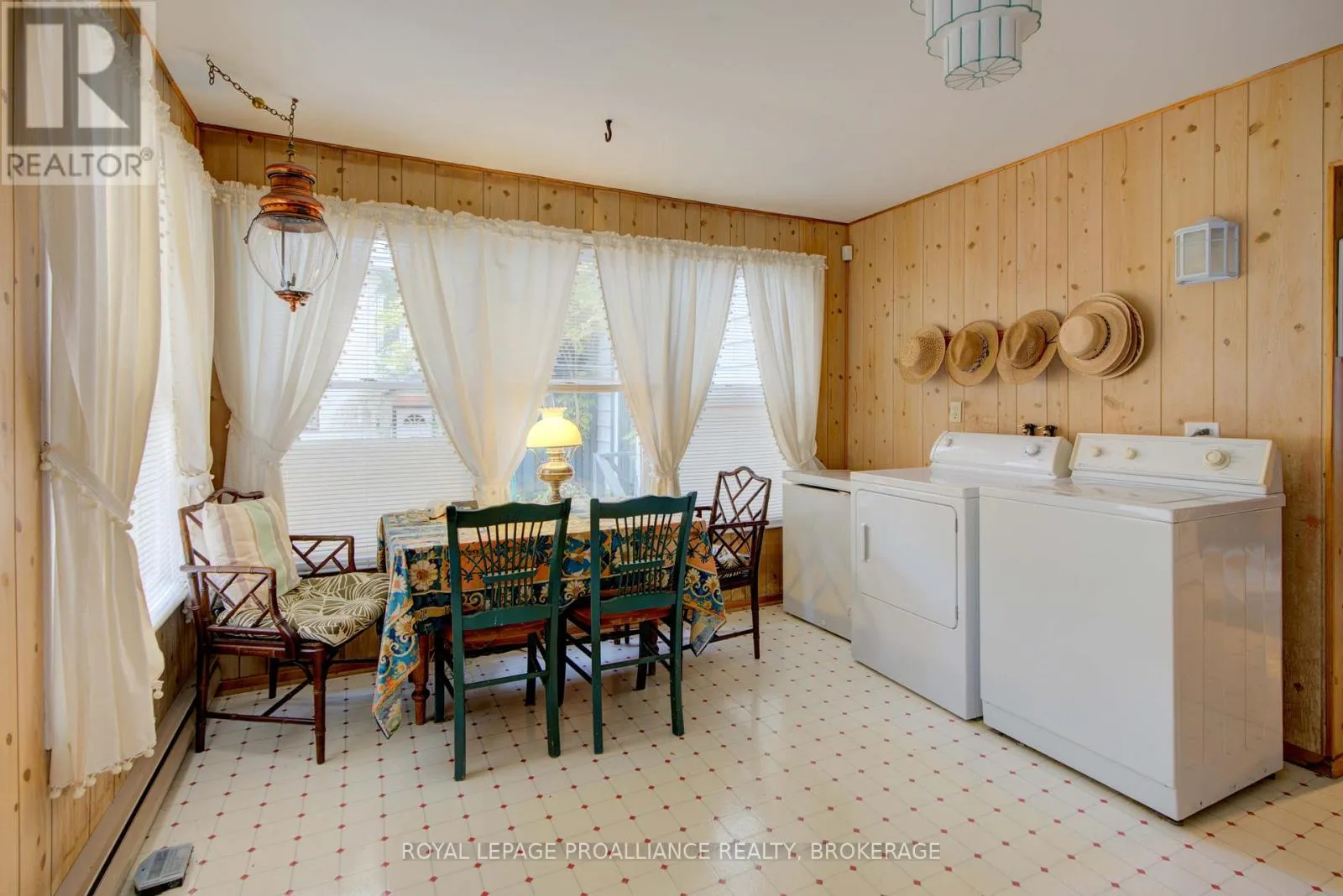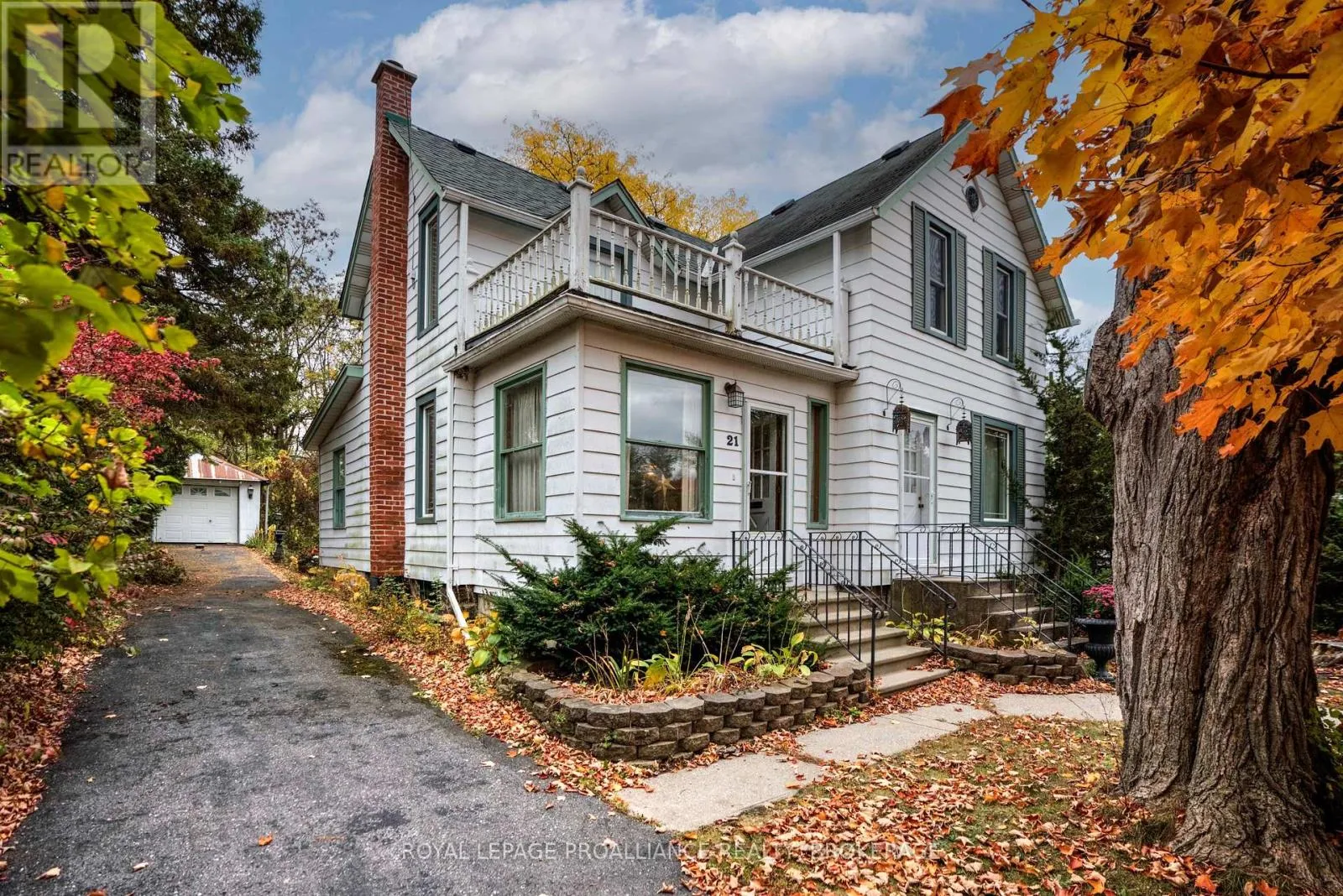 Cross Streets: King St. ** Directions: Take 401 east towards Cornwall. Take exit 645, turn right onto Stone St. Turn right onto King St E, then left onto Osborne St. Welcome to 21 Osborne Street - a charming, well-cared-for 2-storey home tucked away on a quiet street in Gananoque. This 3-bedroom, 1-bath home offers character, comfort, and a great layout for family living. Enjoy a 3-season front porch, a spacious bonus/laundry room, and a large paved driveway with a detached garage. This generous backyard has no rear neighbours- ideal for gardens, kids, or summer entertaining. Perfect for first-time buyers or anyone looking to enjoy small-town living, just minutes from schools, parks, The St. Lawrence River, The Thousand Islands Playhouse, golf, and more. Discover the charm of Gananoque living in this lovely home! New insulation and updated wiring 2026. (id:27476)