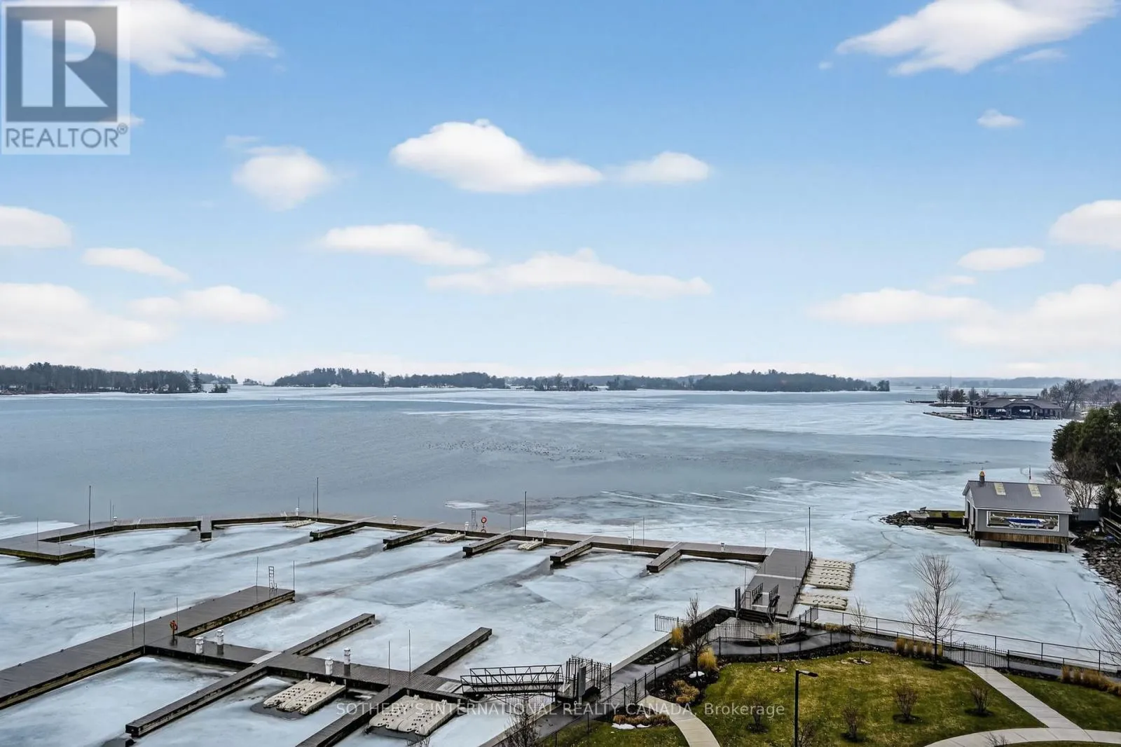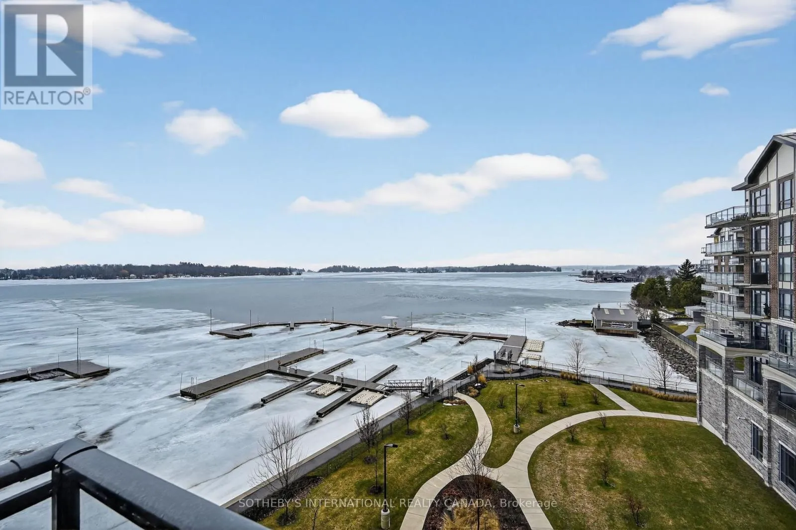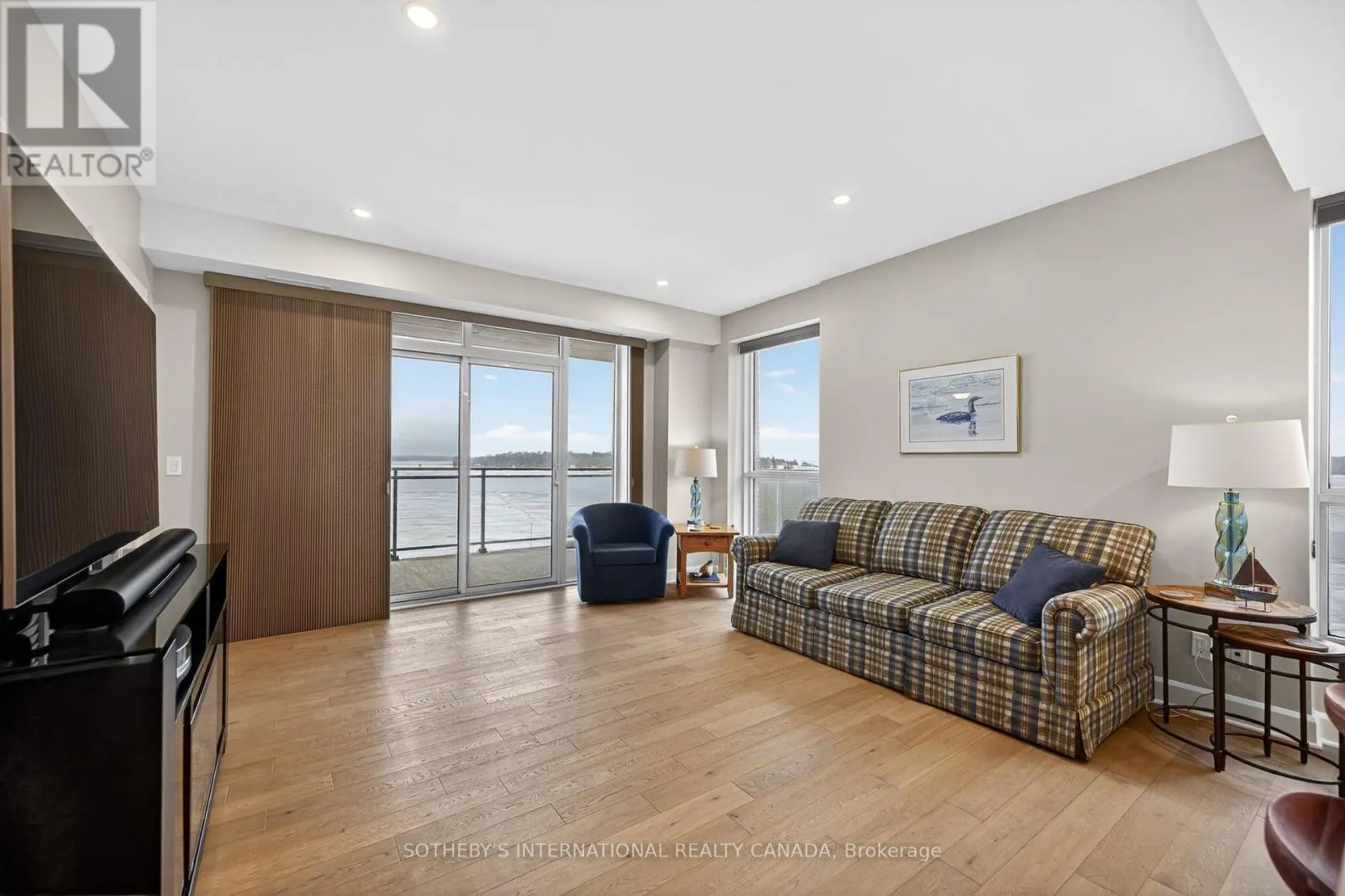 Cross Streets: South and Stone. ** Directions: From the 401EB - Stone St to to end turn Left - From the 401WB - King St to Charles St - Left to South St. Take note of this luxury Thousand Islands Waterfront 2 bedroom 2 bathroom Condominium available with flexible possession. Imagine spending the summer by the river with marina access and within walking distance of everything you need to enjoy the beauty and charm of this unique area. Your condo features hardwood and ceramic floors, a chef's dream kitchen with an extended island and added cupboard space, in-suite laundry, an ensuite bathroom with heated floors and most importantly, a panoramic view of the St. Lawrence River with a wraparound balcony to fully enjoy it. Click through the photos or take the tour to see how the outdoors pours into all the bright, airy spaces. Temporary rain keeping you indoors? Slip downstairs to the common room for a game of pool or some social interaction, hit the high-end gym/workout space or simply watch the clouds roll by from your floor to ceiling windows. Walk to the Thousand Islands Playhouse, restaurants and all the cultural panache Gananoque has to offer. Your storage locker is just down the hall for easy access. The perfect setup for years of enjoyment is waiting for you. Book a showing today. (id:27476)