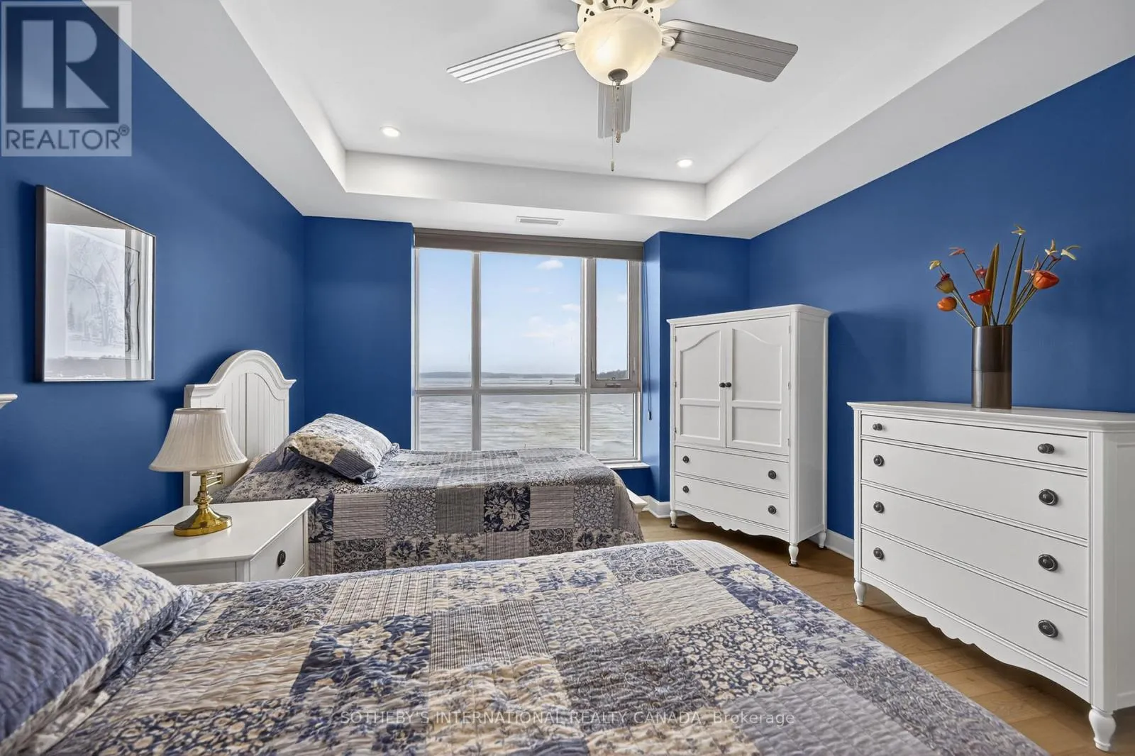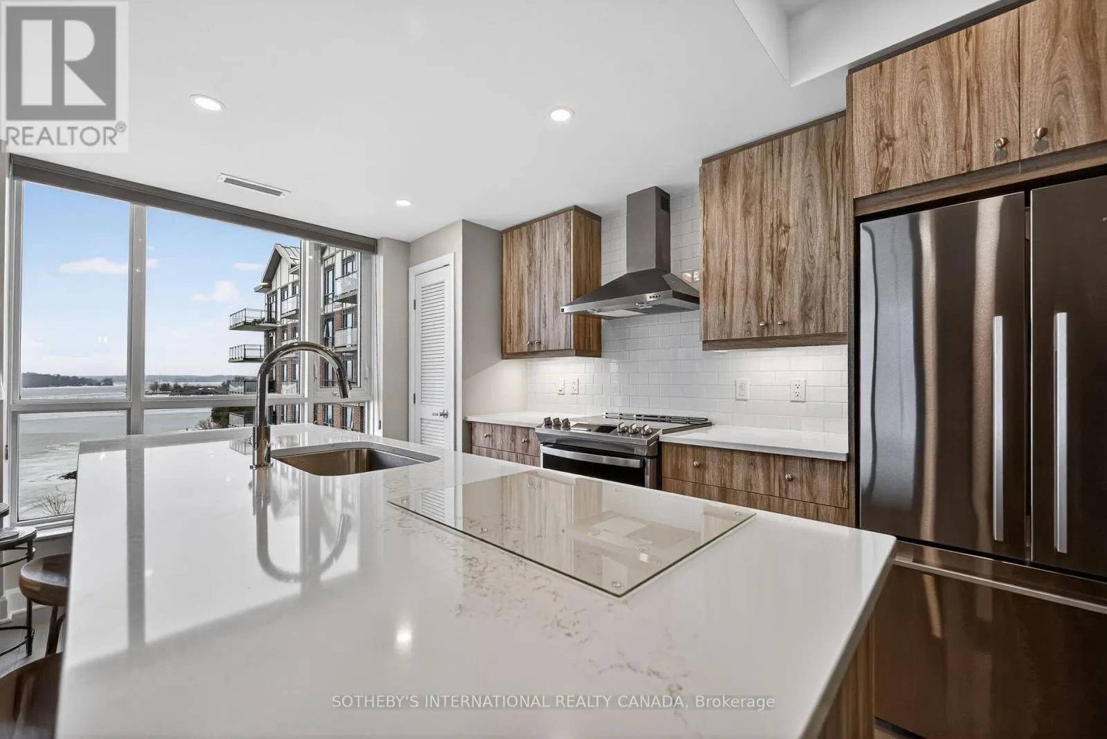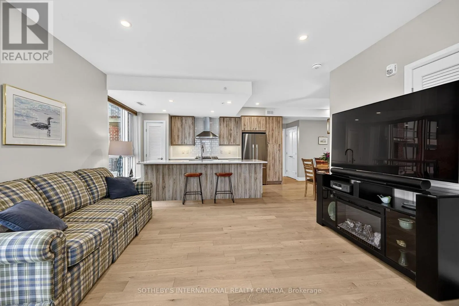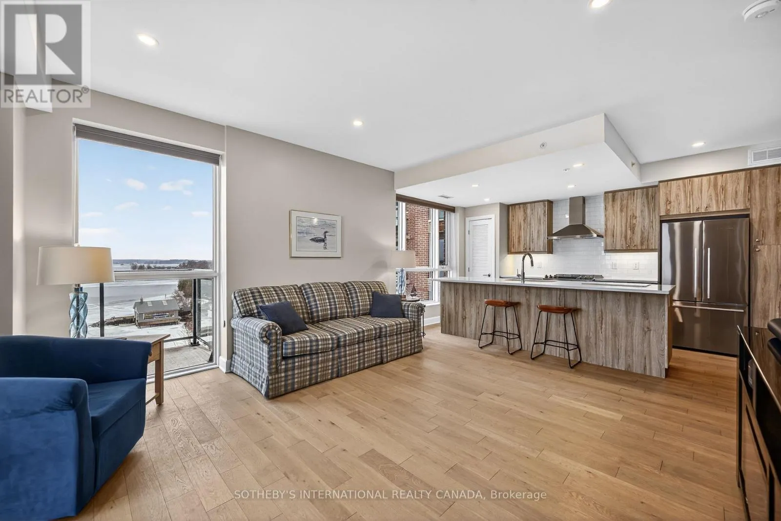 Cross Streets: South and Stone. ** Directions: From the 401EB - Stone St to to end turn Left - From the 401WB - King St to Charles St - Left to South St. Take note of this luxury Thousand Islands Waterfront 2 bedroom 2 bathroom Condominium available with flexible possession. Imagine spending the summer by the river with marina access and within walking distance of everything you need to enjoy the beauty and charm of this unique area. Your condo features hardwood and ceramic floors, a chef's dream kitchen with an extended island and added cupboard space, in-suite laundry, an ensuite bathroom with heated floors and most importantly, a panoramic view of the St. Lawrence River with a wraparound balcony to fully enjoy it. Click through the photos or take the tour to see how the outdoors pours into all the bright, airy spaces. Temporary rain keeping you indoors? Slip downstairs to the common room for a game of pool or some social interaction, hit the high-end gym/workout space or simply watch the clouds roll by from your floor to ceiling windows. Walk to the Thousand Islands Playhouse, restaurants and all the cultural panache Gananoque has to offer. Your storage locker is just down the hall for easy access. The perfect setup for years of enjoyment is waiting for you. Book a showing today. (id:27476)