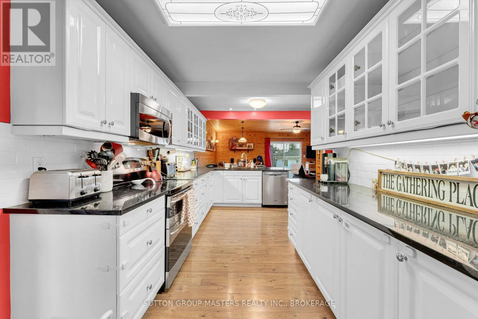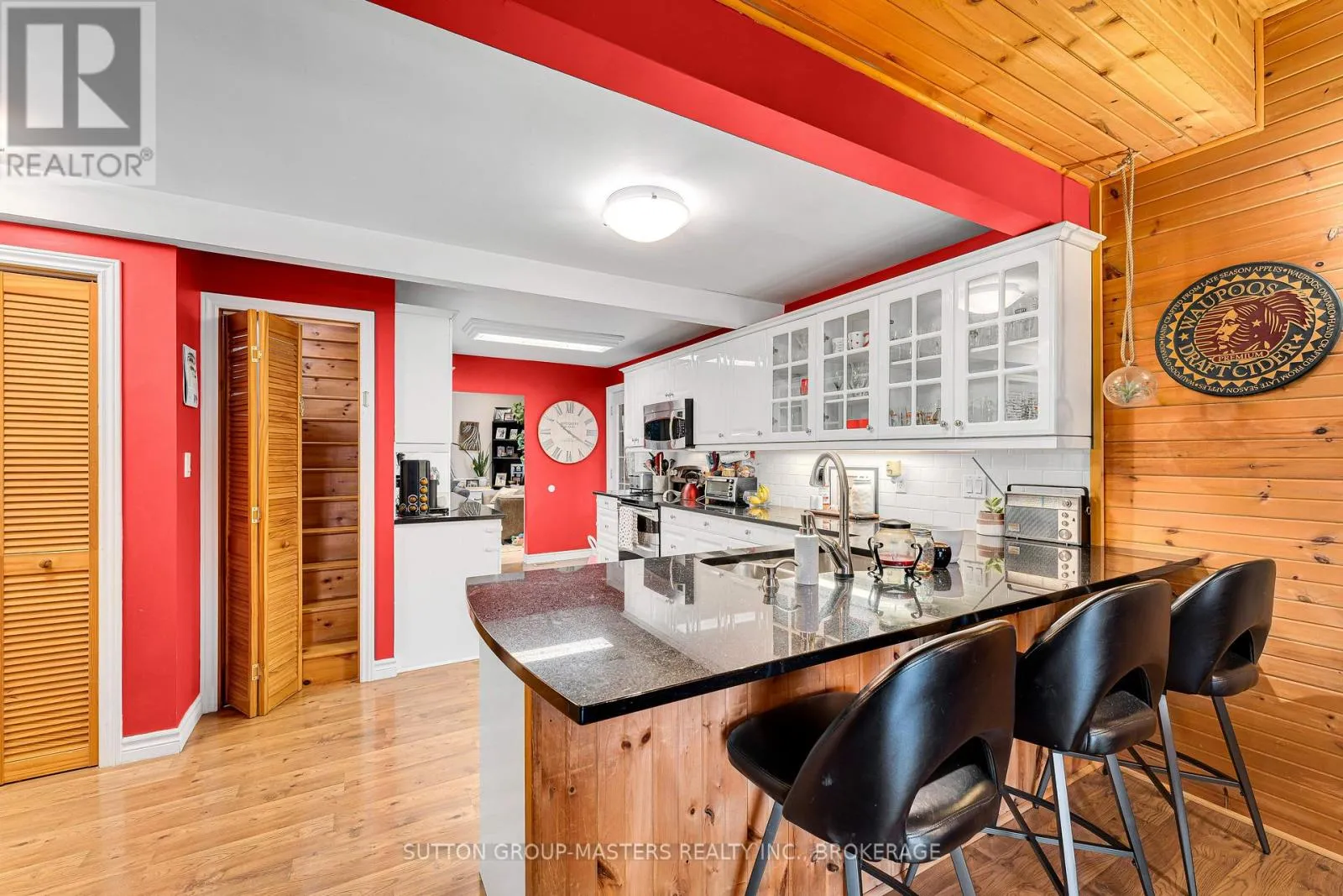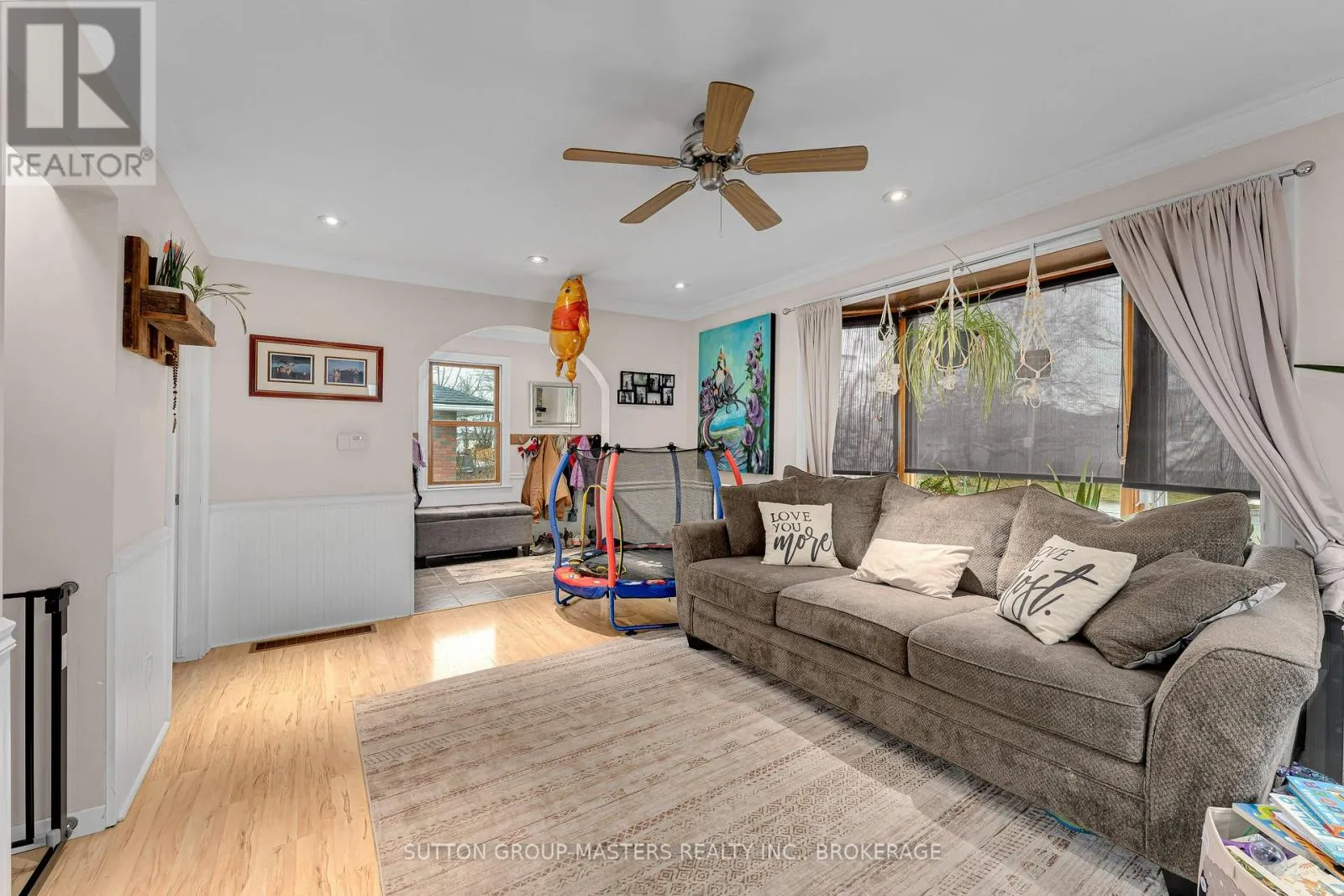 Cross Streets: Elizabeth Drive. ** Directions: King Street East to Elizabeth Drive. West on Pine Street to #440. Welcome to 440 Pine Street East! A cute 1.5 storey home centrally located, and walking distance to shops, restaurants, grocery, schools, parks and more. Entering into the home, you are welcomed into a sitting room/family room with bay window offering plenty of natural light. As you make your way to the back of the home, you enter into an updated kitchen with quartz counter tops, tons of cabinet and counter space, and enter into an open concept living and dining area, perfect for entertaining. Whether you are hosting family dinners, games nights, celebrating milestones, or watching the game, the back half of this home is the ideal hang-out spot. The main floor is rounded off with a 4 pc bathroom, side entrance sun-room, and a bedroom/den. The entire loft area could function as another bedroom, or be used for an office. The lower level offers a family room, full 3 pc bathroom, and 3 more bedrooms. Cozy up to the wood-stove on a cold winter night, or on those hot summer days, relax in the private back yard, equipped with a fire pit and gazebo. There is also an added detached garage/workshop with power, and currently set up as a back yard bar. This home has to be seen to be fully appreciated. Call today to arrange your own private viewing today! (id:27476)